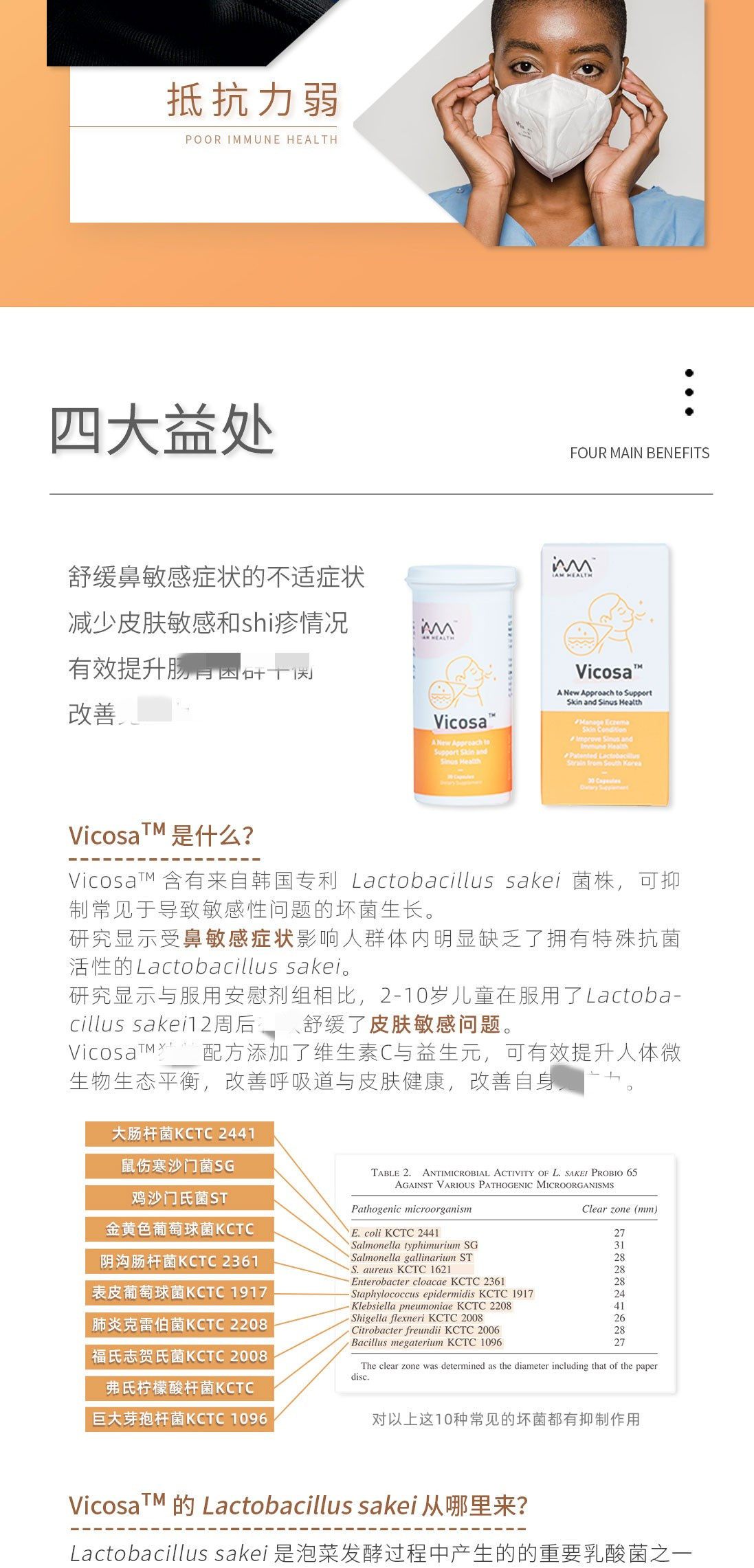 新加坡Vicosa维可飒抗敏益生菌(改善鼻敏感花粉症鼻干痒湿针)
