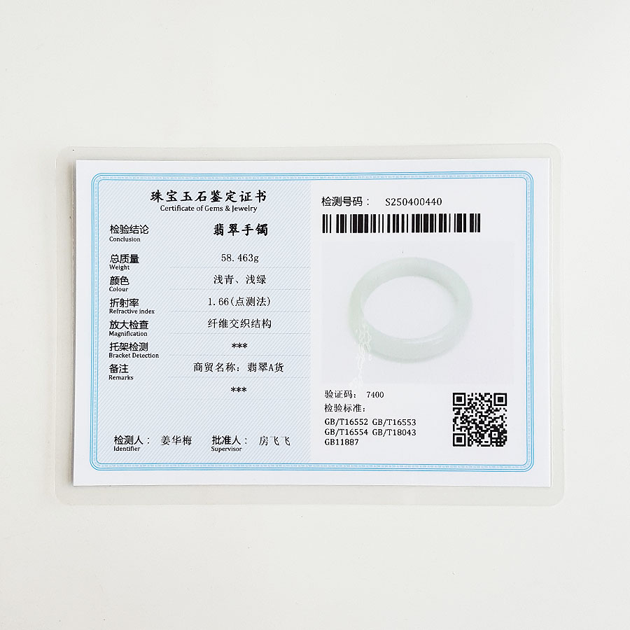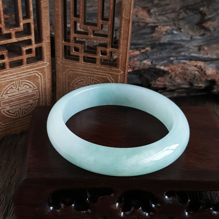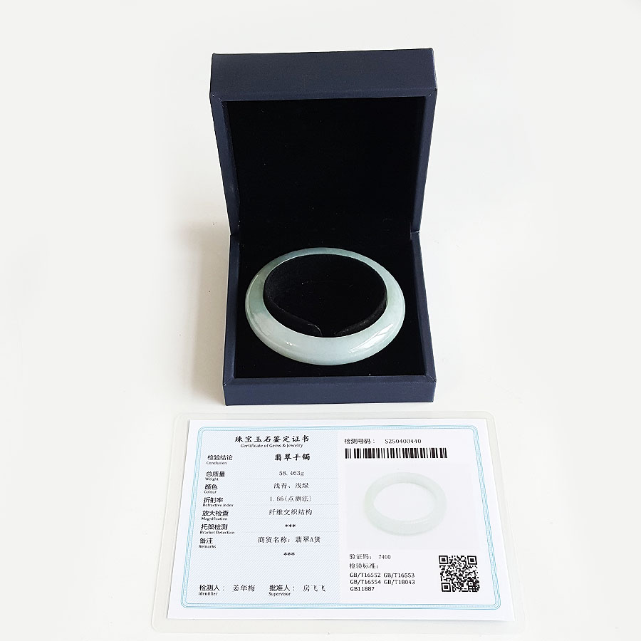 名称 | 天然无纹裂正桩细腻糯种绿底55.5号翡翠手镯 |