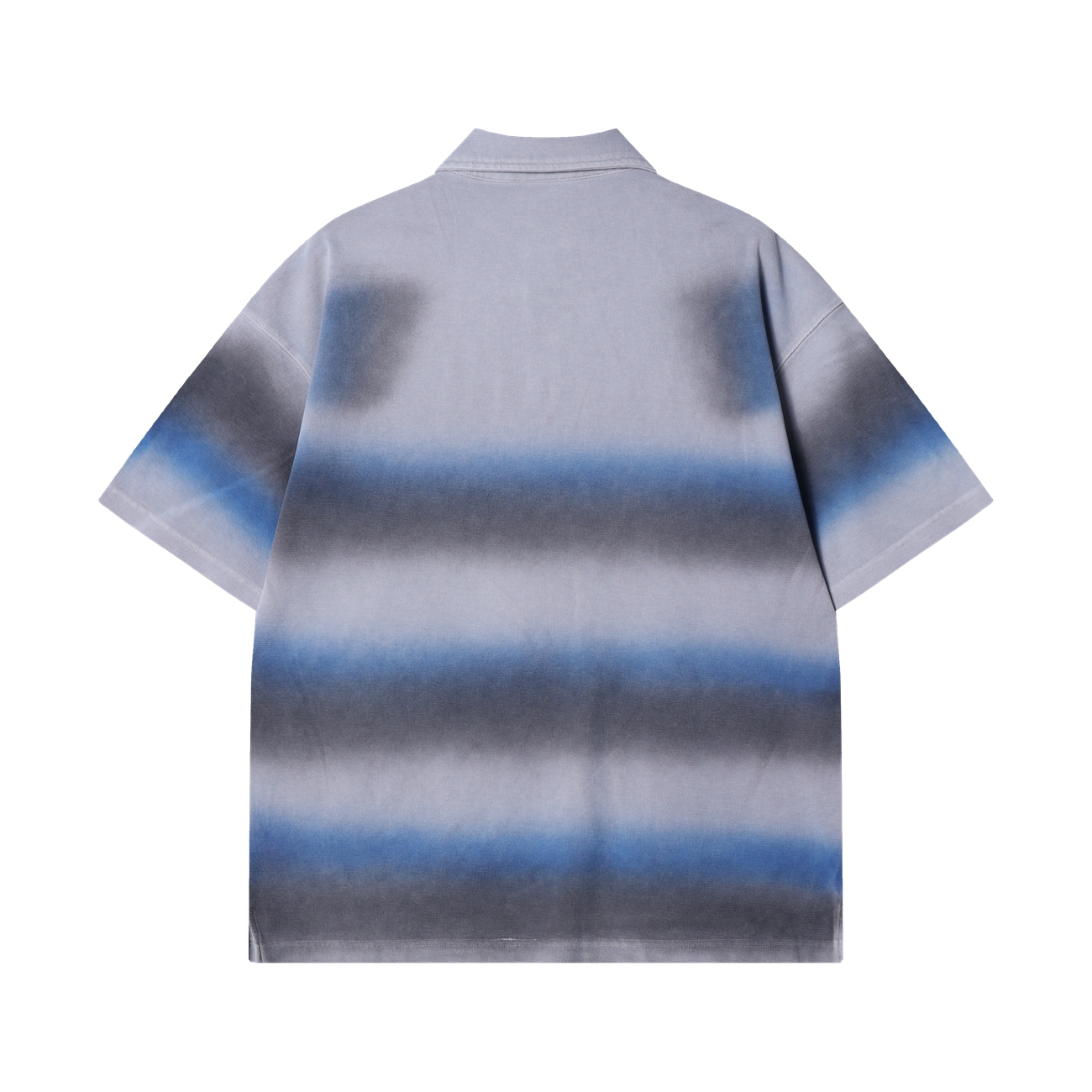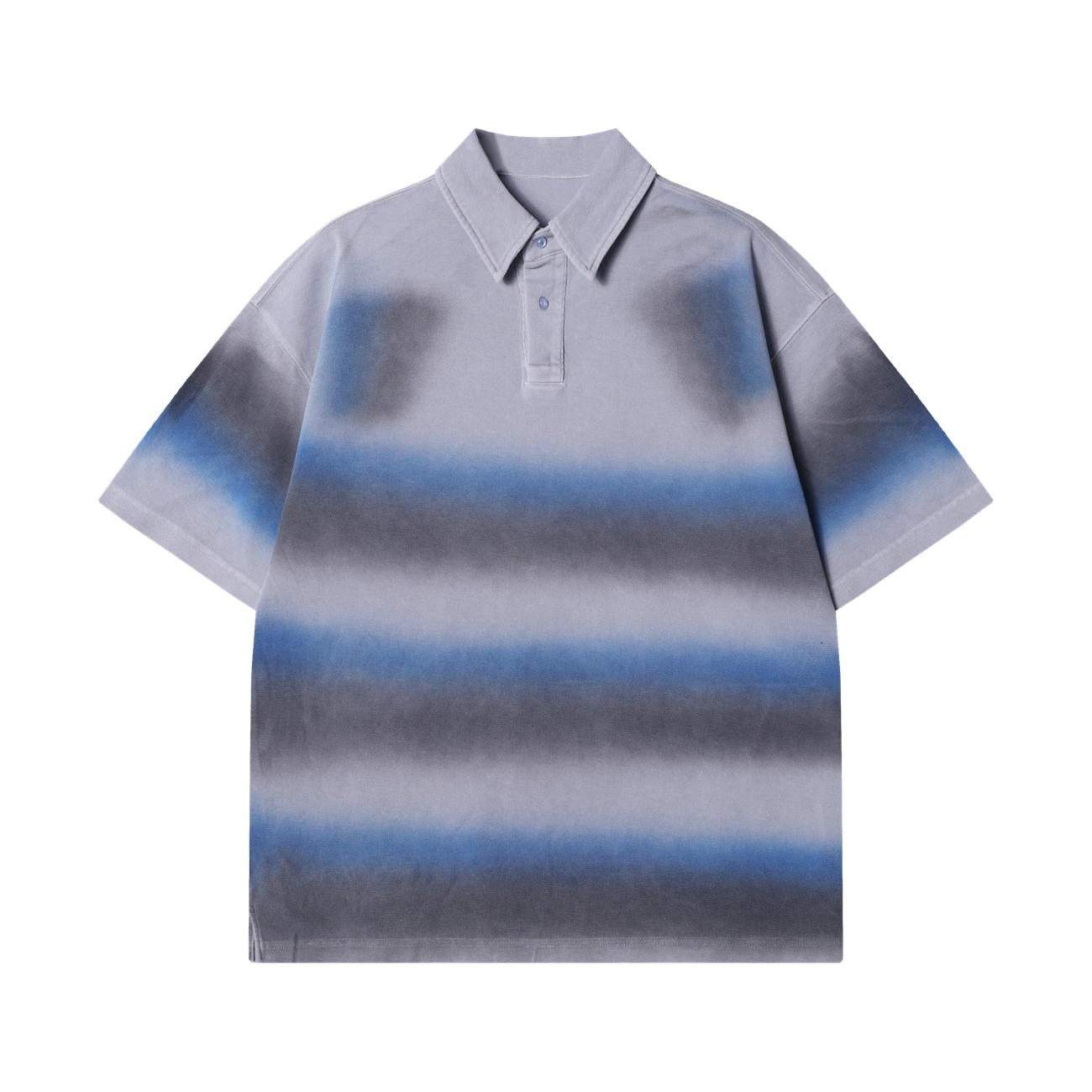 88078夏季高级感新款韩版条纹撞色polo领纽扣百搭男士商务通勤上衣