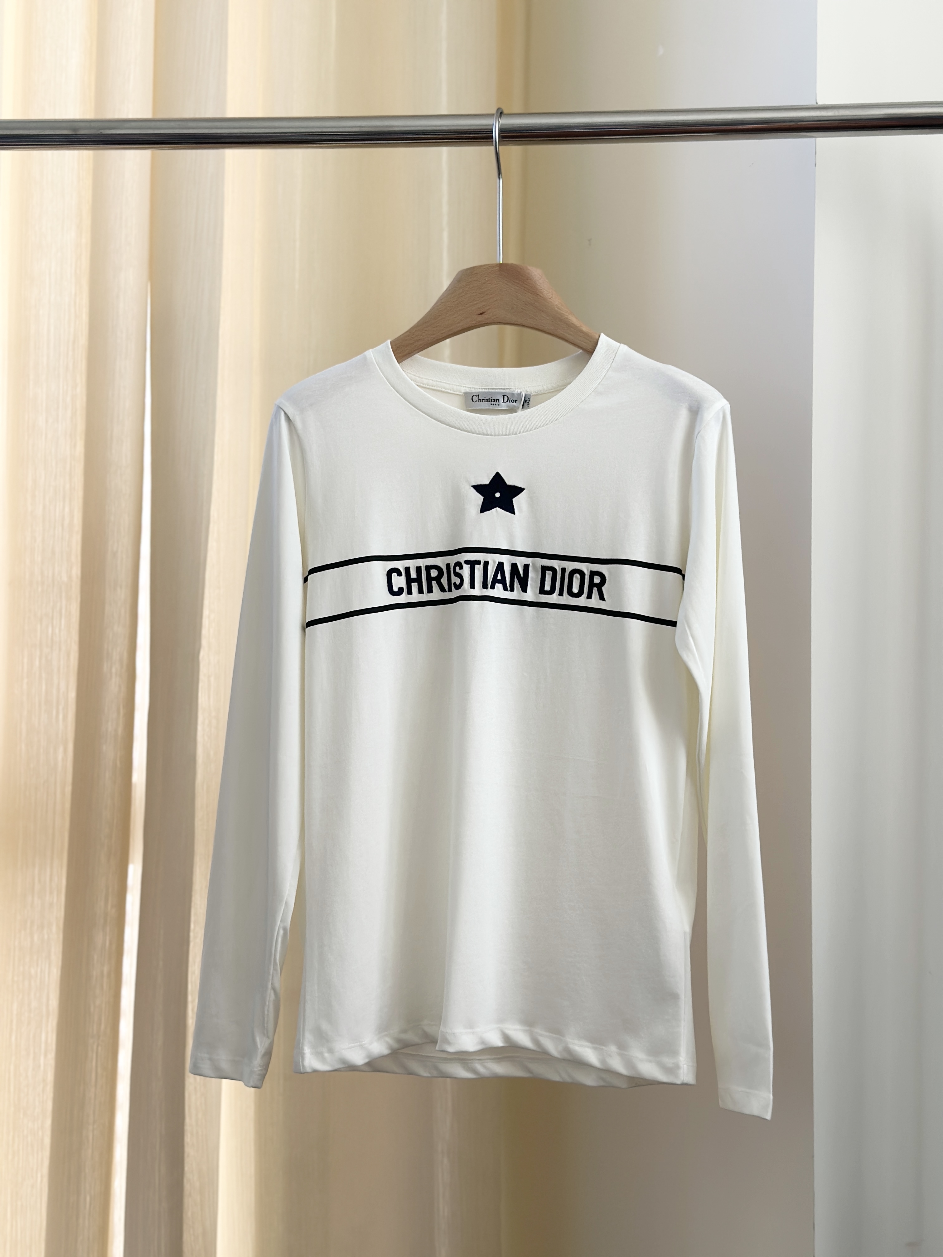 TY16-DIOR迪奥 SS23 Logo字母条形图案印花圆领套头长袖 女款 白色(QQ)