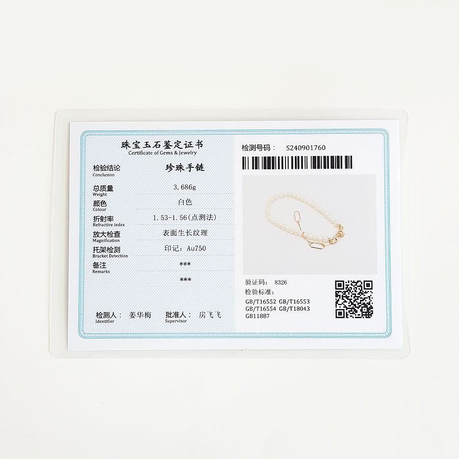 名称 | 潮宏基AU750黄金镶天然约4.0MM珍珠时尚设计款手链 |