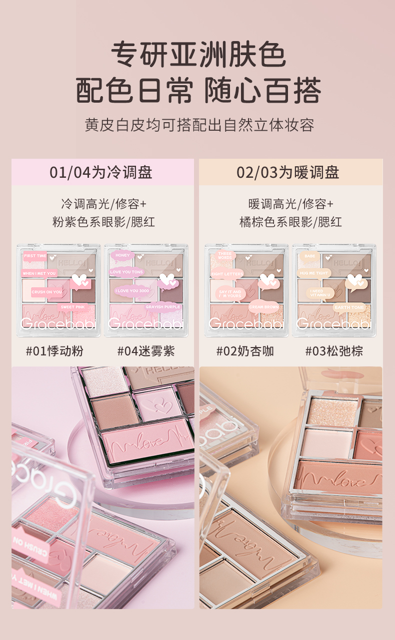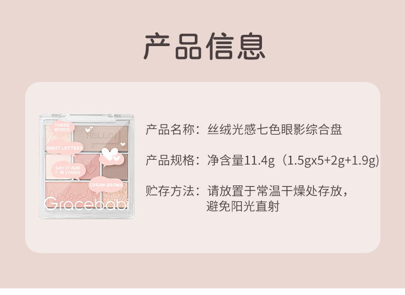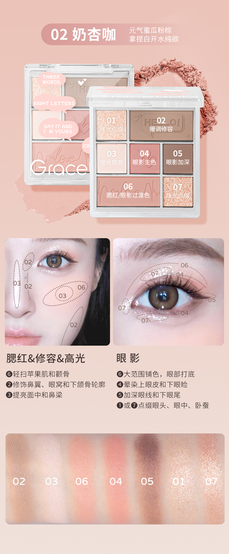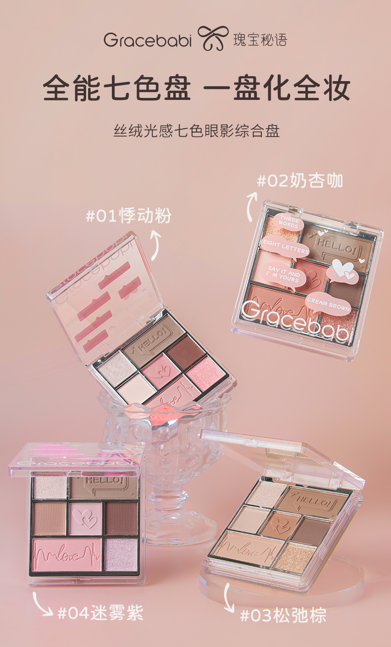 gracebabi丝绒光感七色高光修容眼影综合一体盘爆闪珠光