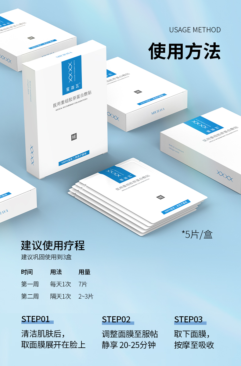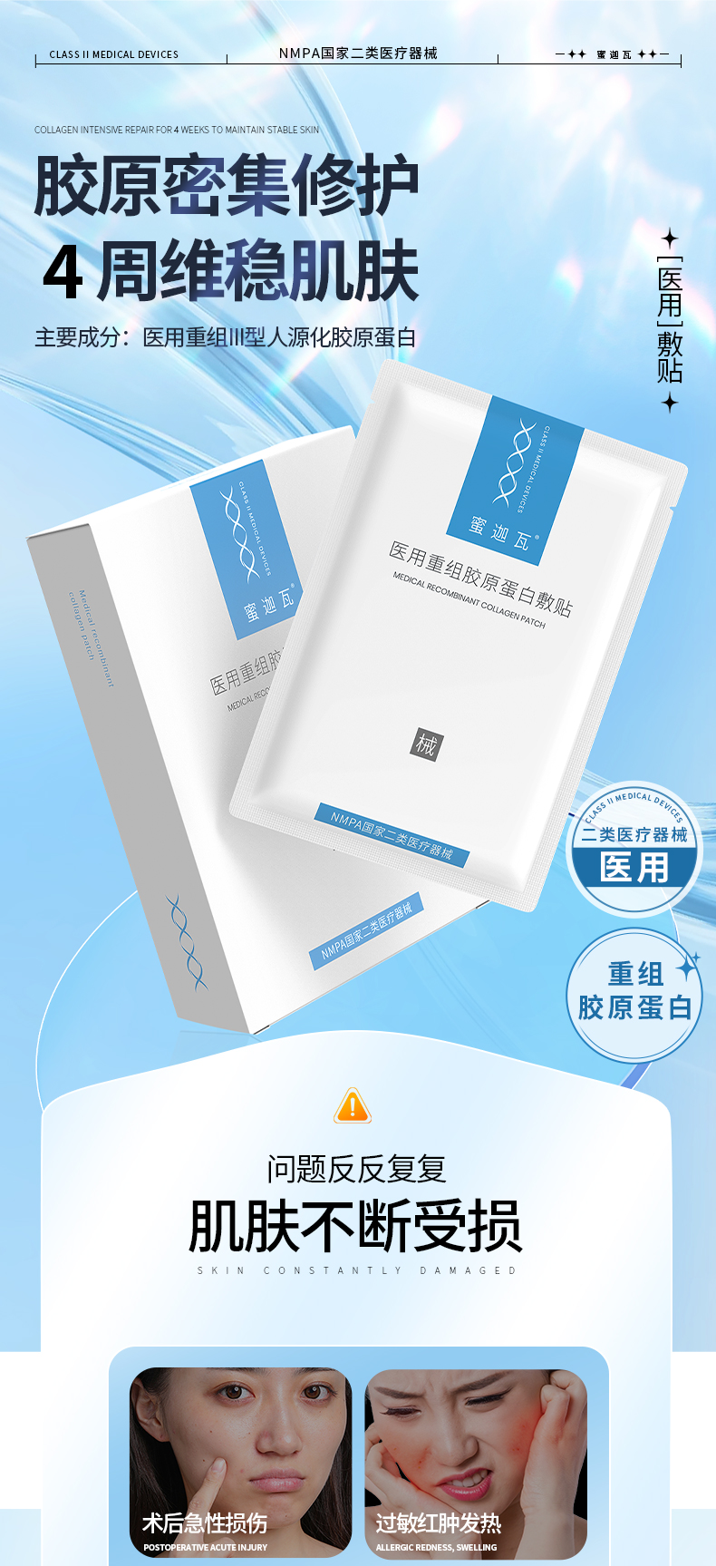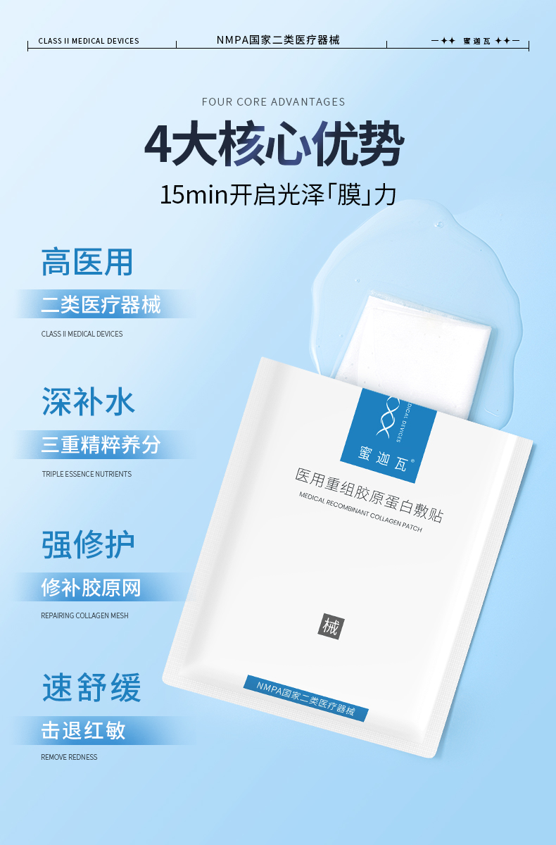 蜜迦瓦重组III型胶原蛋白敷贴 非面膜 日常/术后修护 舒缓褪红 补水保湿 创面修护