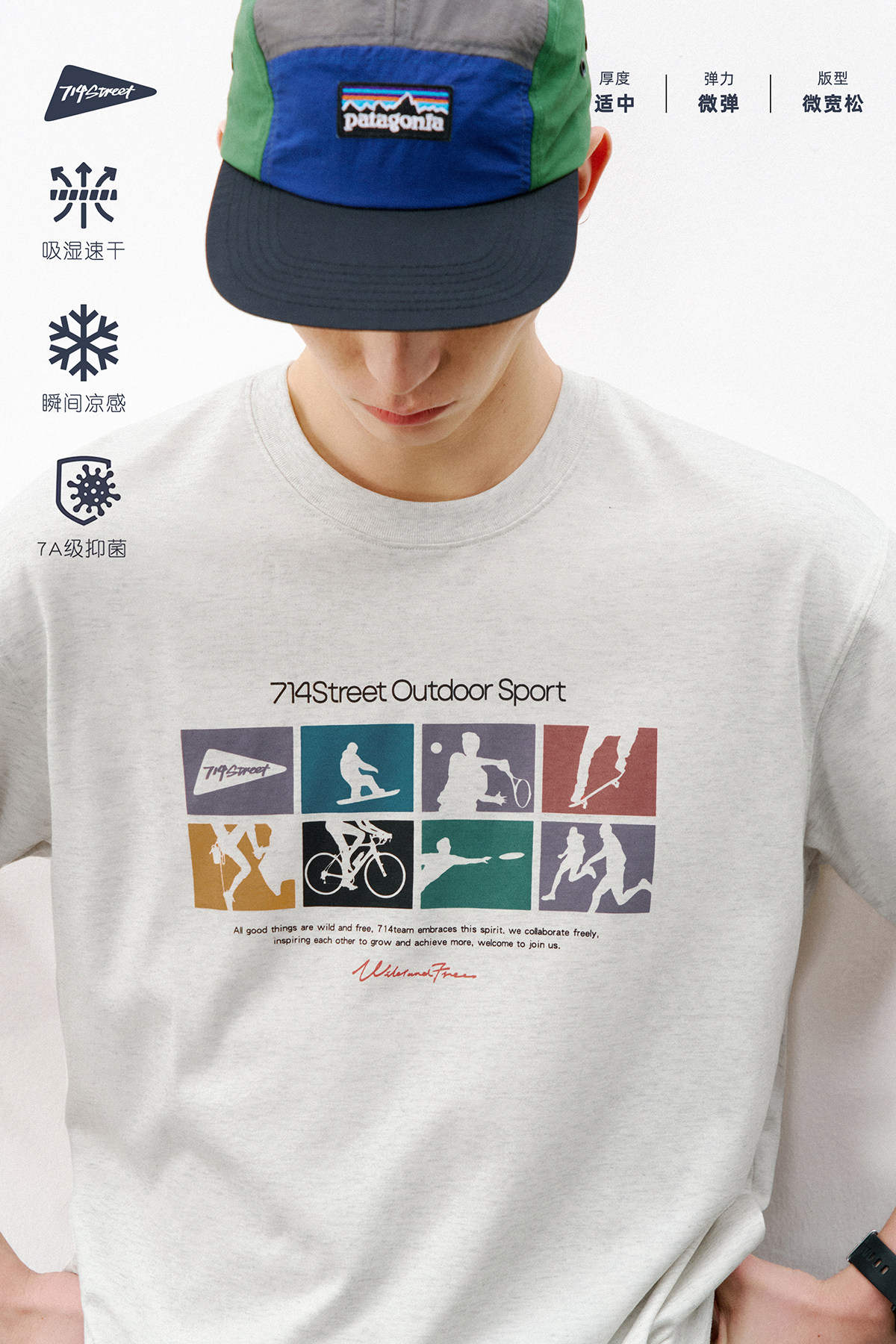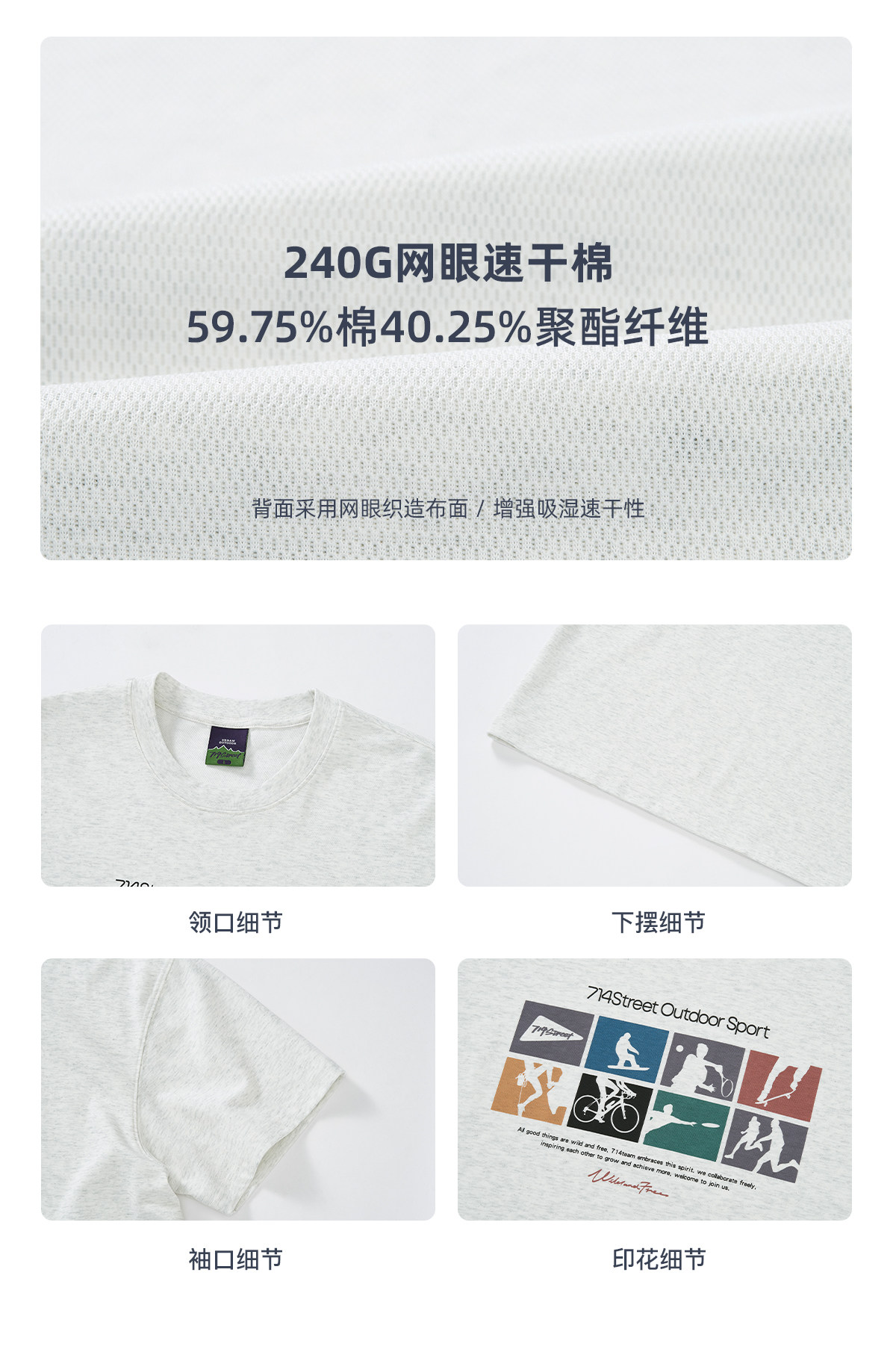 714street速干凉感7A抗菌灰色短袖男2026夏季潮牌运动印花情侣T恤