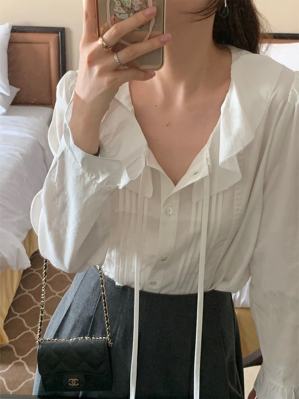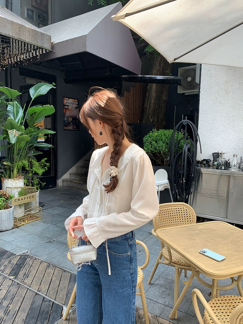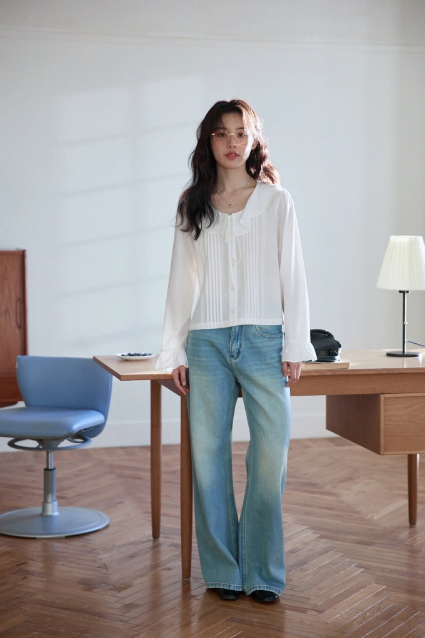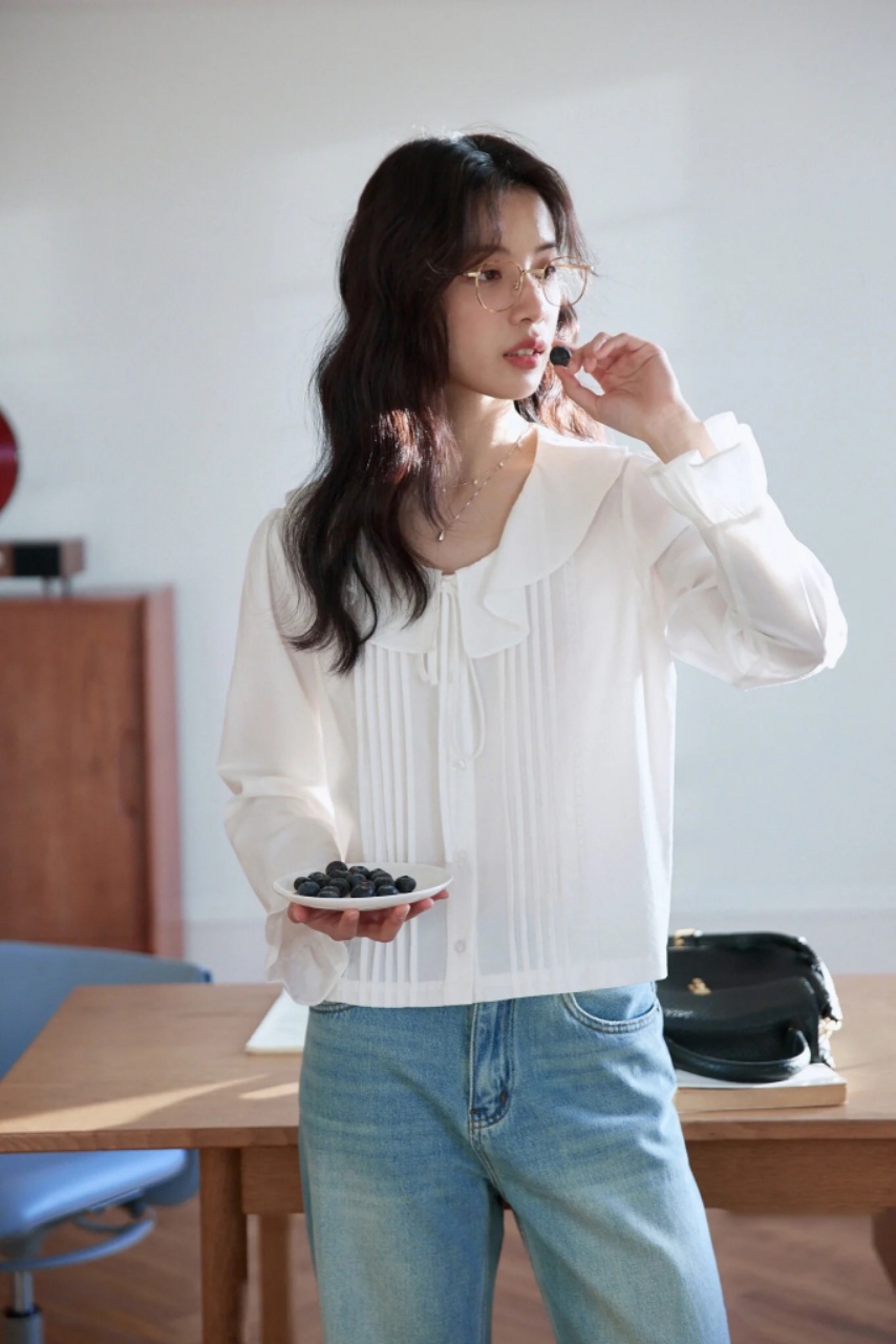 cosAcosB韩系浪漫荷叶边领设计感气质衬衫3006 商品图4