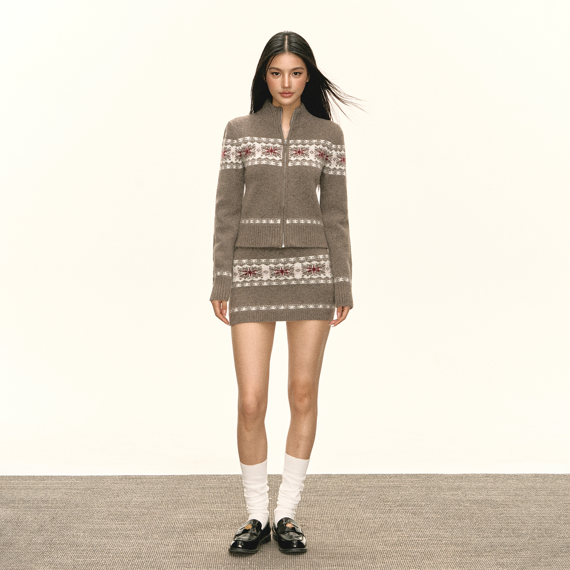 Ariseism 美式复古立领开衫针织短裙套装女秋季新款两件套
