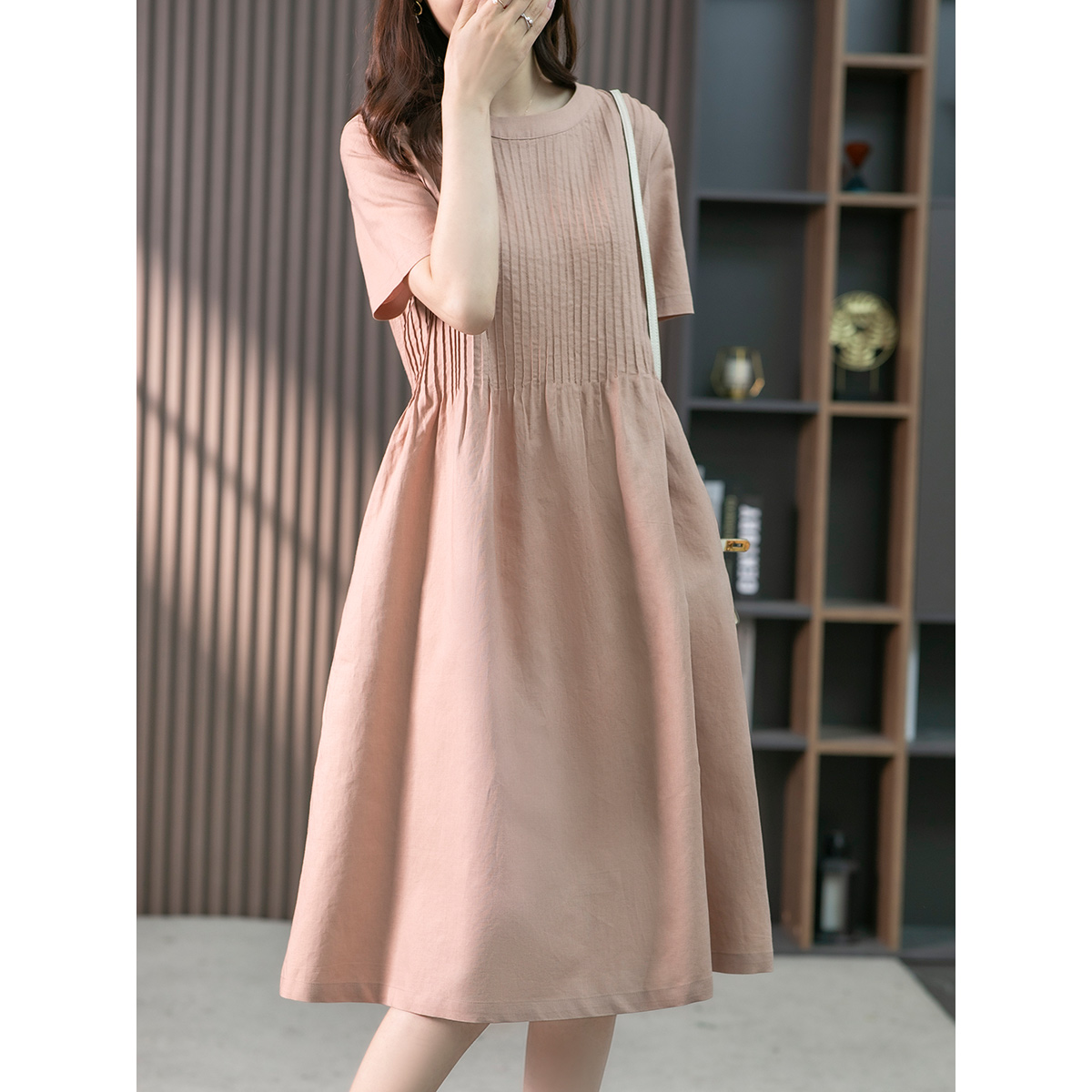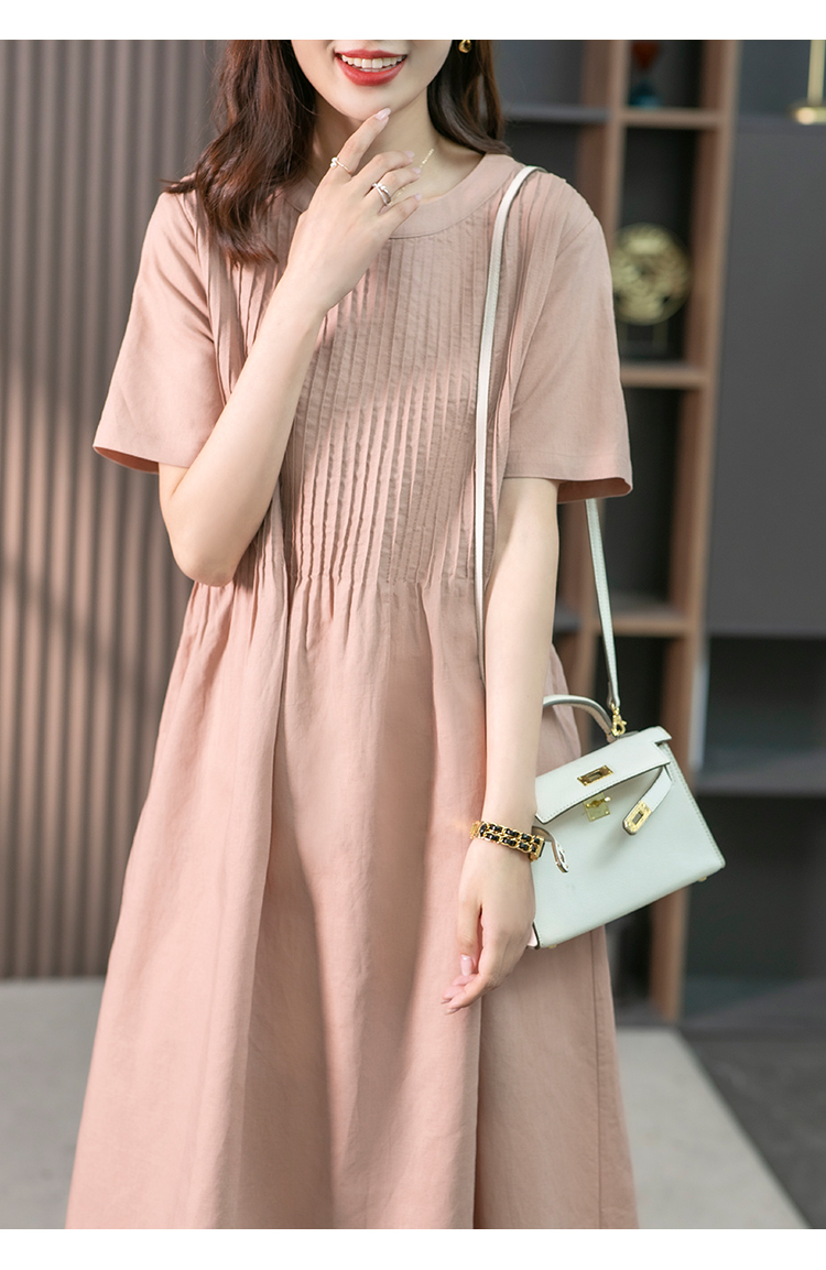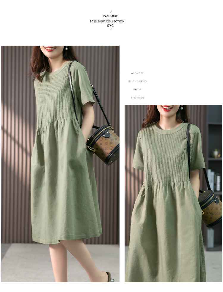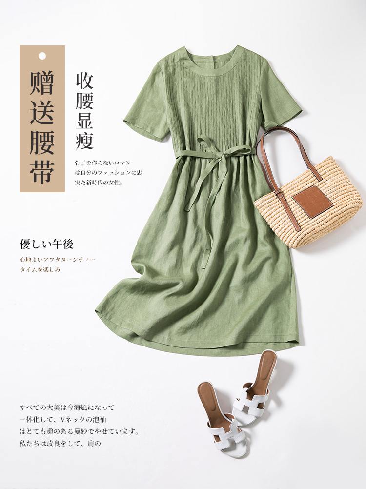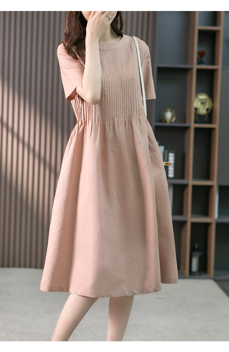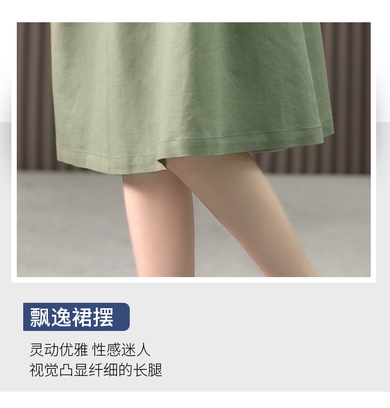 YX【现货7天】亚麻连衣裙女中长款2023夏季新款韩版宽松设计感小众中长裙子
