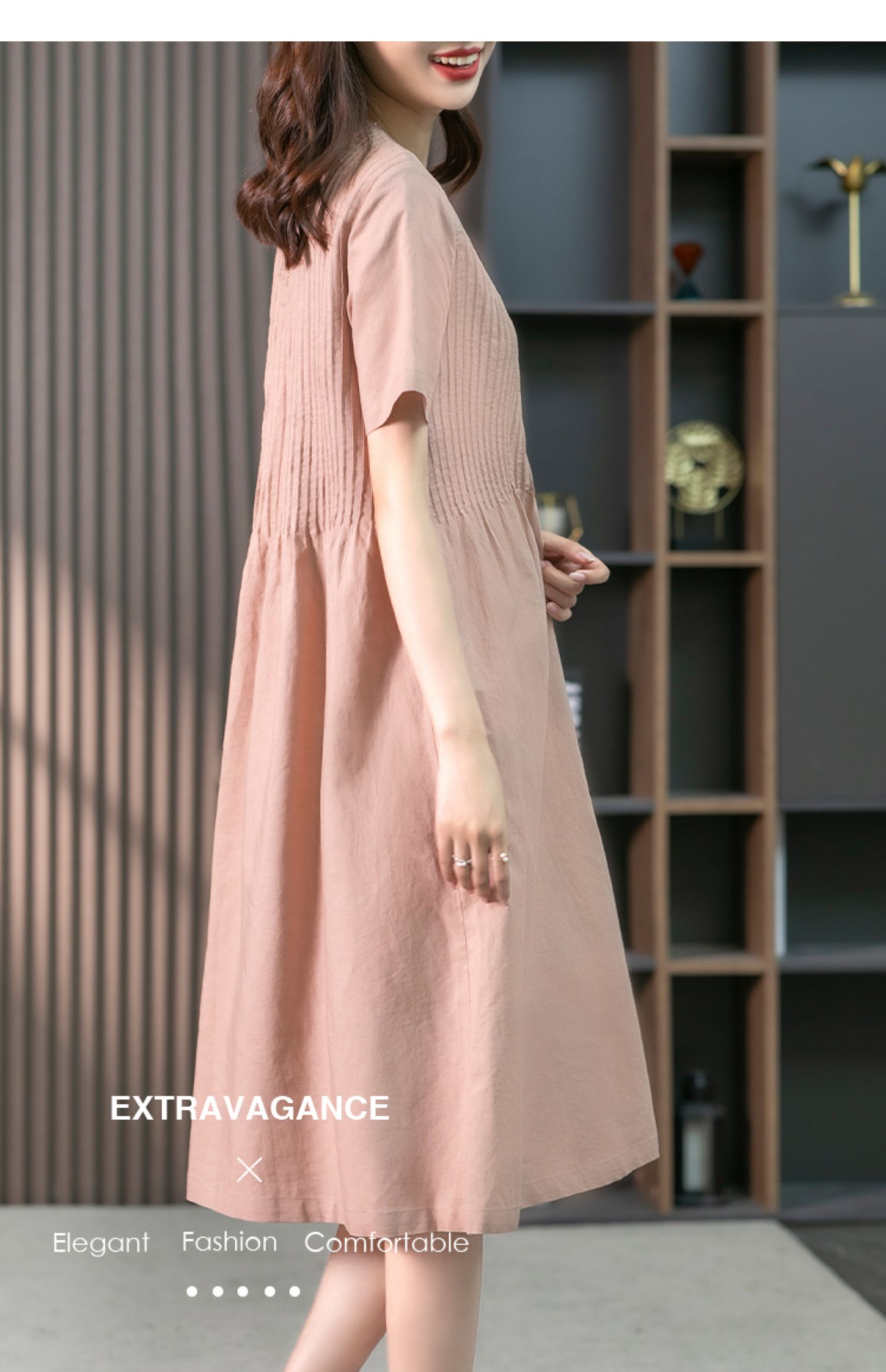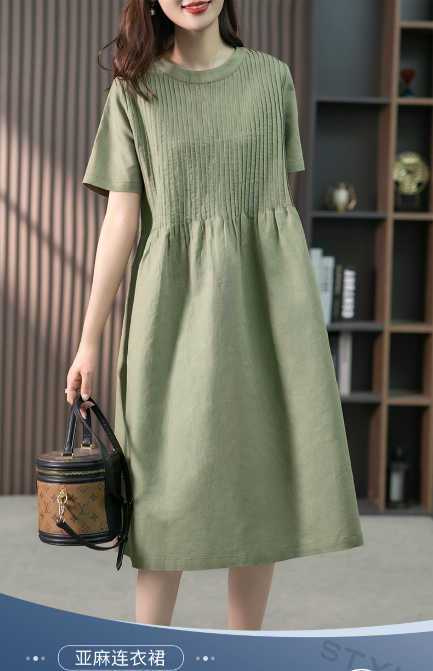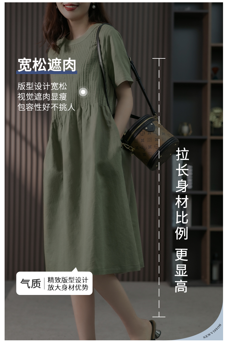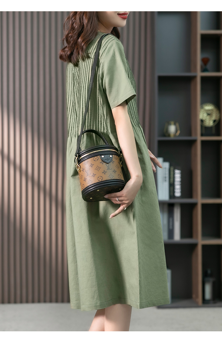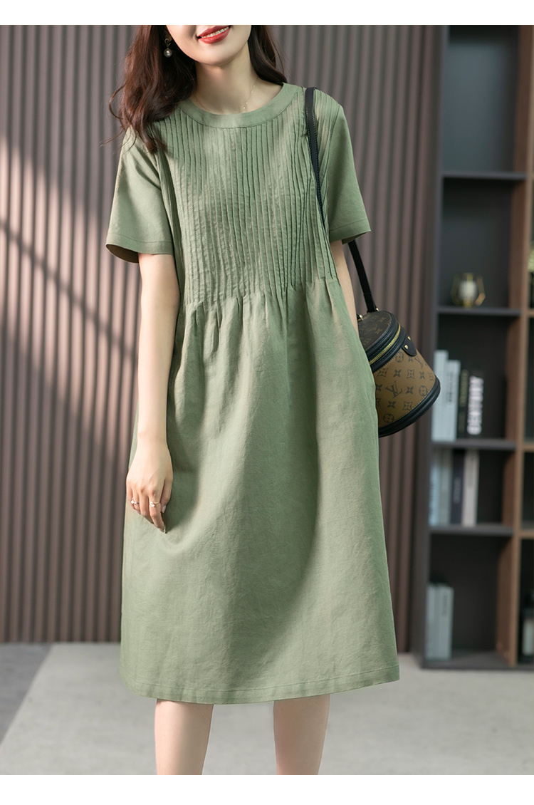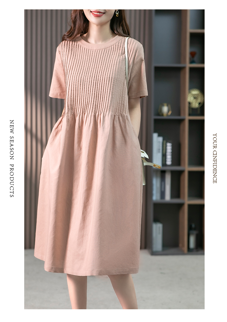 YX【现货7天】亚麻连衣裙女中长款2023夏季新款韩版宽松设计感小众中长裙子