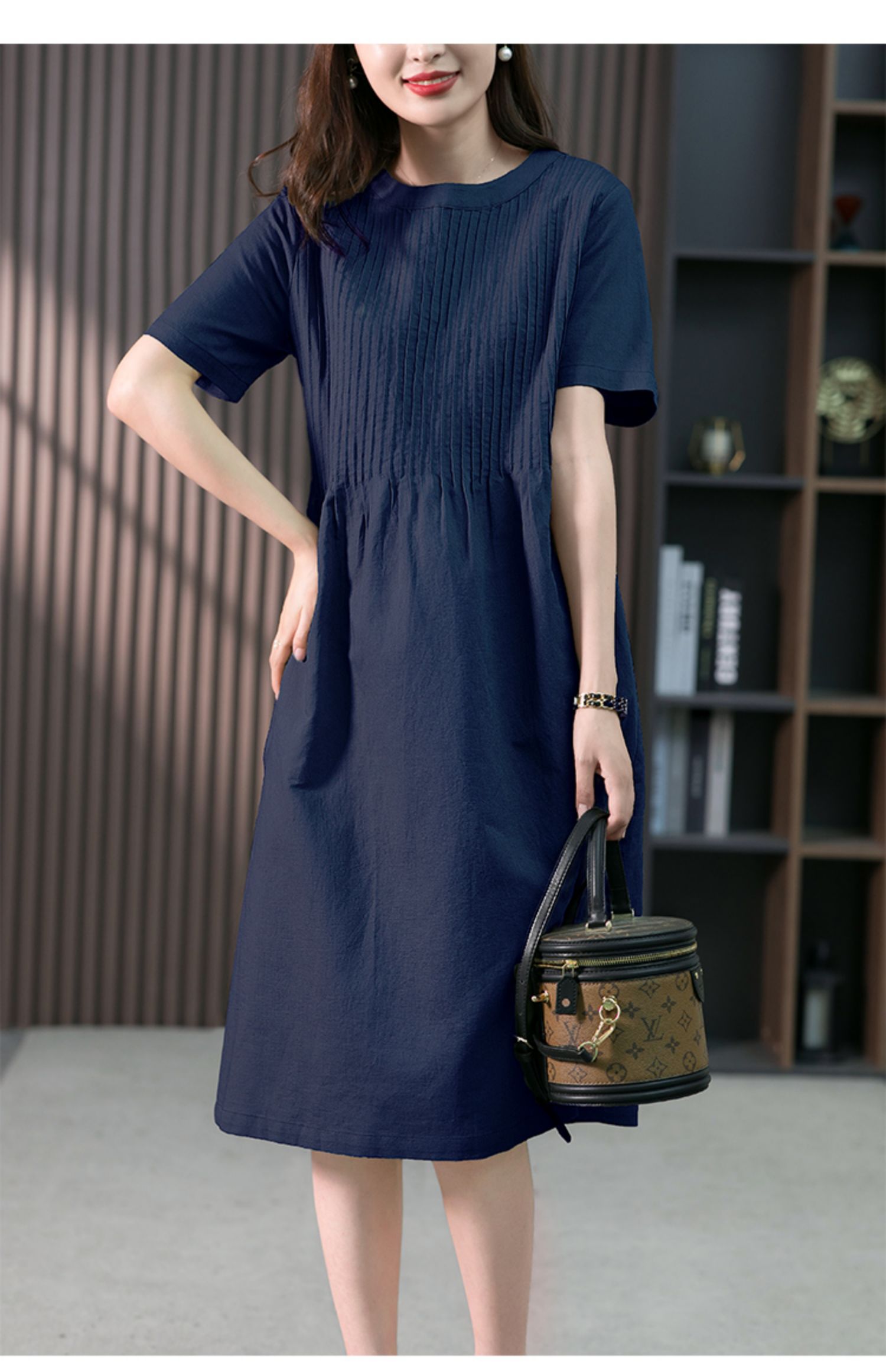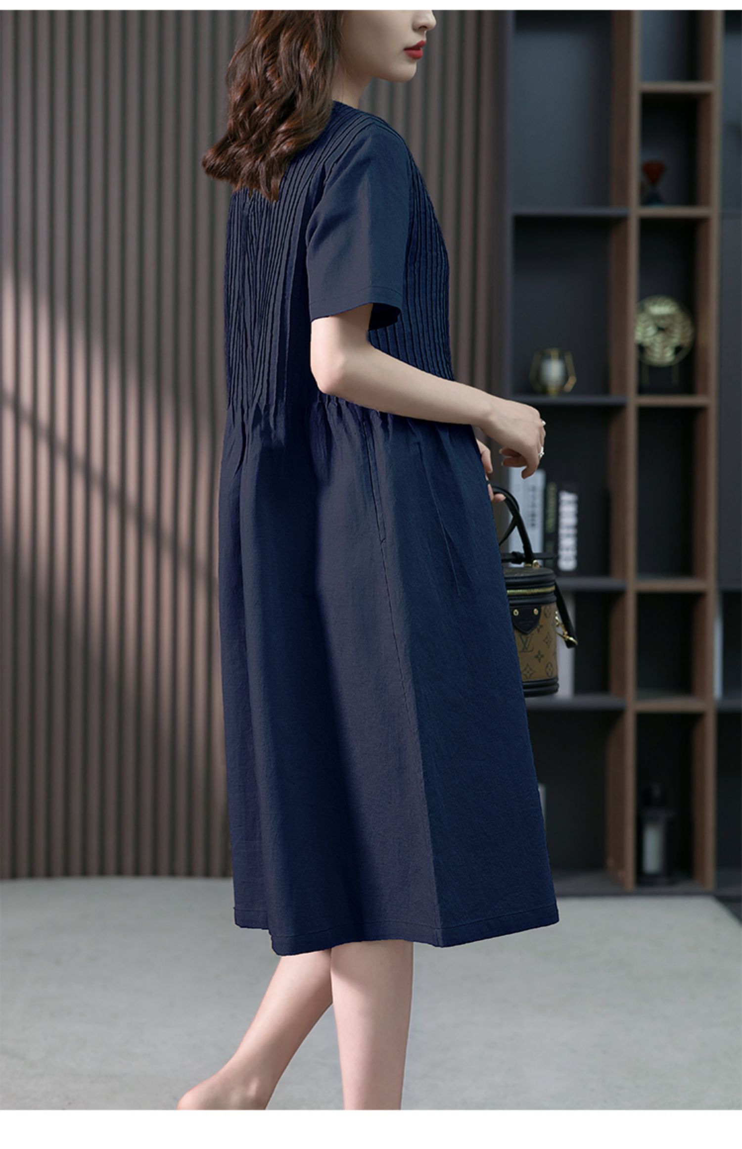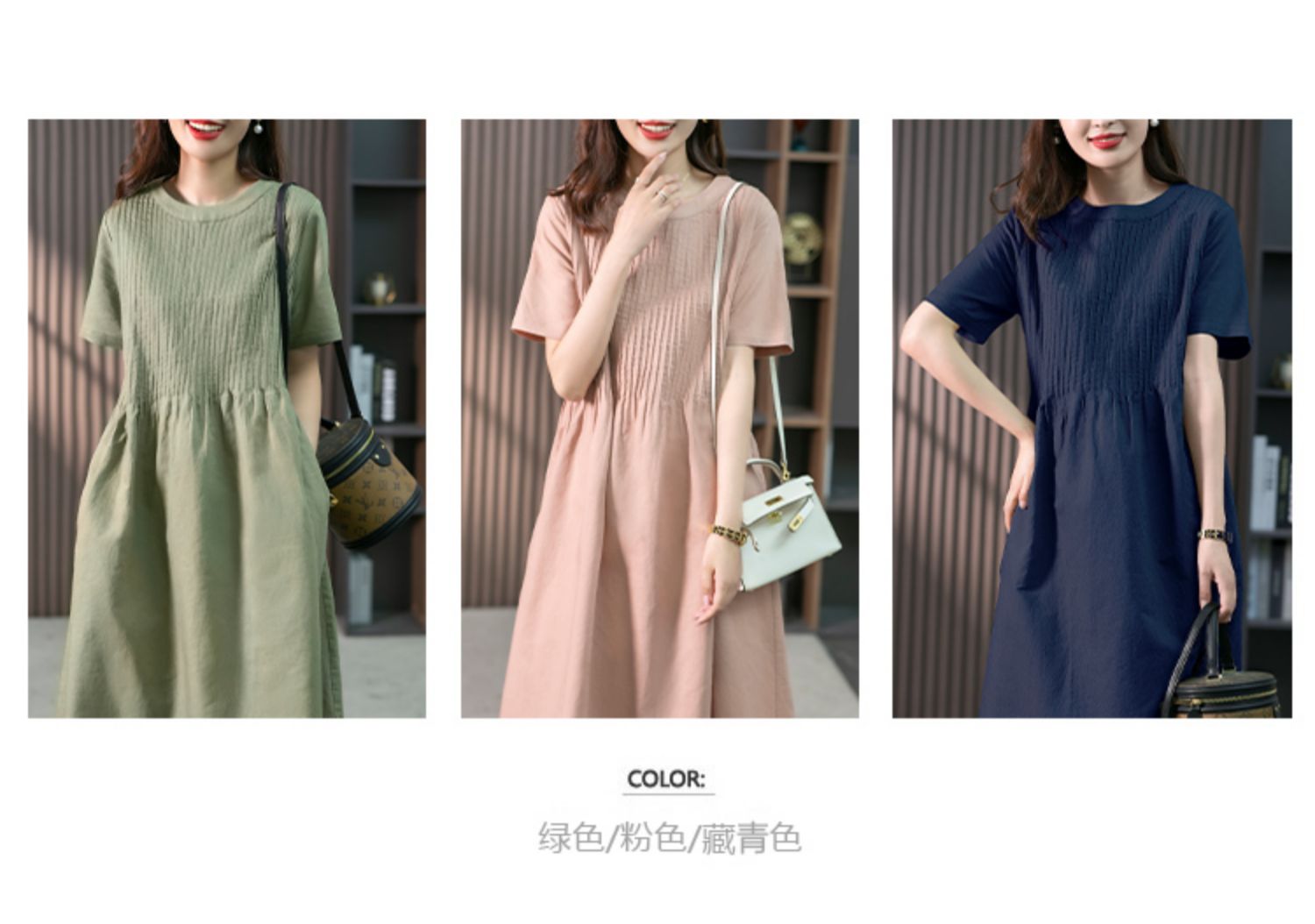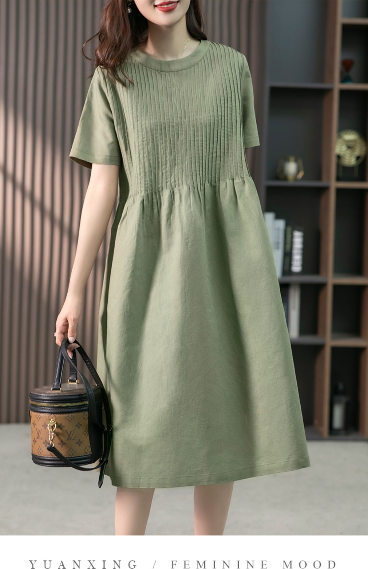 YX【现货7天】亚麻连衣裙女中长款2023夏季新款韩版宽松设计感小众中长裙子