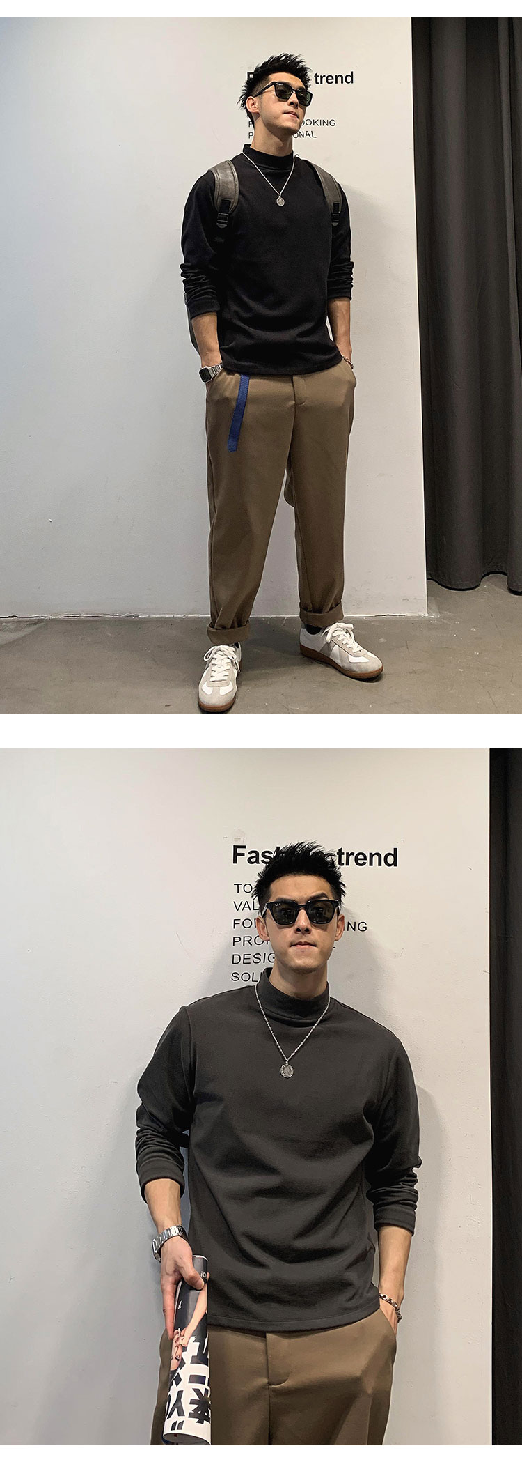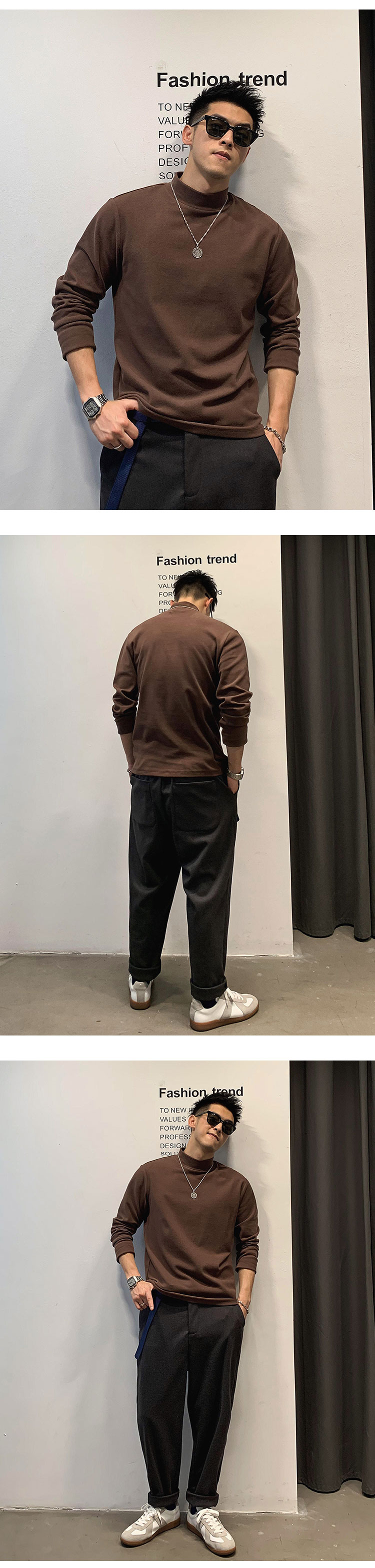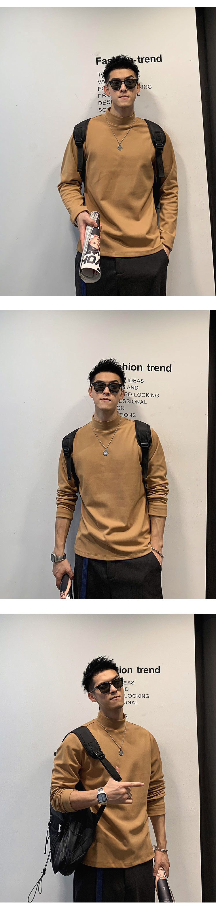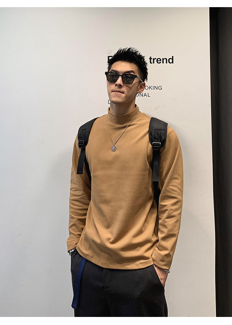 徐太浪男士德绒长袖T恤春秋爆款半高领打底衫上衣高级感内搭体恤