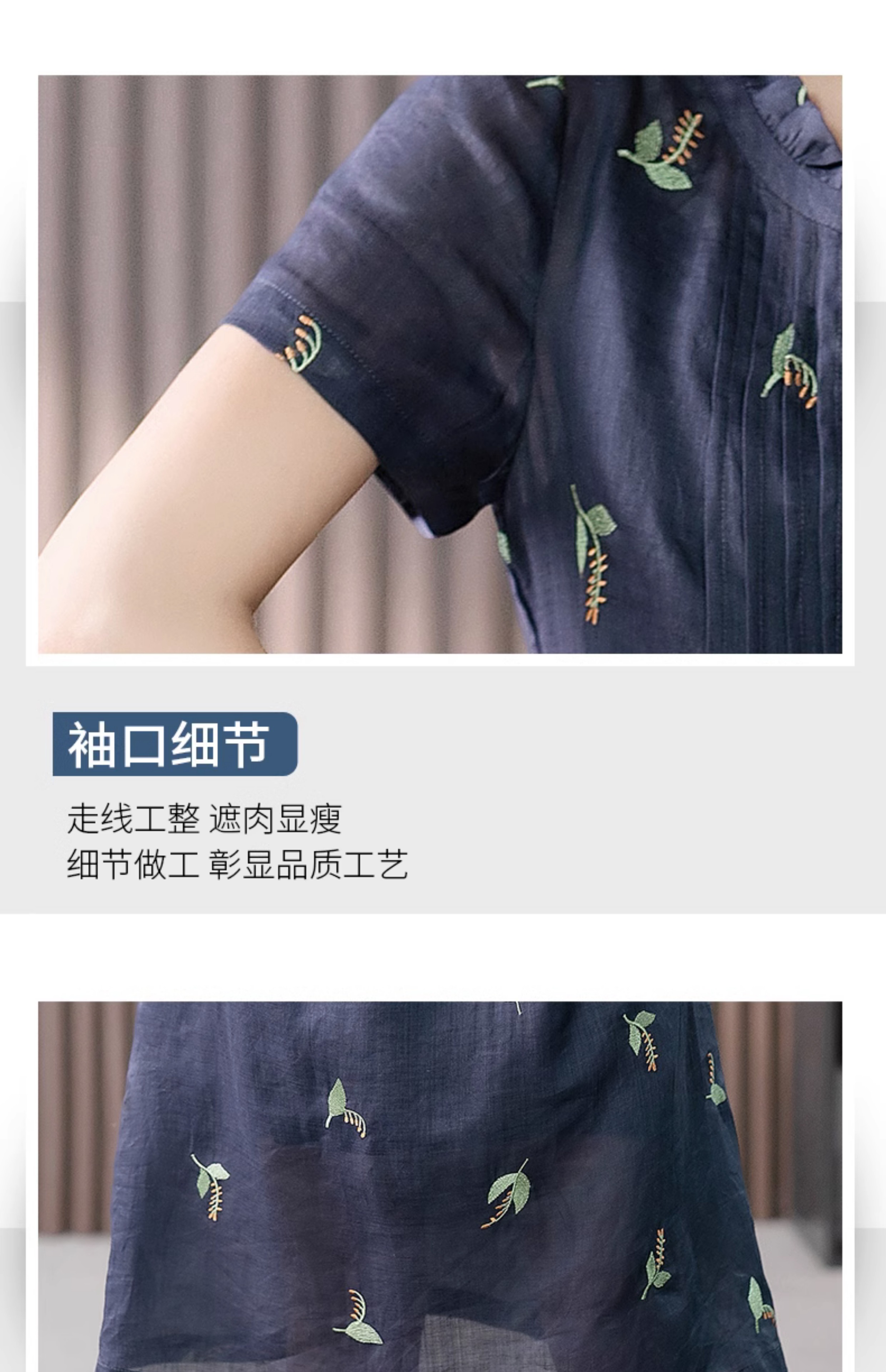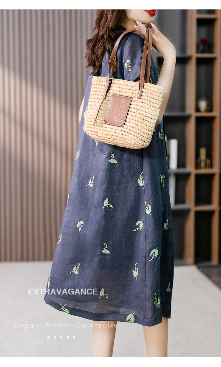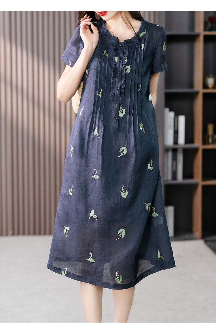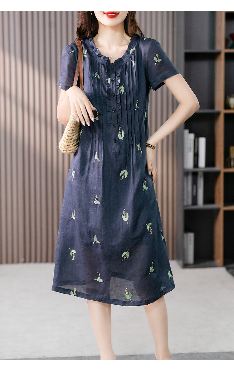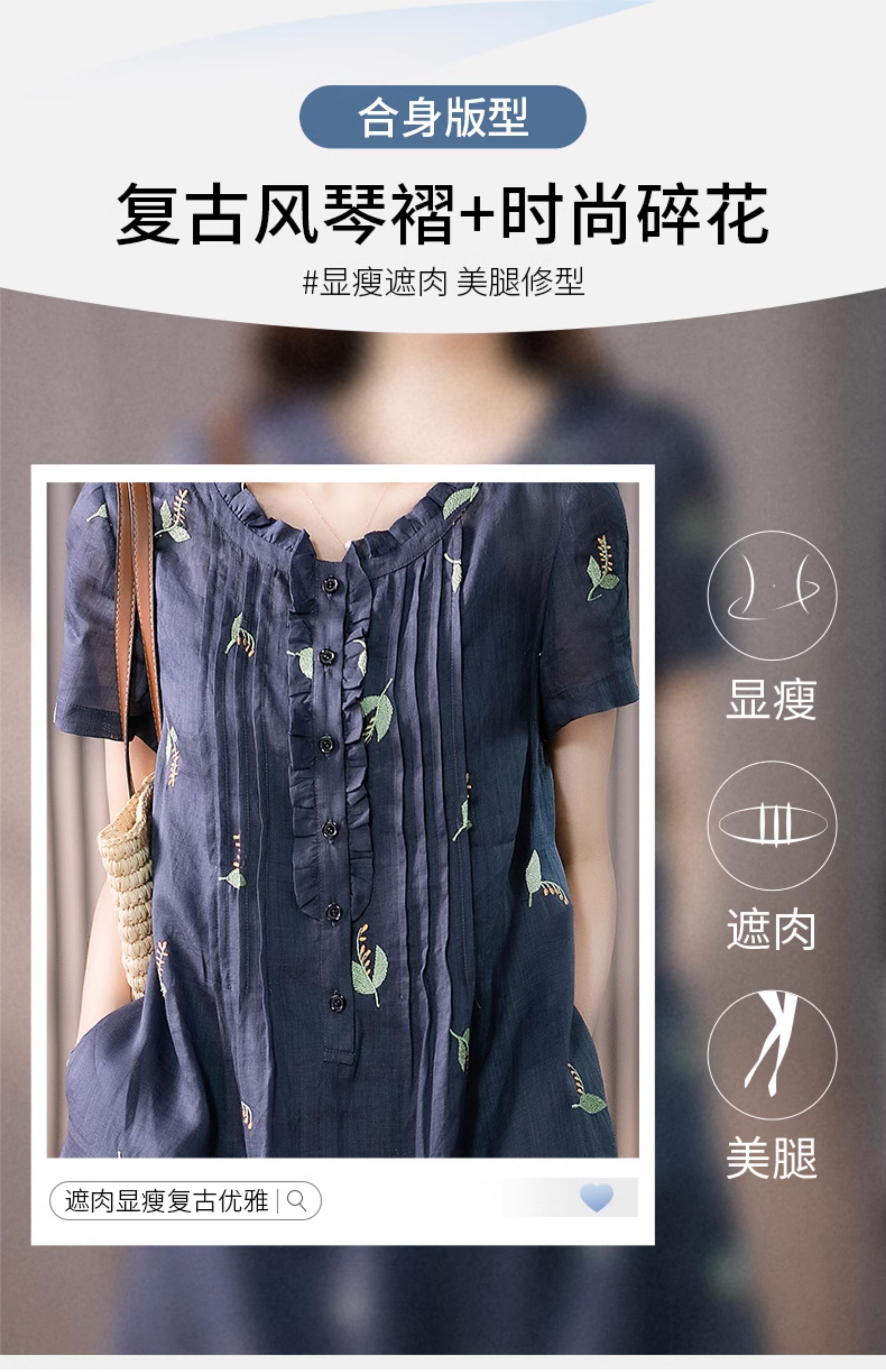 UG【定制10天】时尚碎花苎麻连衣裙女2023夏季新款韩版气质显瘦中长款裙子