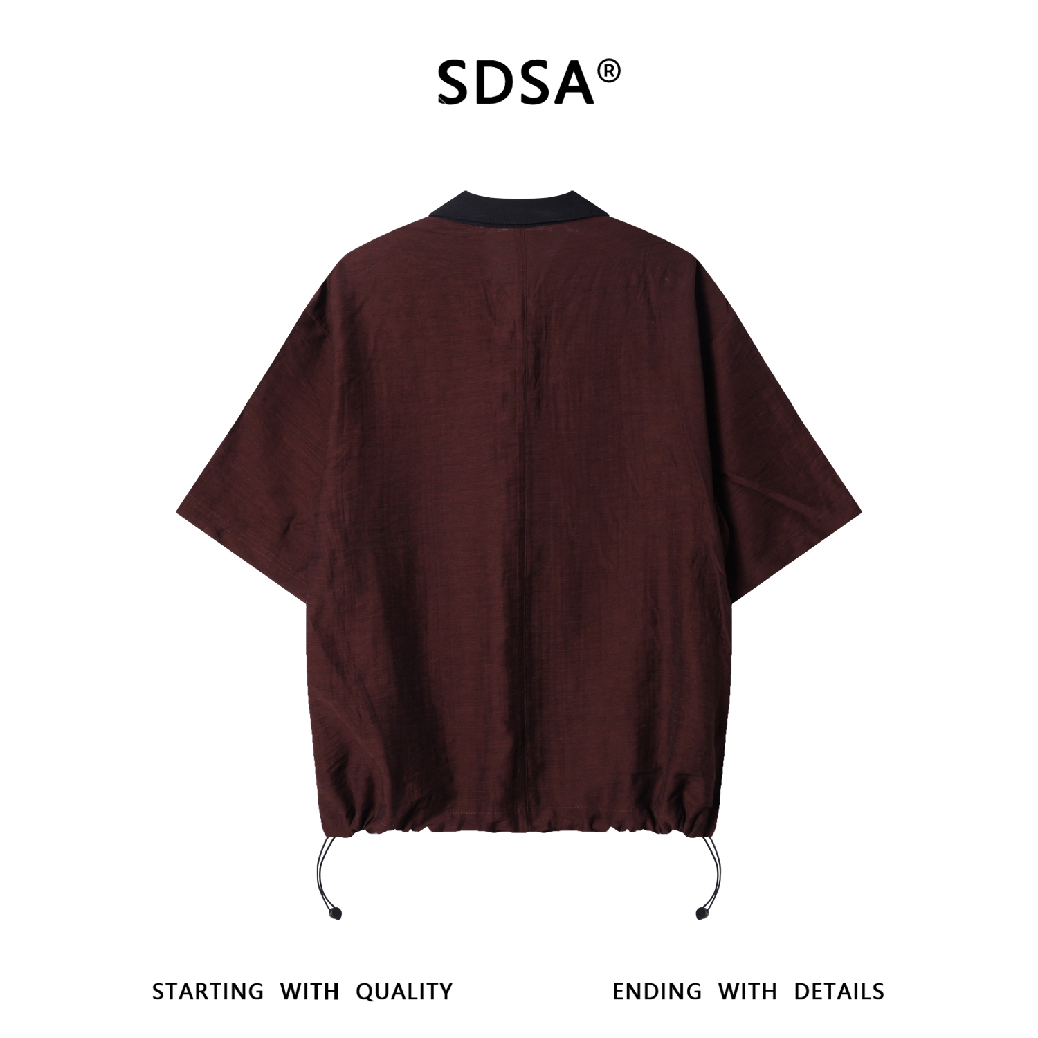 SDSA男装2026新款轻奢复古舒适半按扣翻领短袖衬衫下摆松紧百搭