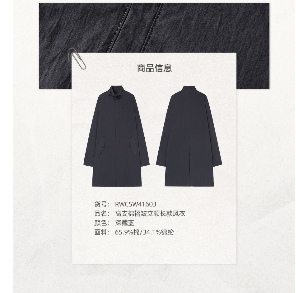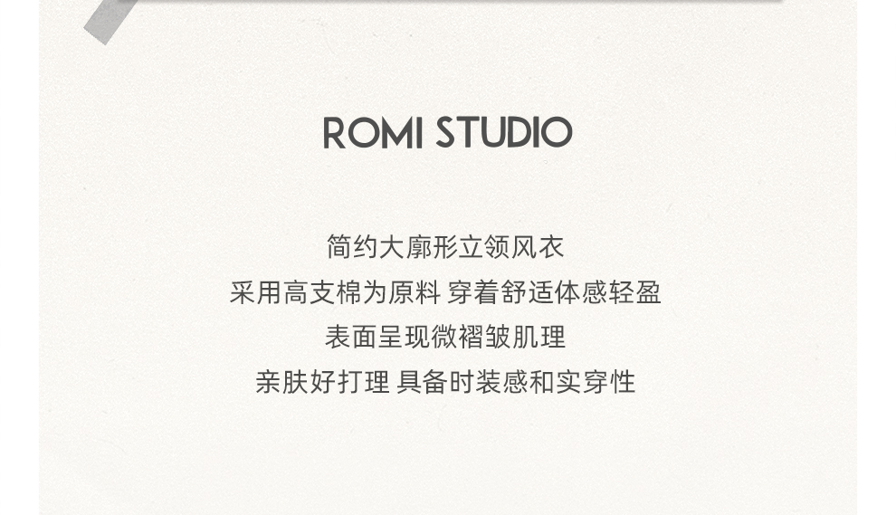 ROMI STUDIO100%高支匹马棉牛角扣立体挺括风衣外套RWCSWG6984