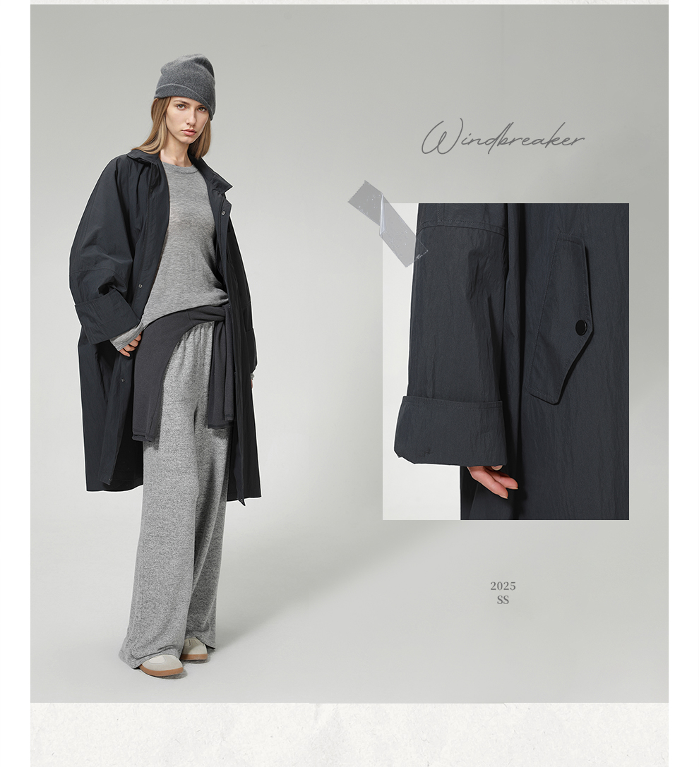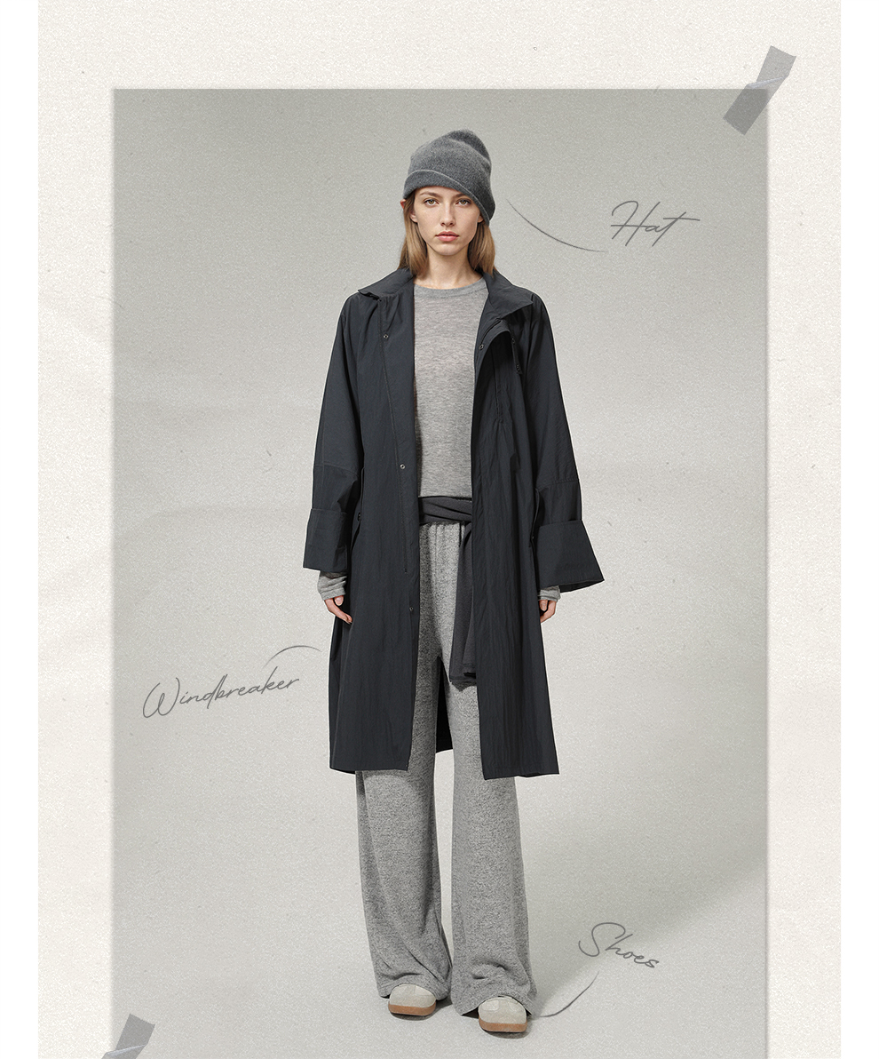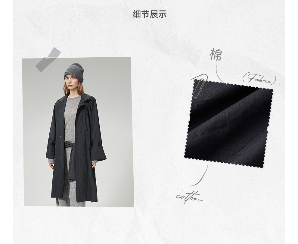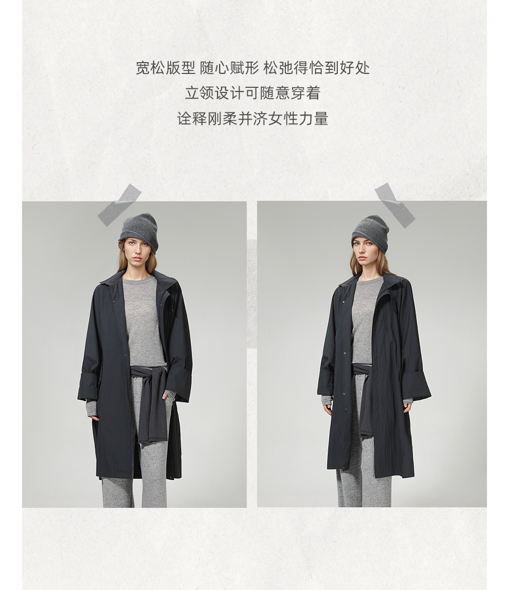 ROMI STUDIO“率性自我”高支棉褶皱蝙蝠袖高领长款风衣 RWCSW41603