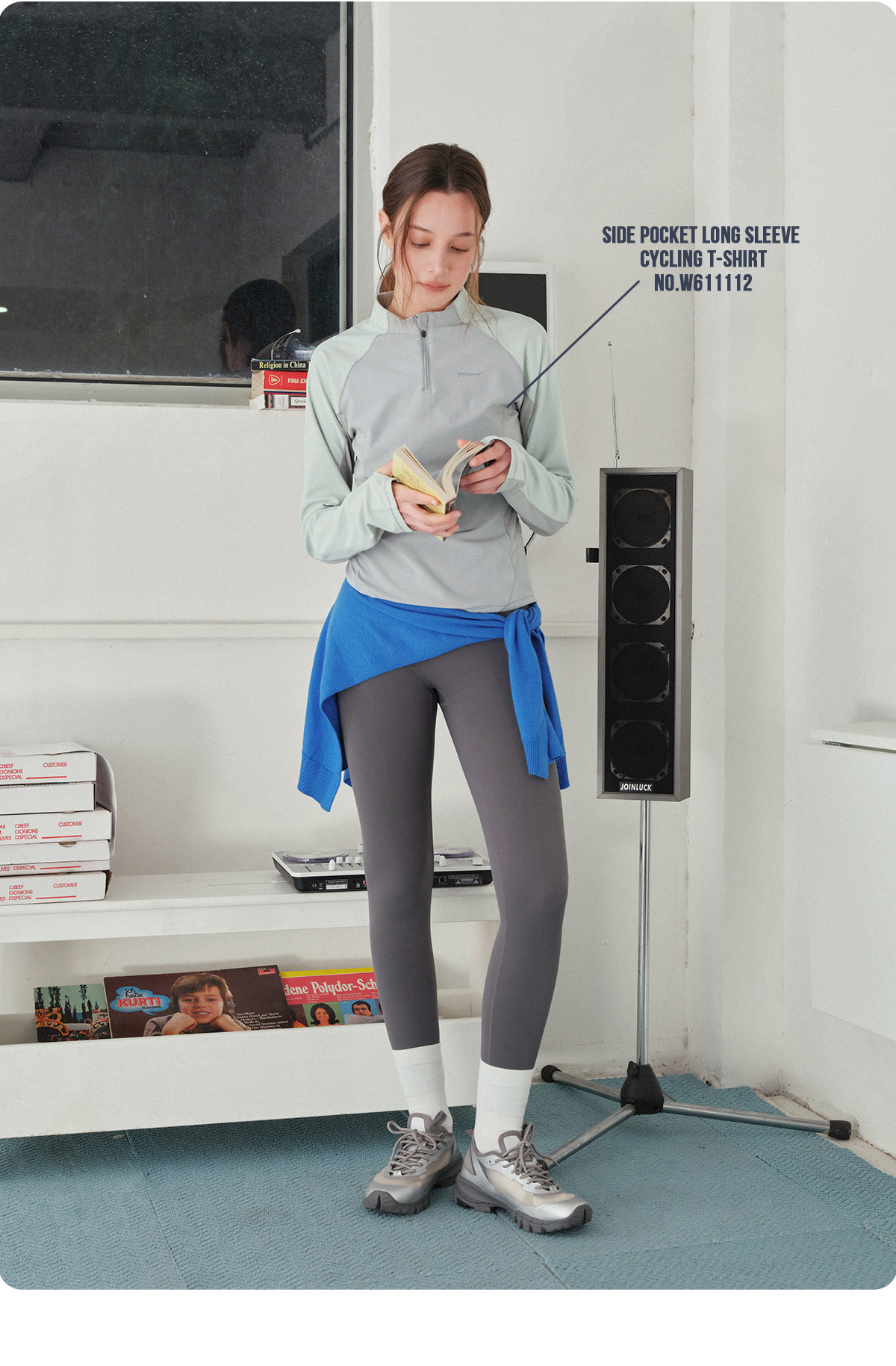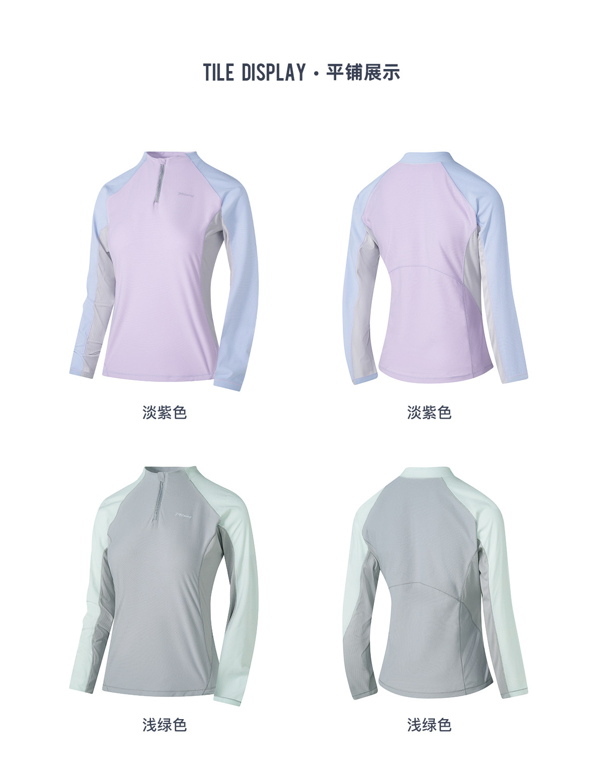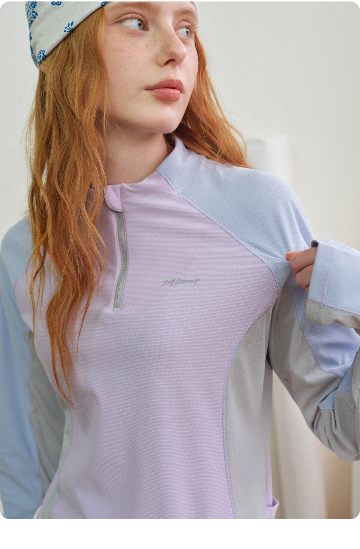 714street拼接透气运动长袖速干衣2026春季吸湿防晒半拉链T恤女款