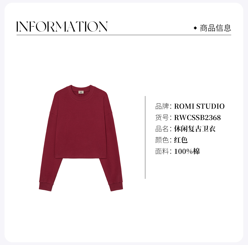 ROMI STUDIO“松弛随性”100棉落肩廓形圆领宽松套头卫衣RWCSSB2368