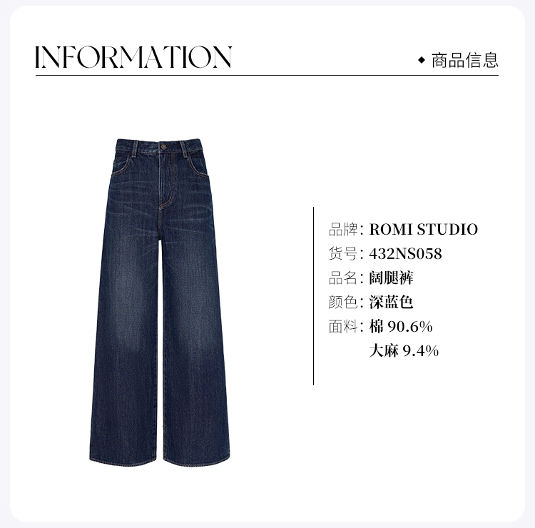 ROMI STUDIO“重磅丹宁”土耳其进口大麻棉混纺直筒牛仔裤 432NS058