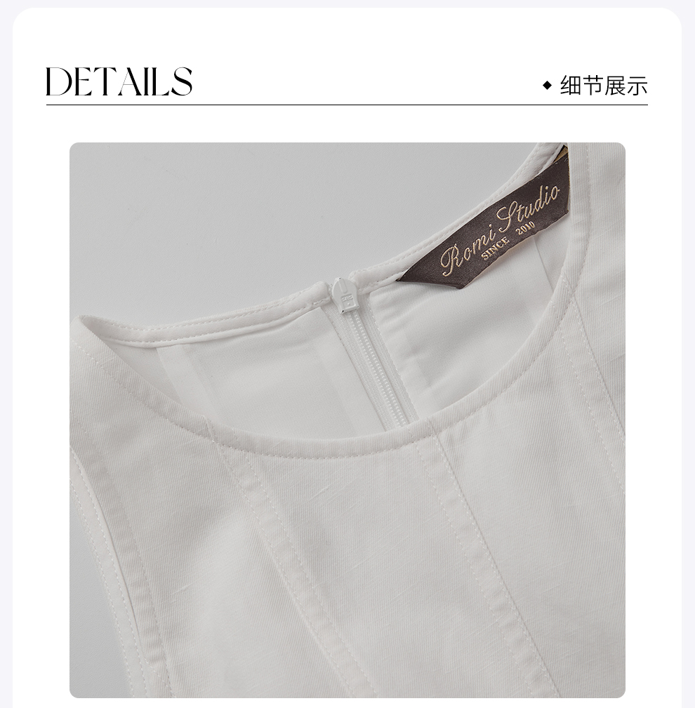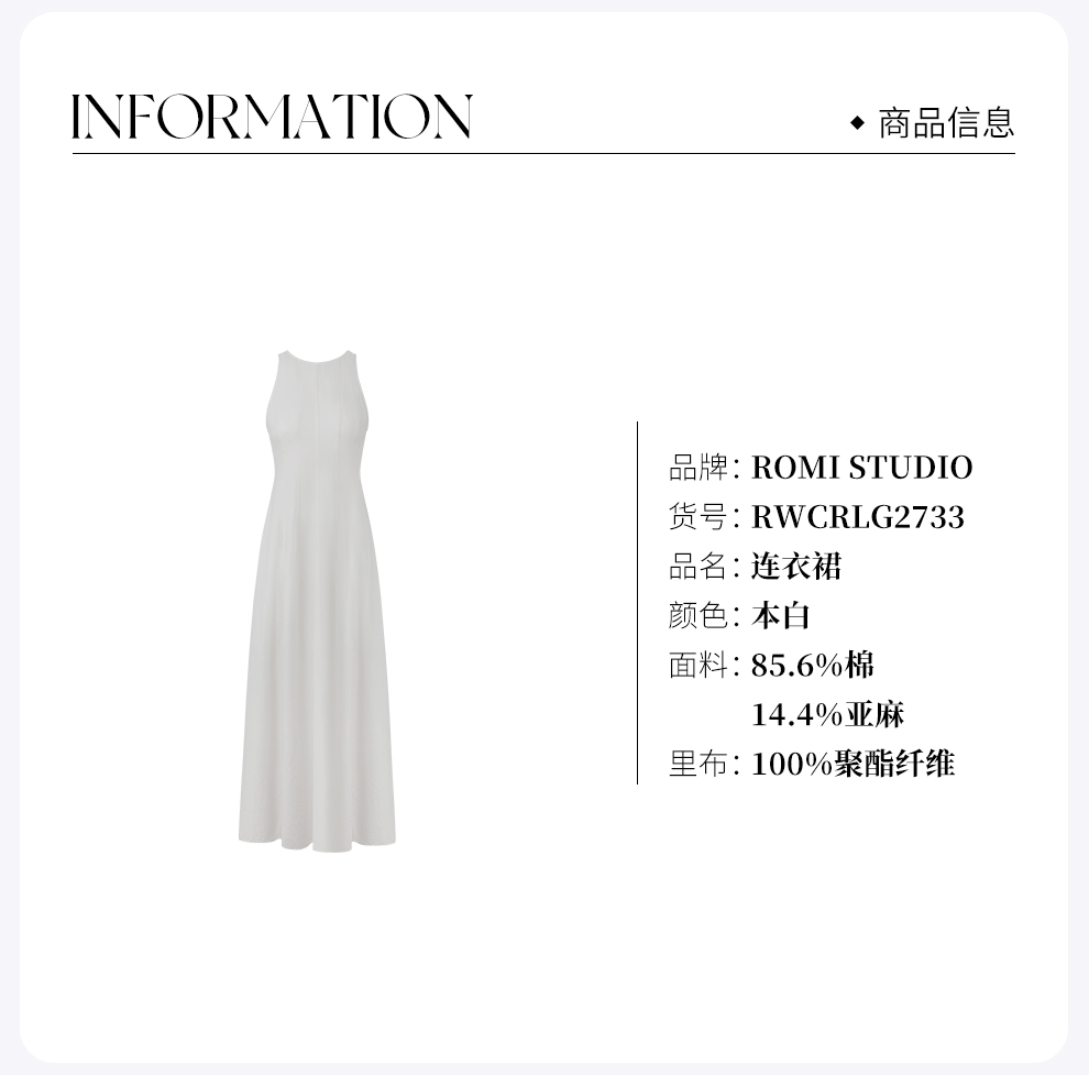 ROMI STUDIO 简约优雅 棉麻混纺白色无袖长款连衣裙 RWCRLG2733