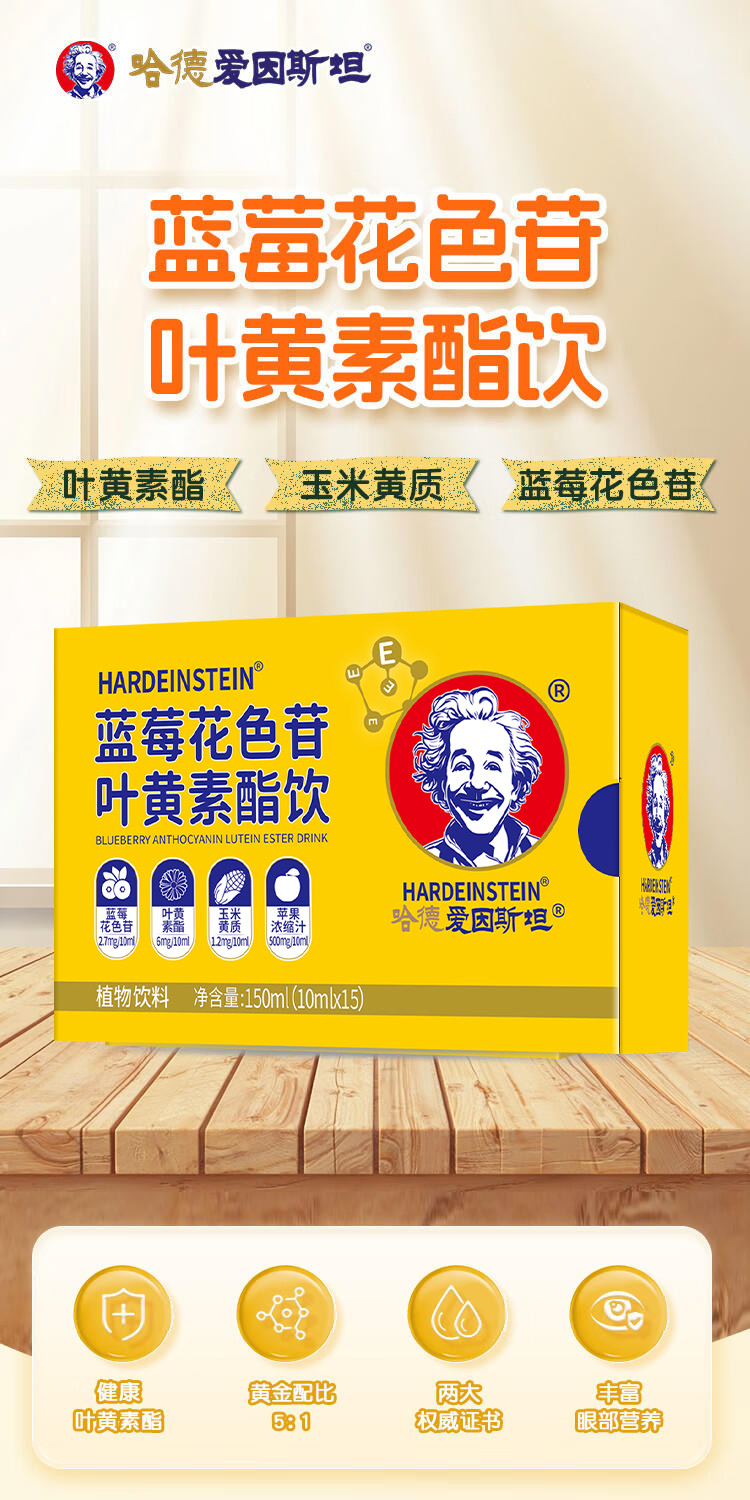 哈德爱因斯坦蓝莓花色苷叶黄素酯饮 保护视力 呵护学生青少年眼睛