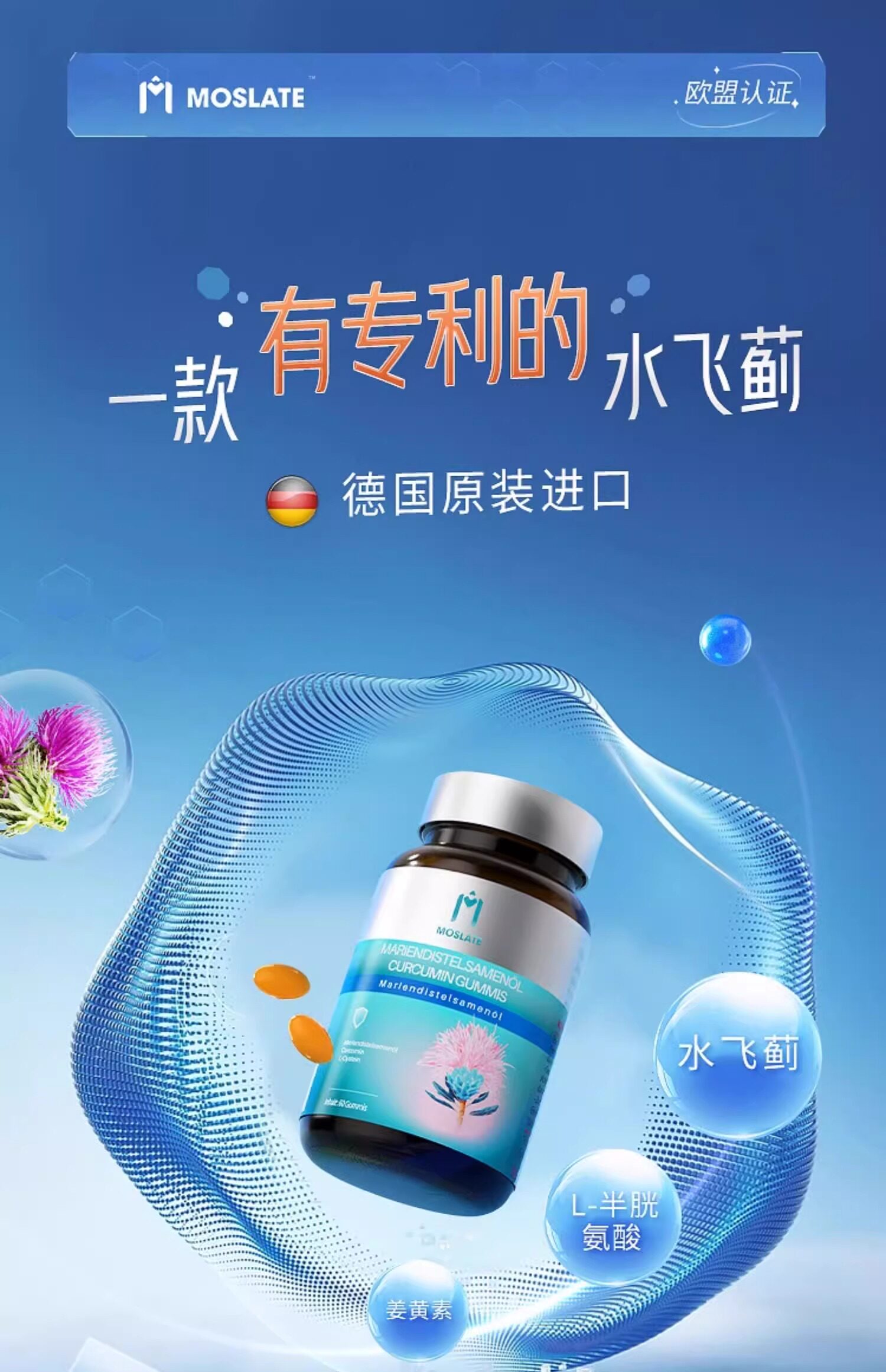 Moslate德国进口水飞蓟奶蓟草护肝片正品官方旗舰店胶囊熬夜