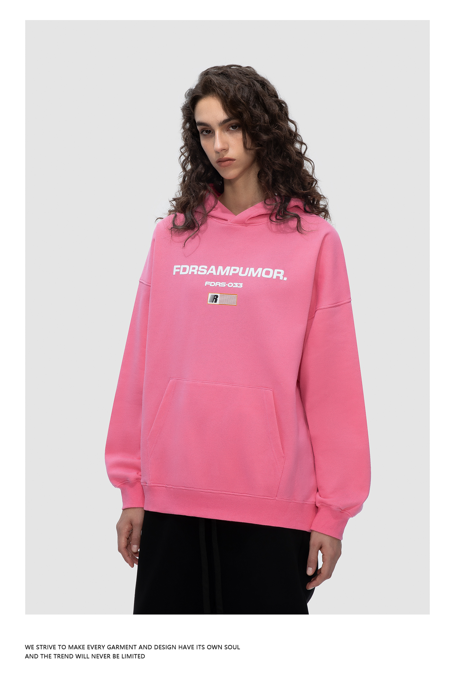 【限时7折】FDR官方店 国潮美式情侣发泡印花加绒连帽卫衣男女宽松上衣帽衫