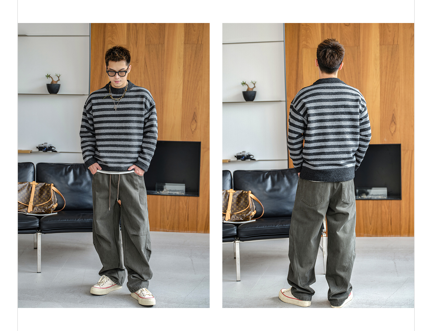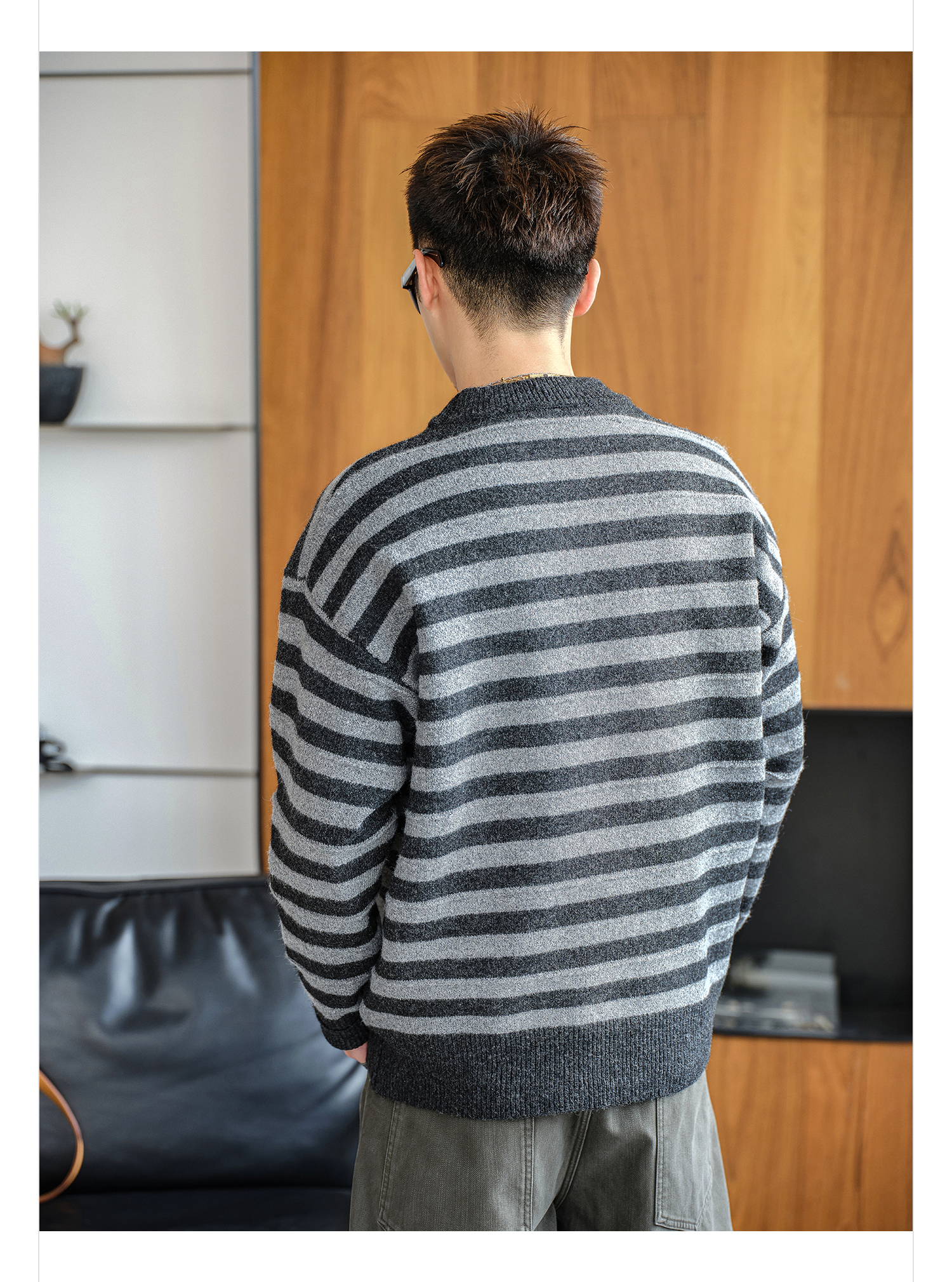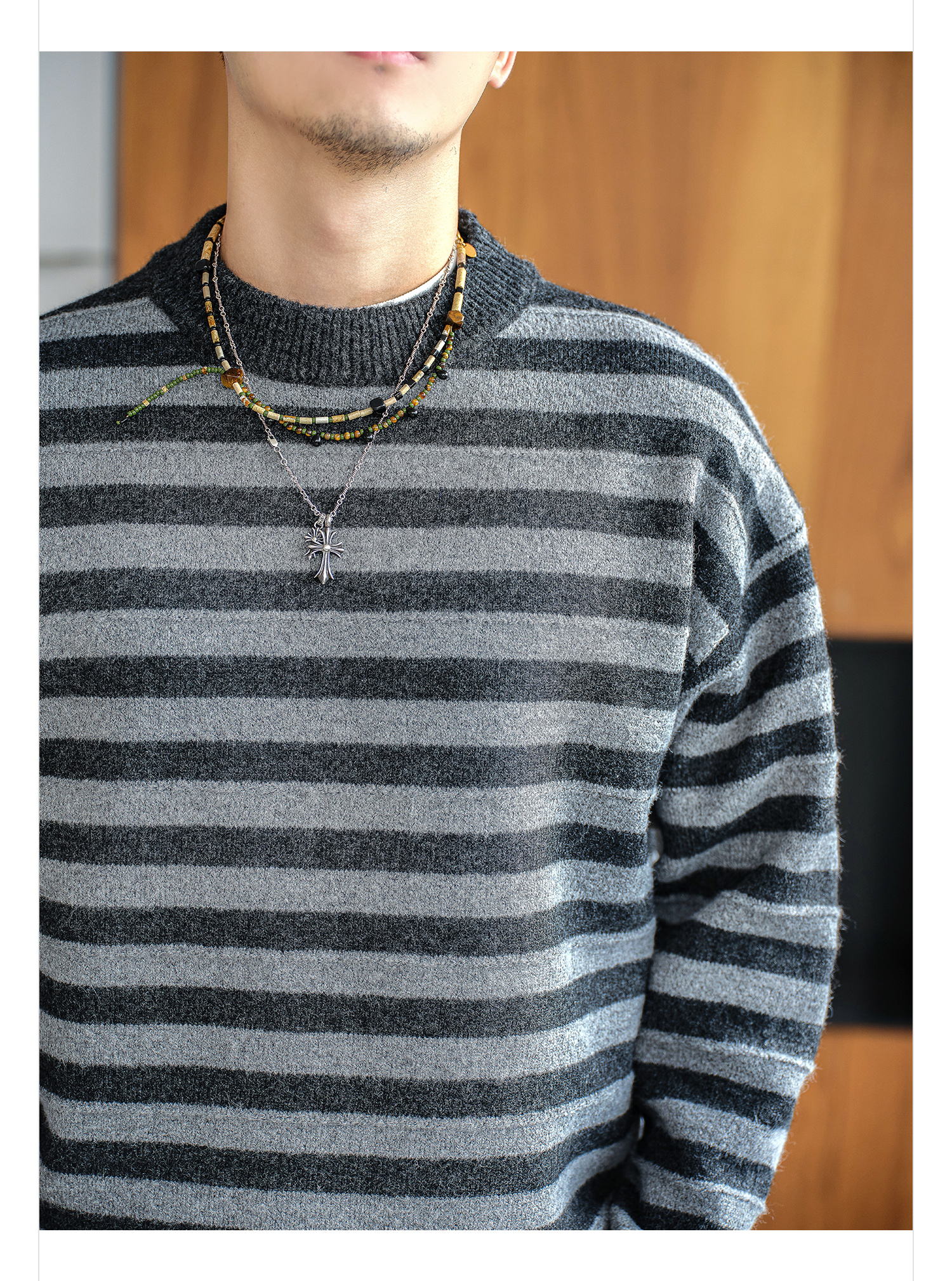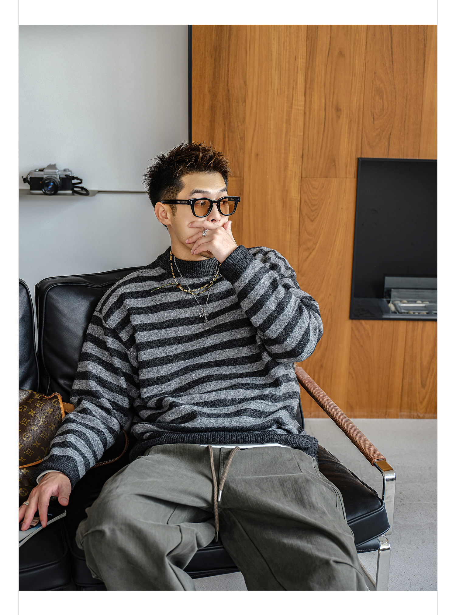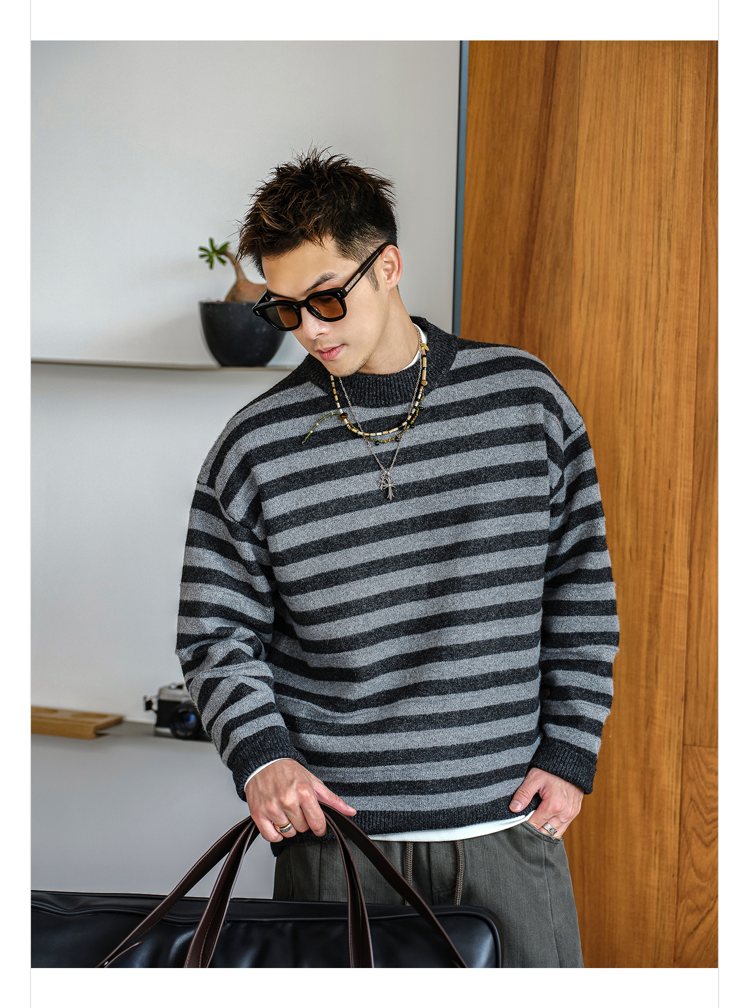 徐太浪【撞色混纺 复古条纹】美式毛衣男秋冬休闲内搭针织衫上衣