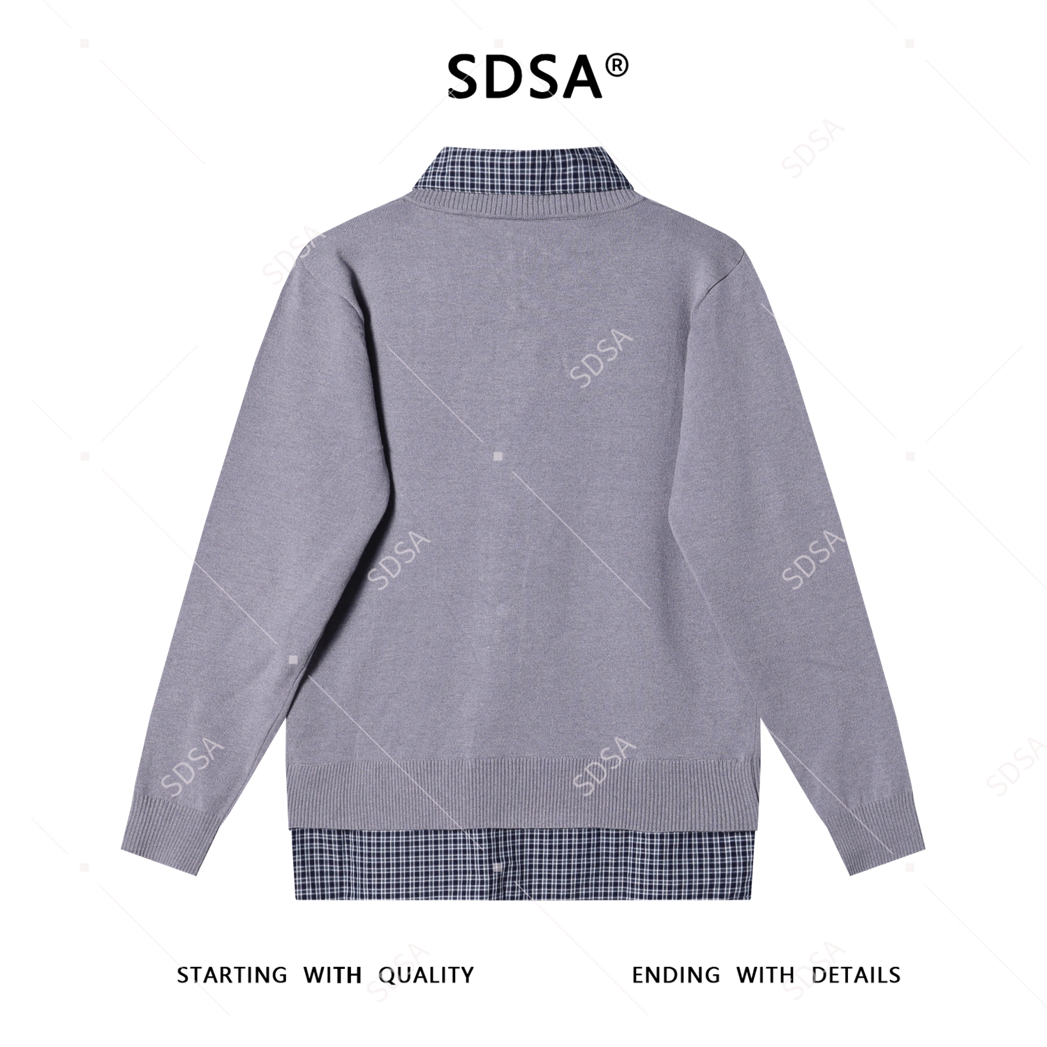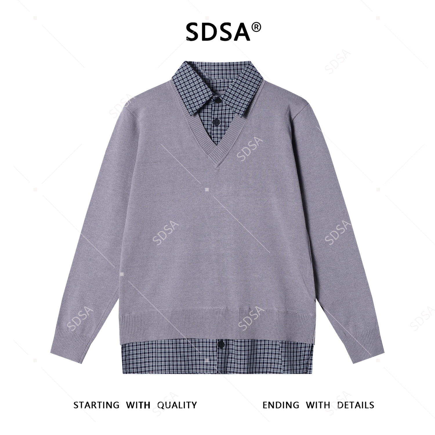 SDSA秋冬新款痞帅男装韩版拼接撞色假两件针织毛衣复古翻领上衣