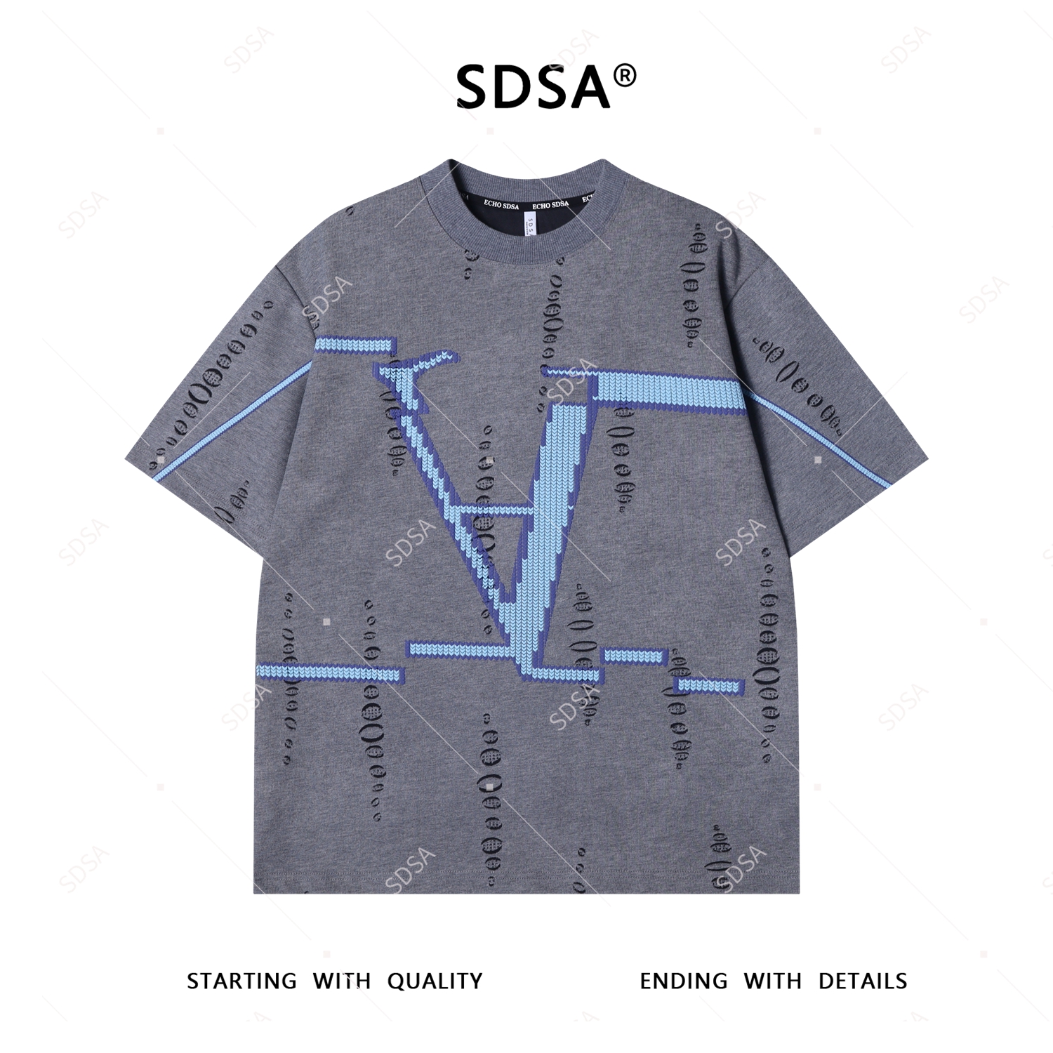 T3870夏季高级感新款男士美式印花字母磨破短袖T恤复古休闲圆领上衣潮