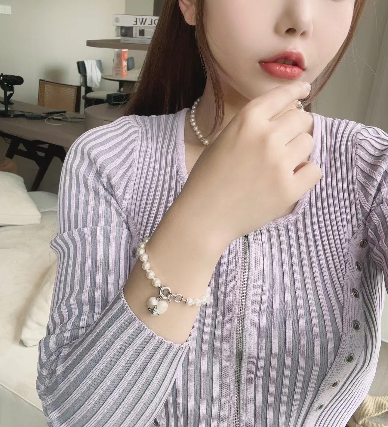 珍珠搭配桃心图案设计,单圈琉璃珍珠做链条,搭配珍珠尽显光泽质感。简约大气ins风十足,超百搭的一款珍珠手链、上身尽显气质。