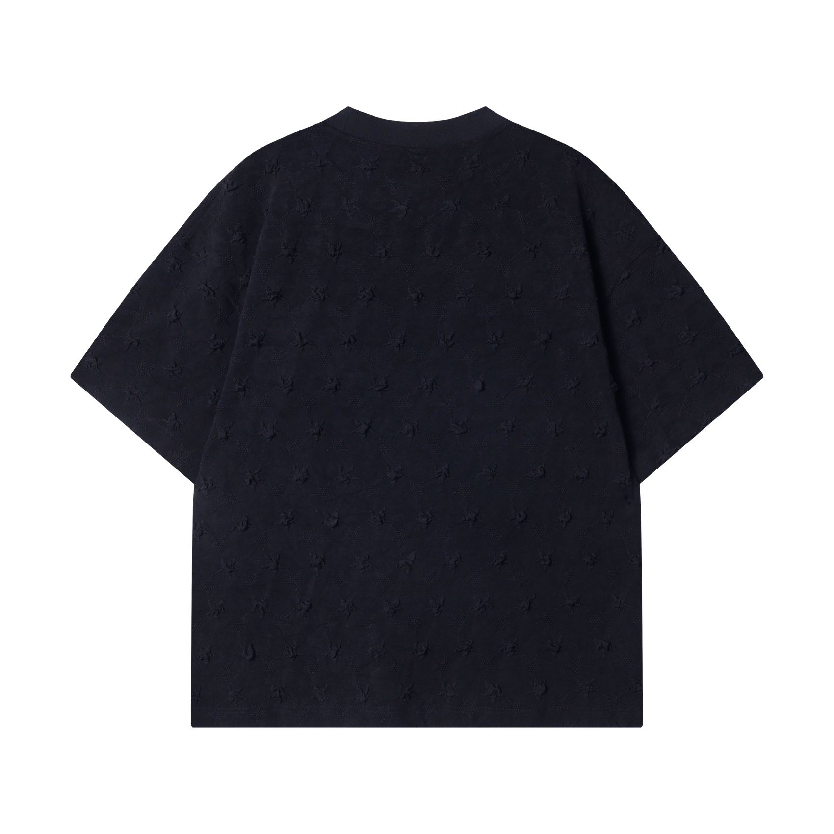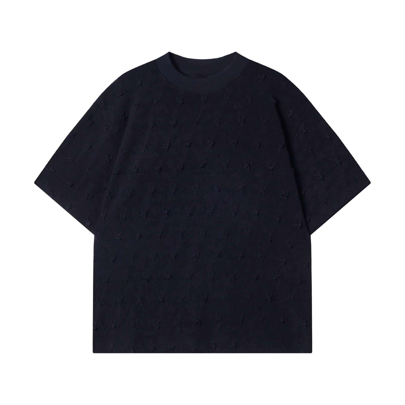 38750早春新款时尚个性韩版纯色褶皱纽花圆领短袖上衣百搭情侣上衣潮