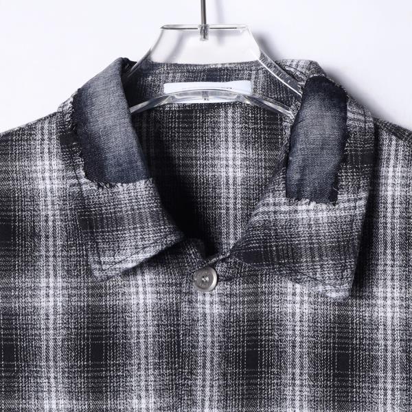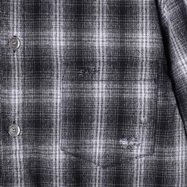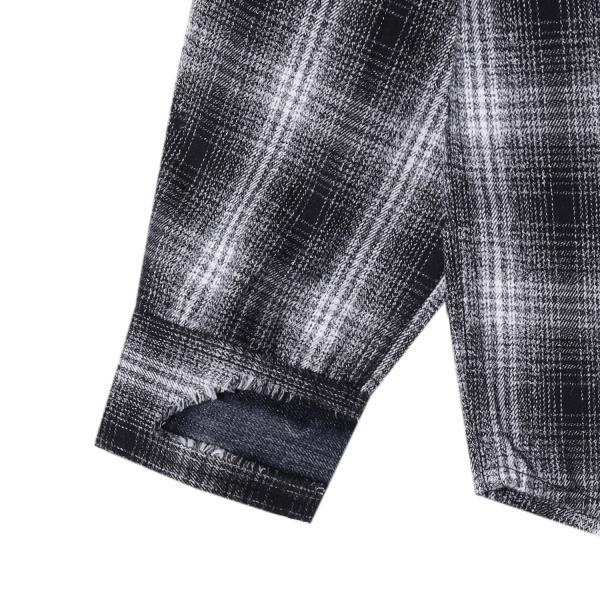 56150SDSA男士秋冬新款痞帅男装韩版磨破格子翻领长袖衬衫百搭宽松衬衣