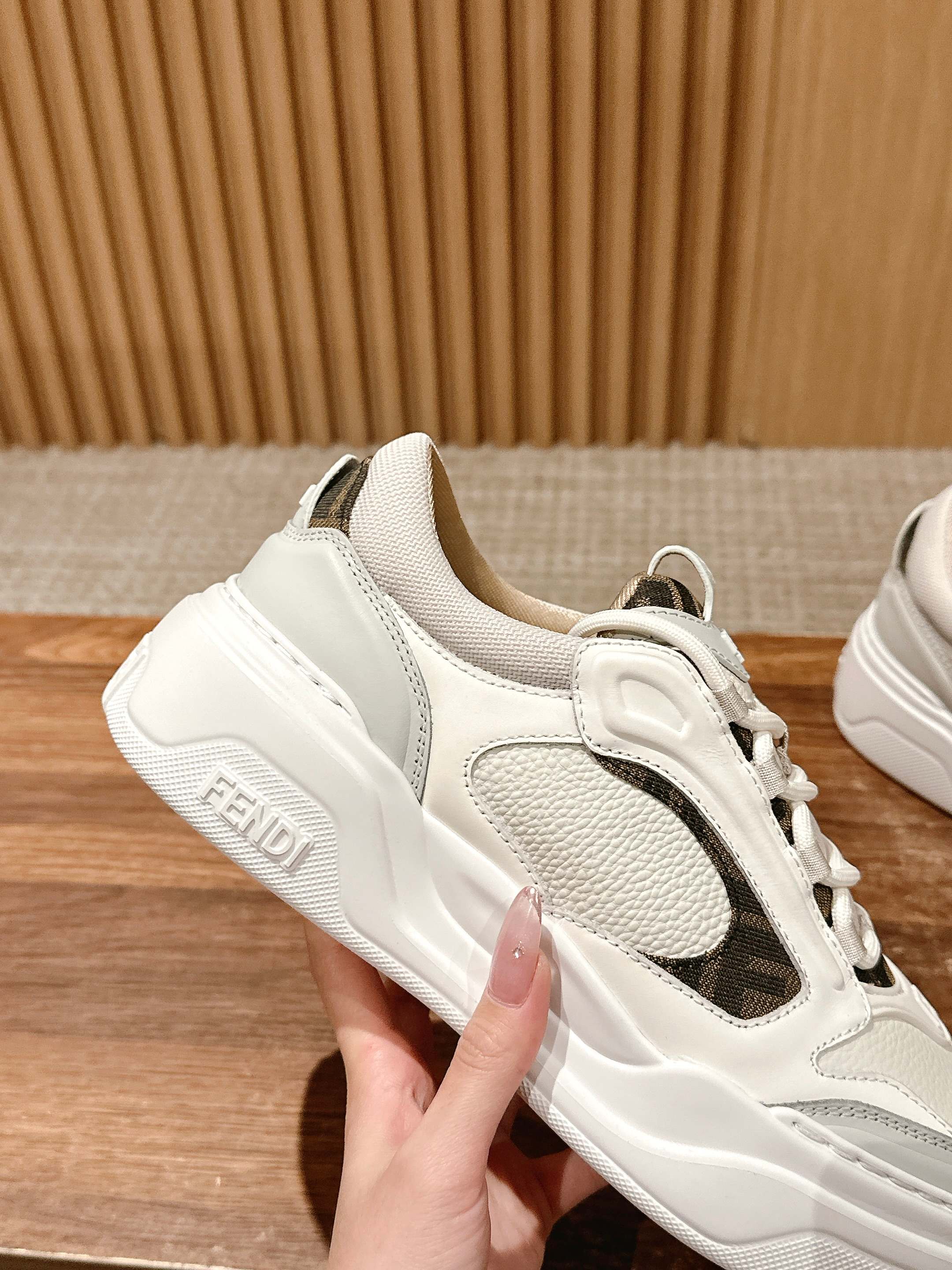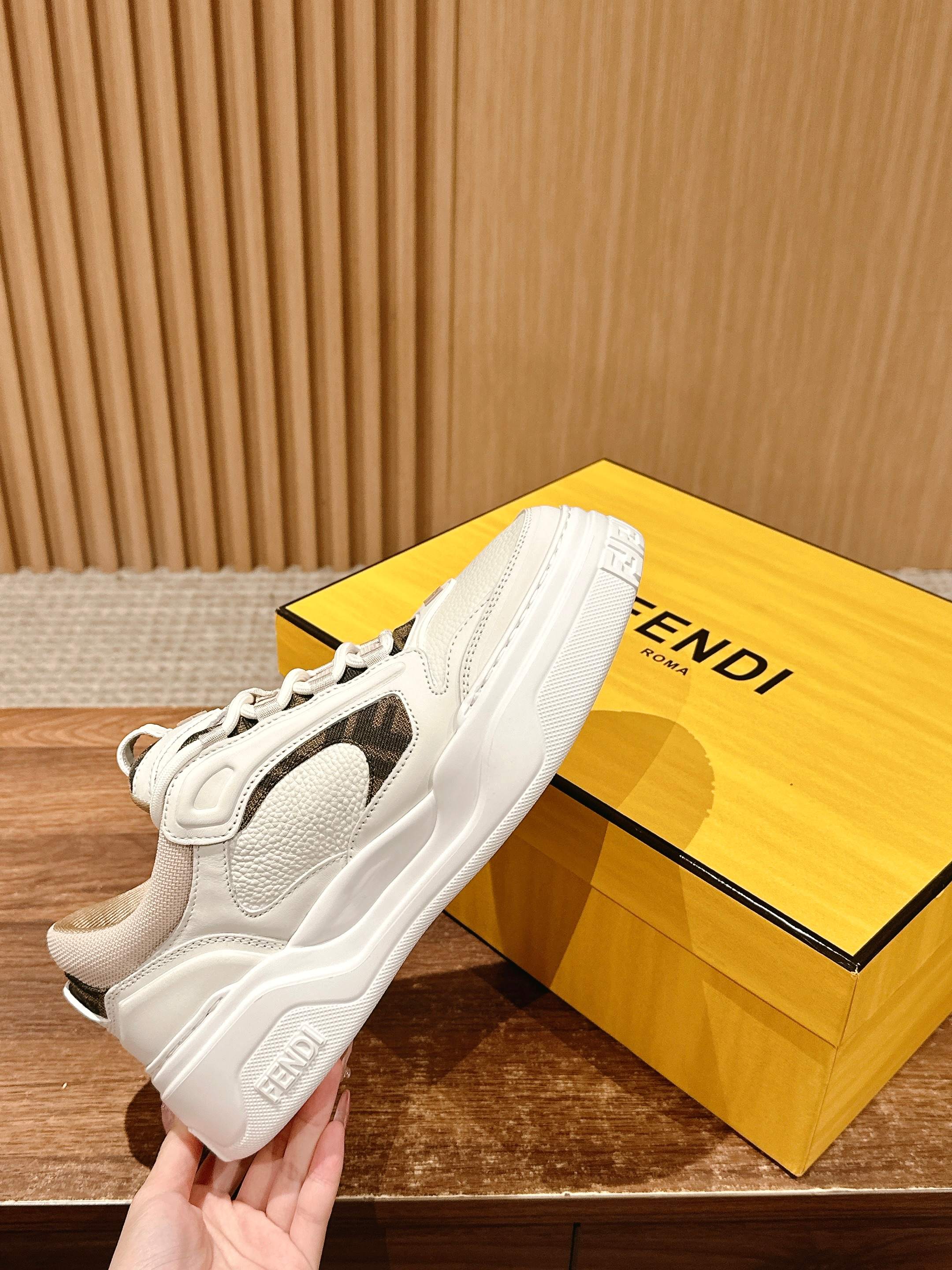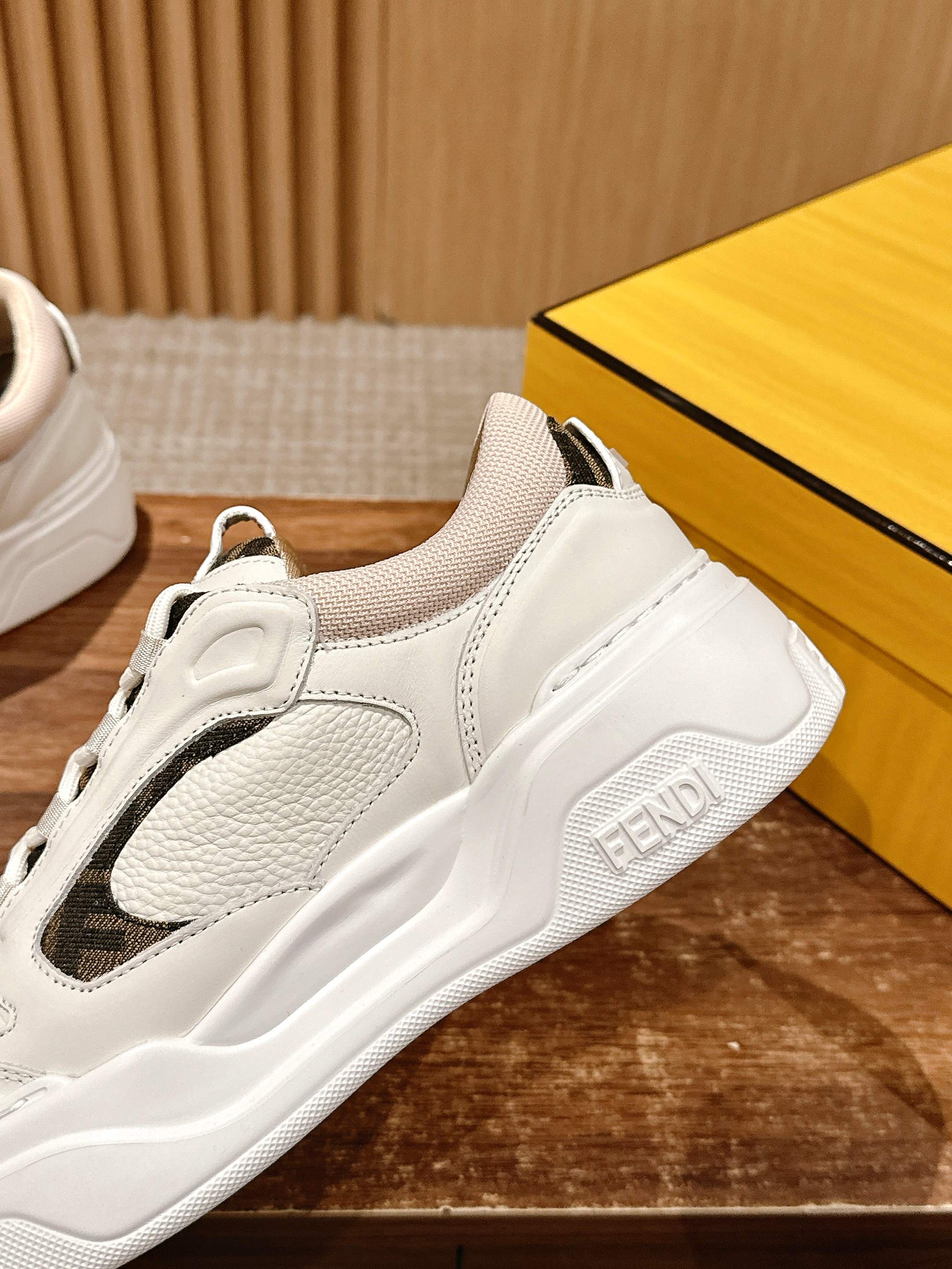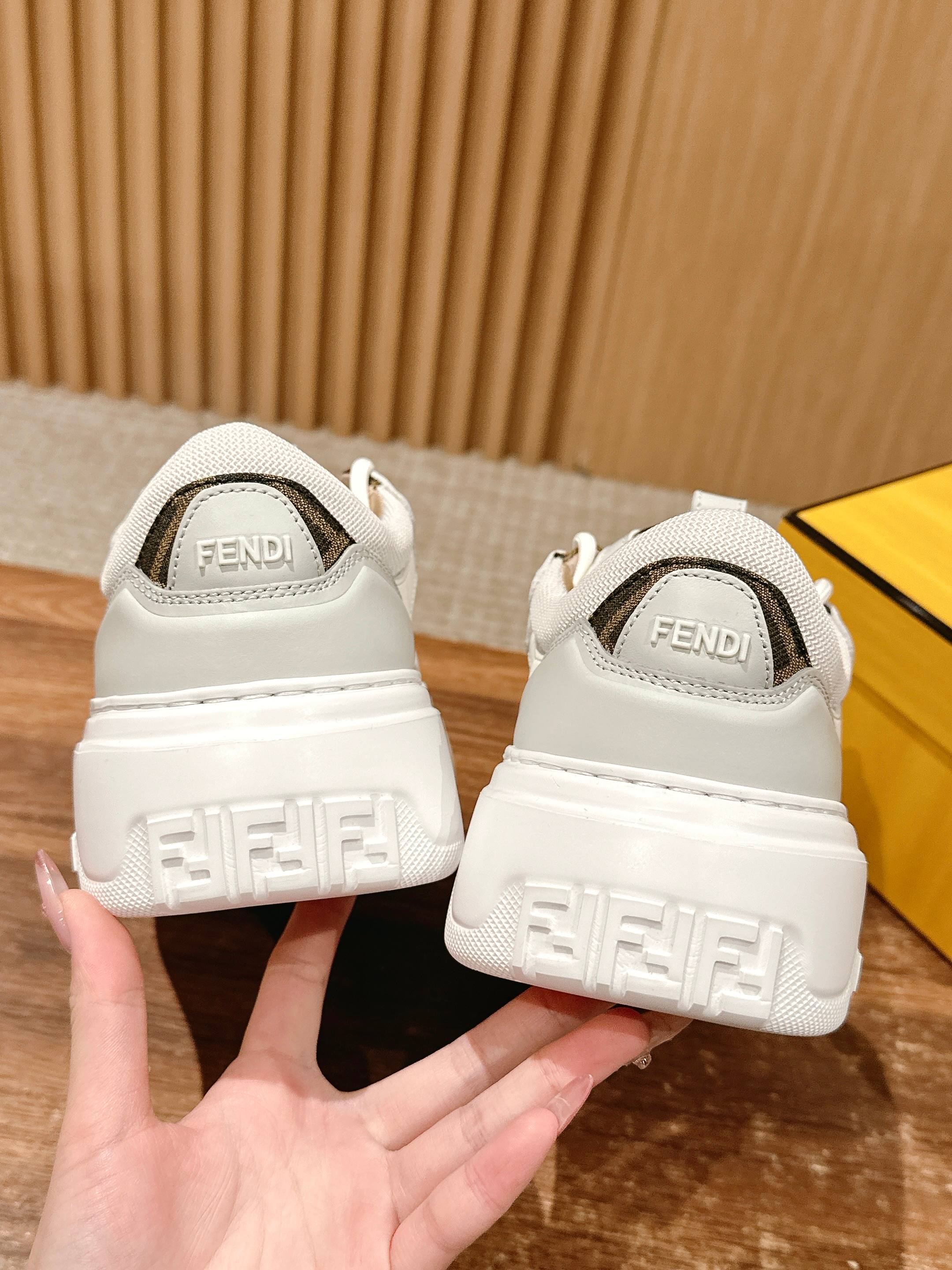 鞋面为白色全粒面光滑皮革材质,也增添了鞋子的奢华品质,尽显Fendi材质大师的风格