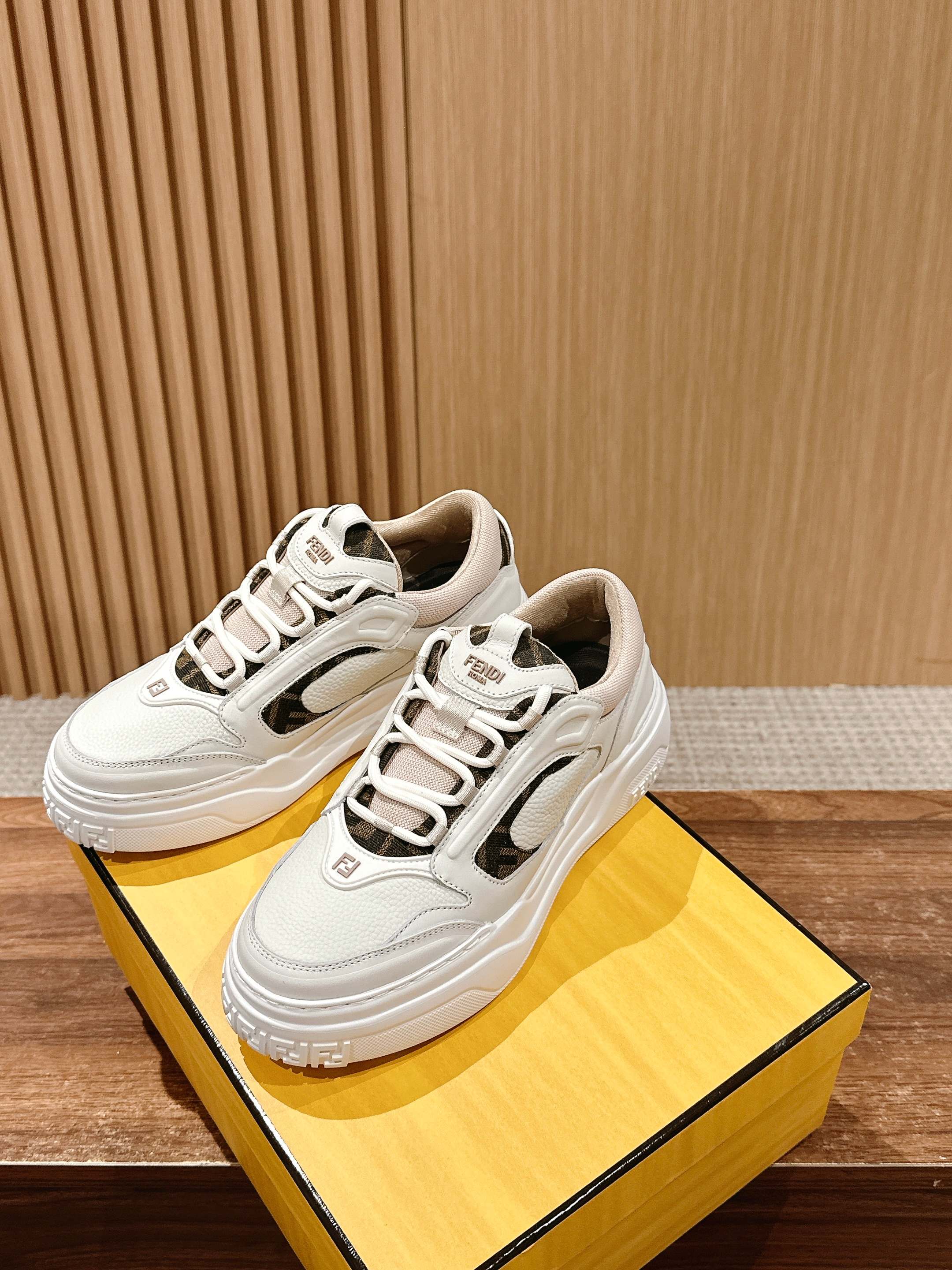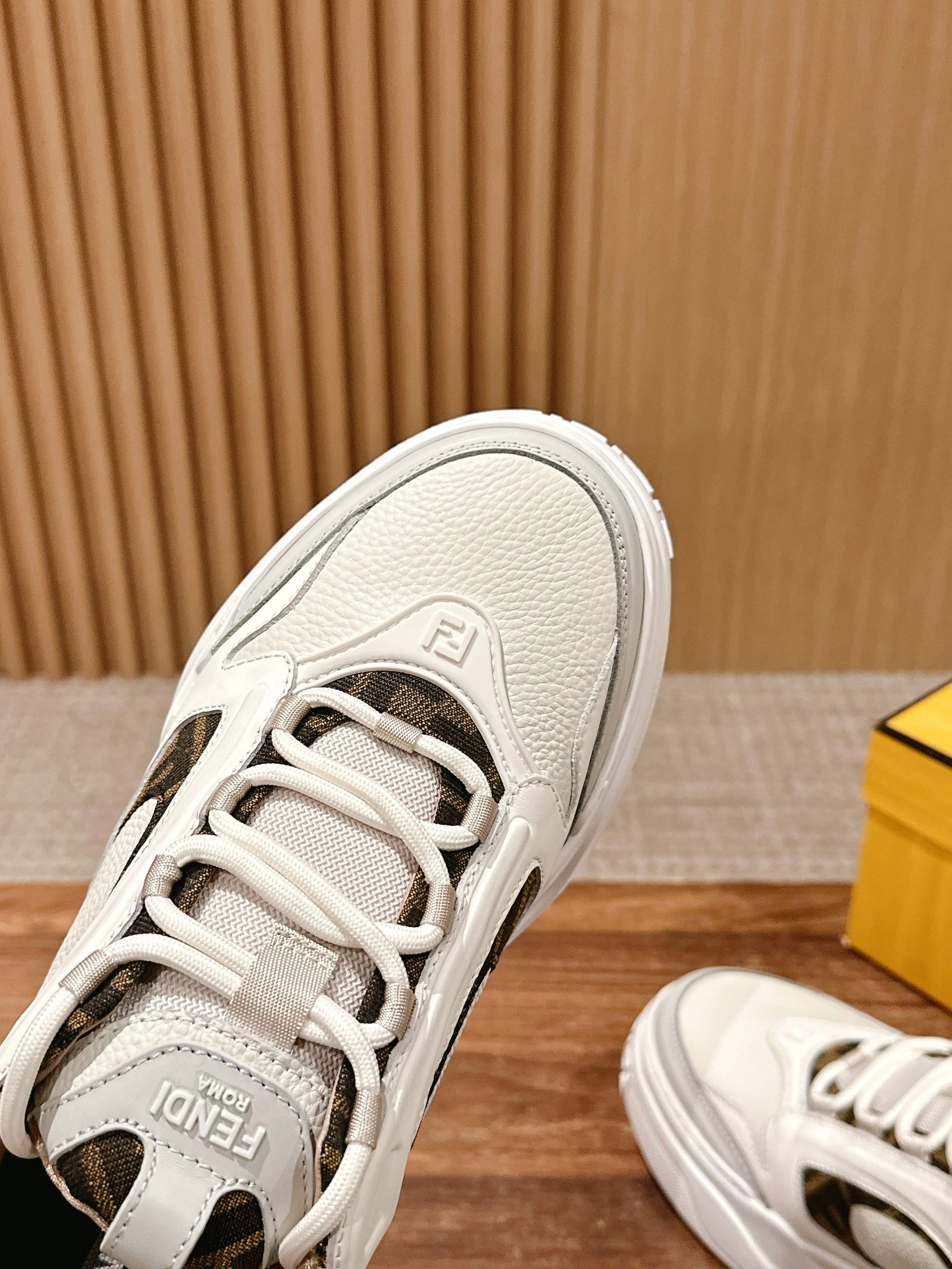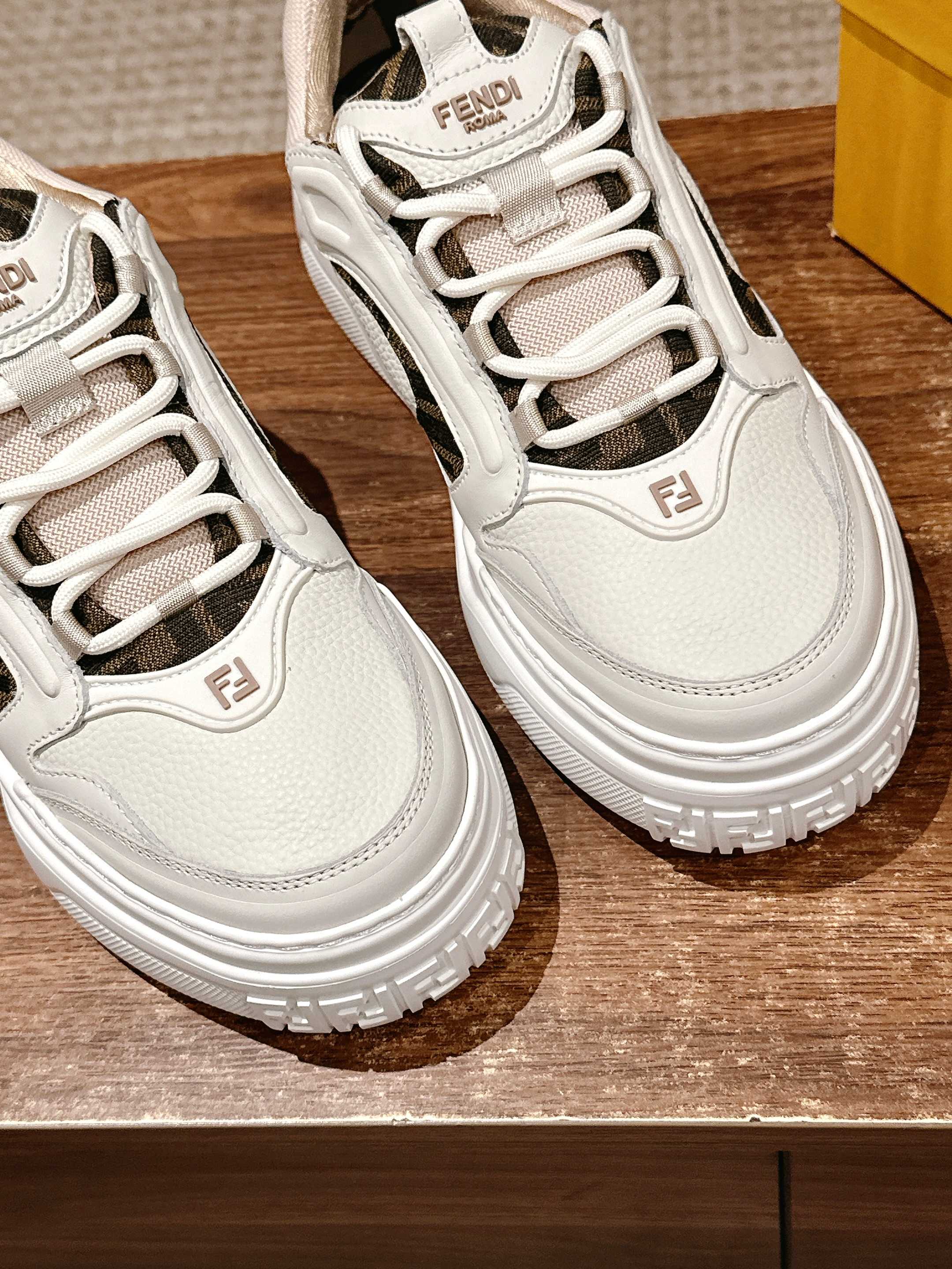 鞋面为白色全粒面光滑皮革材质,也增添了鞋子的奢华品质,尽显Fendi材质大师的风格