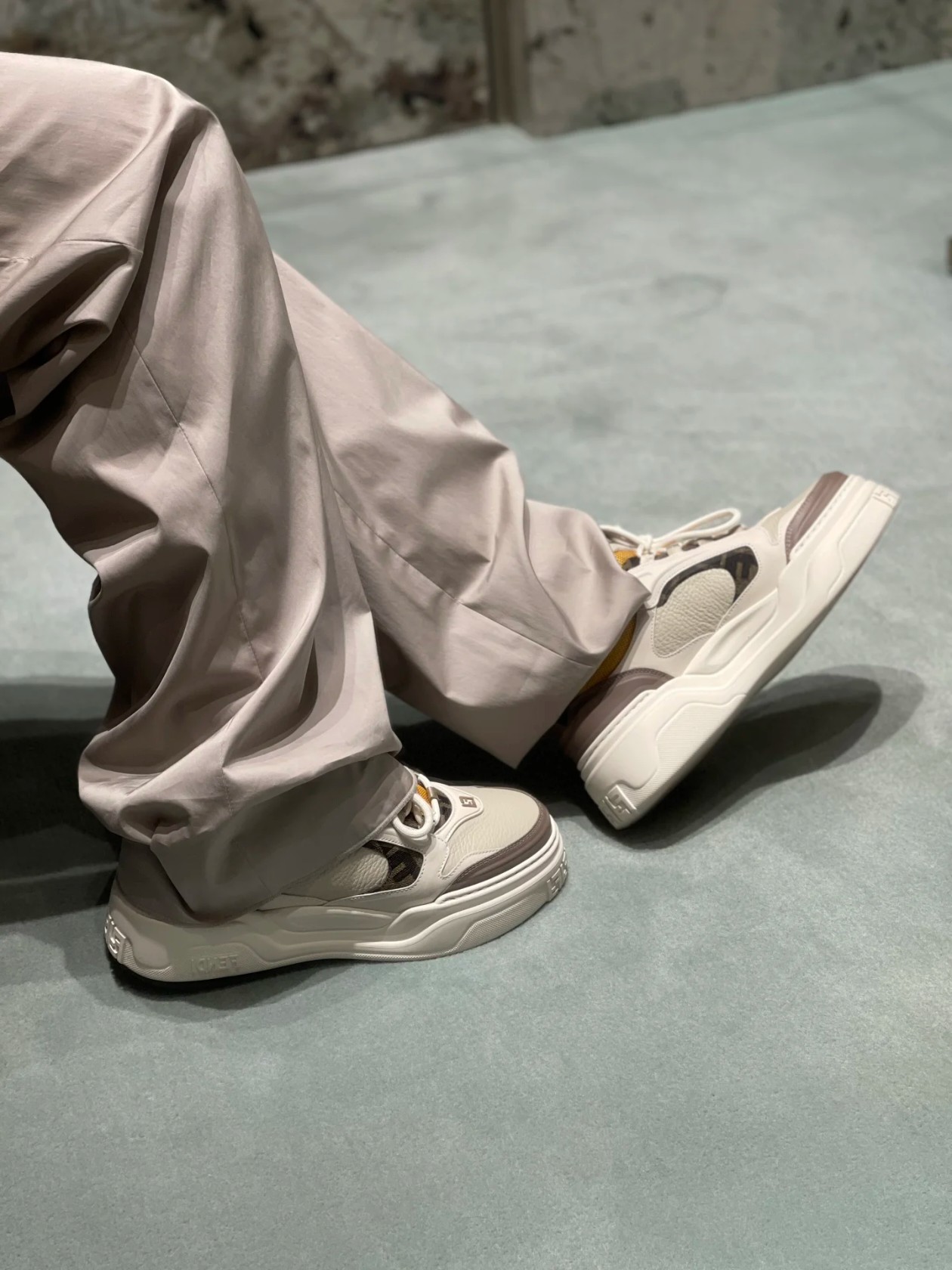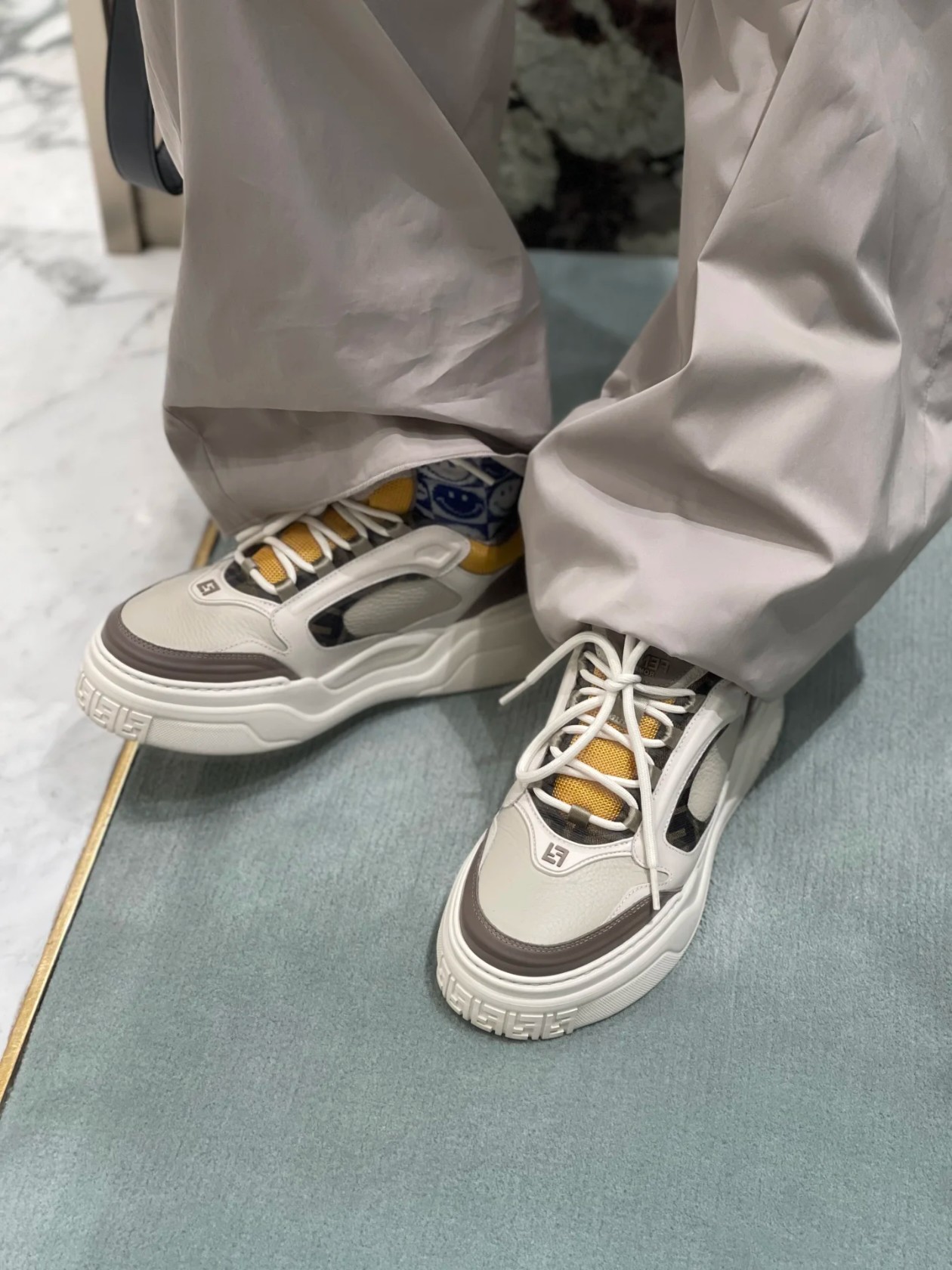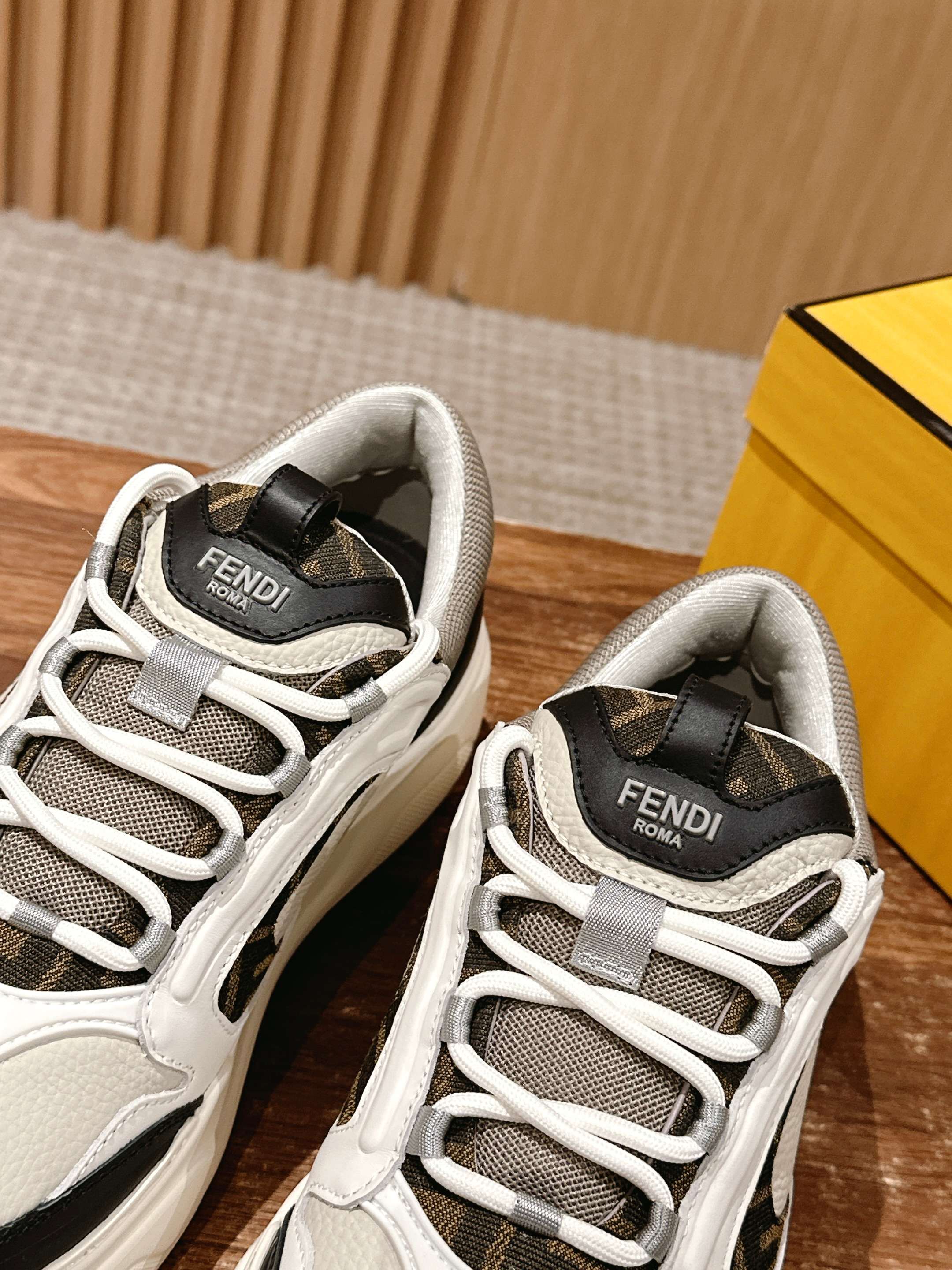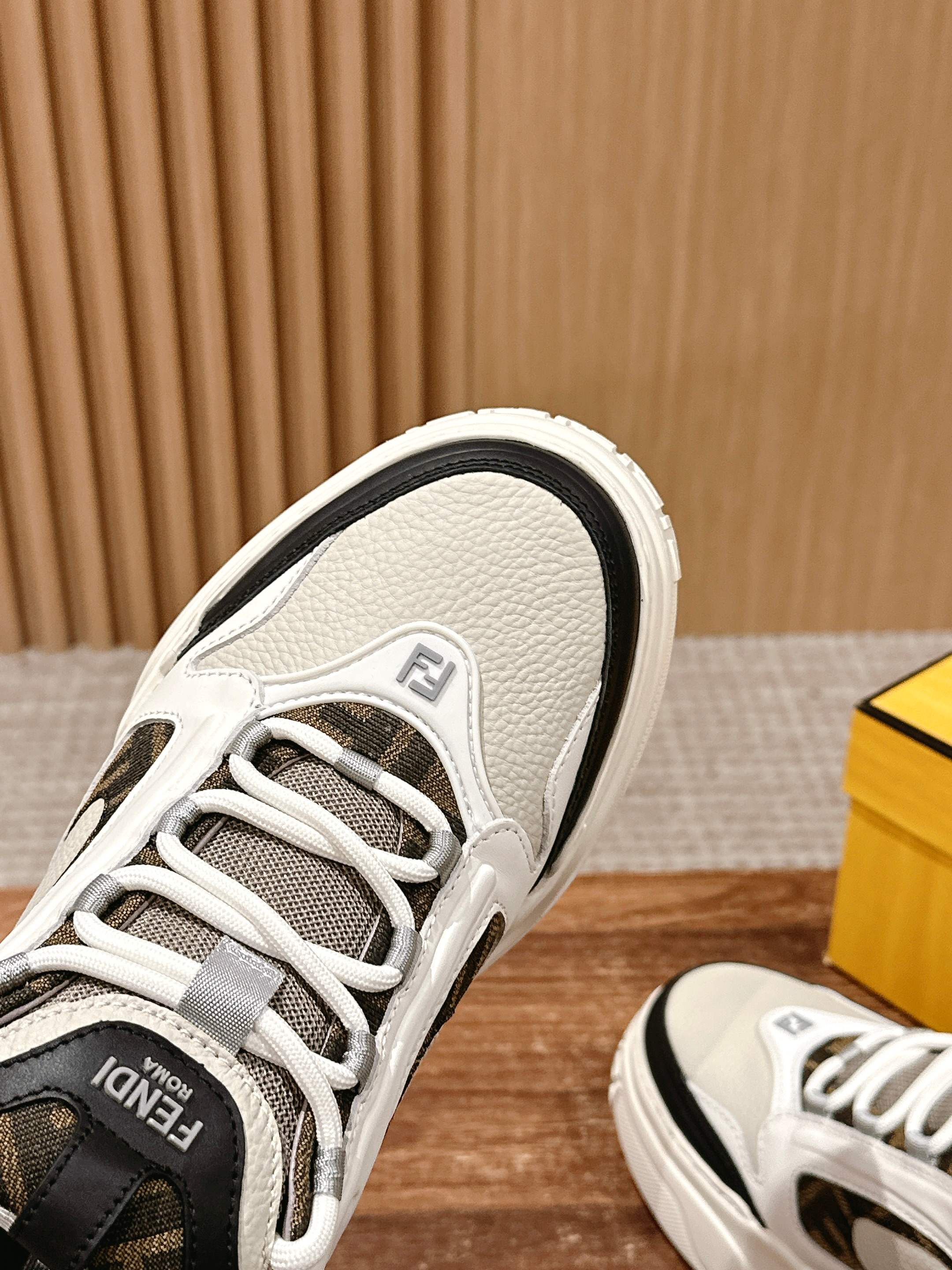 鞋面为白色全粒面光滑皮革材质,也增添了鞋子的奢华品质,尽显Fendi材质大师的风格