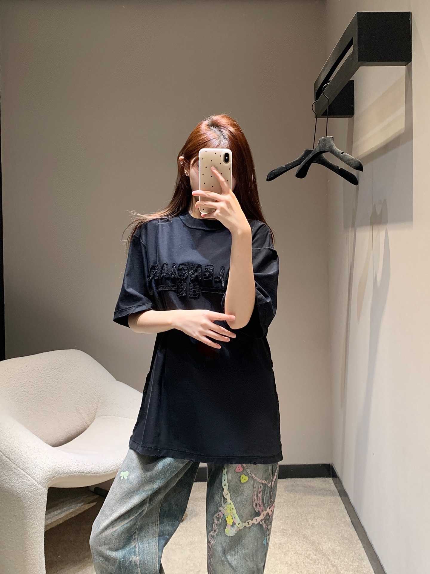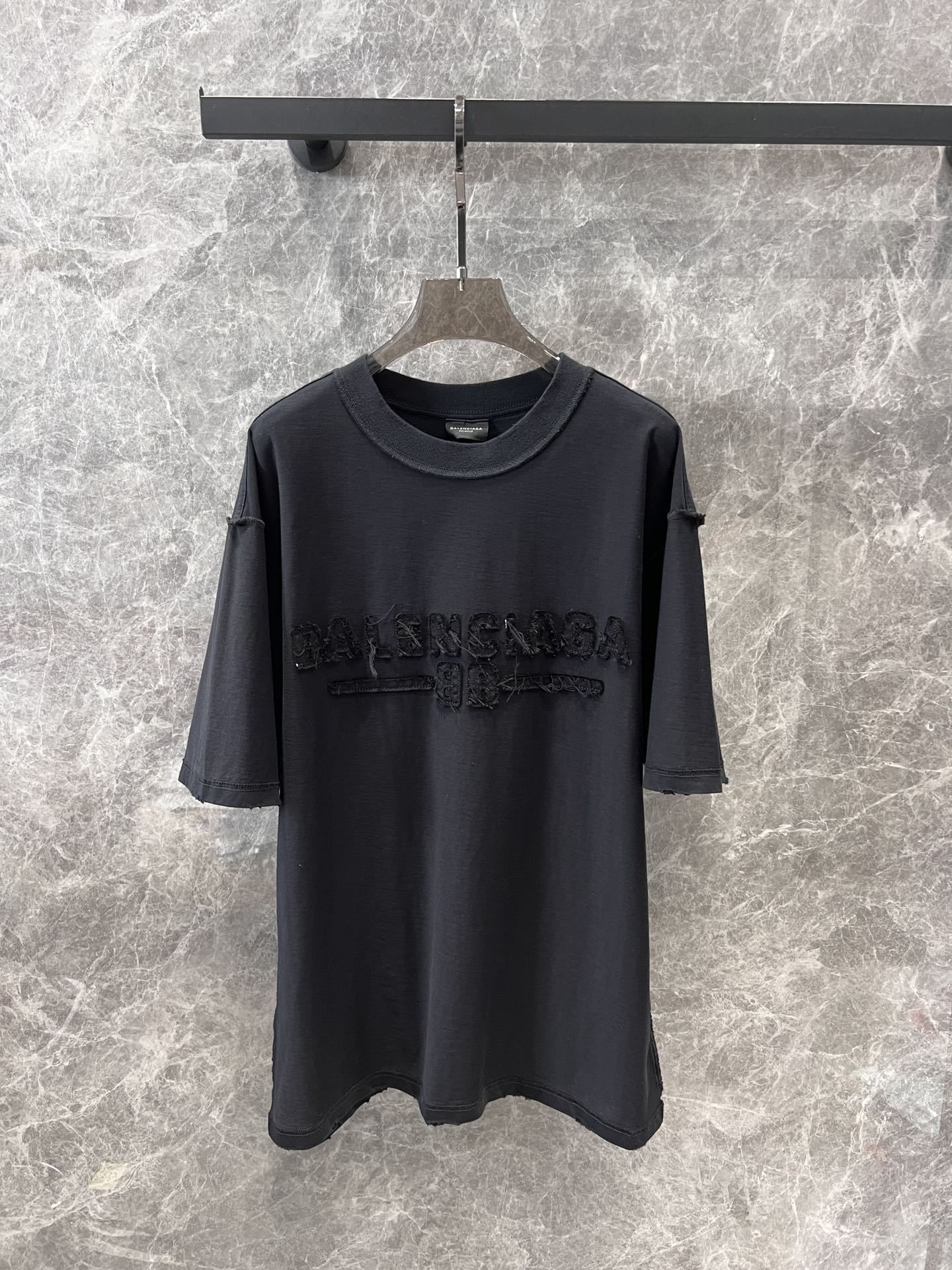 Balenciag* 25Ss春夏新款 重工炒色做旧字母T恤独家yb开发!高版出品!
