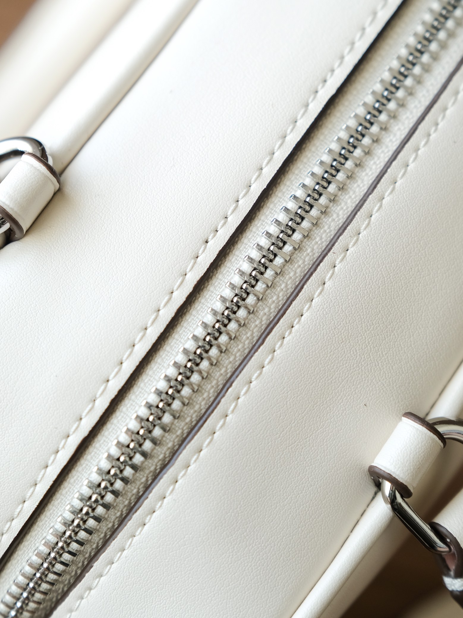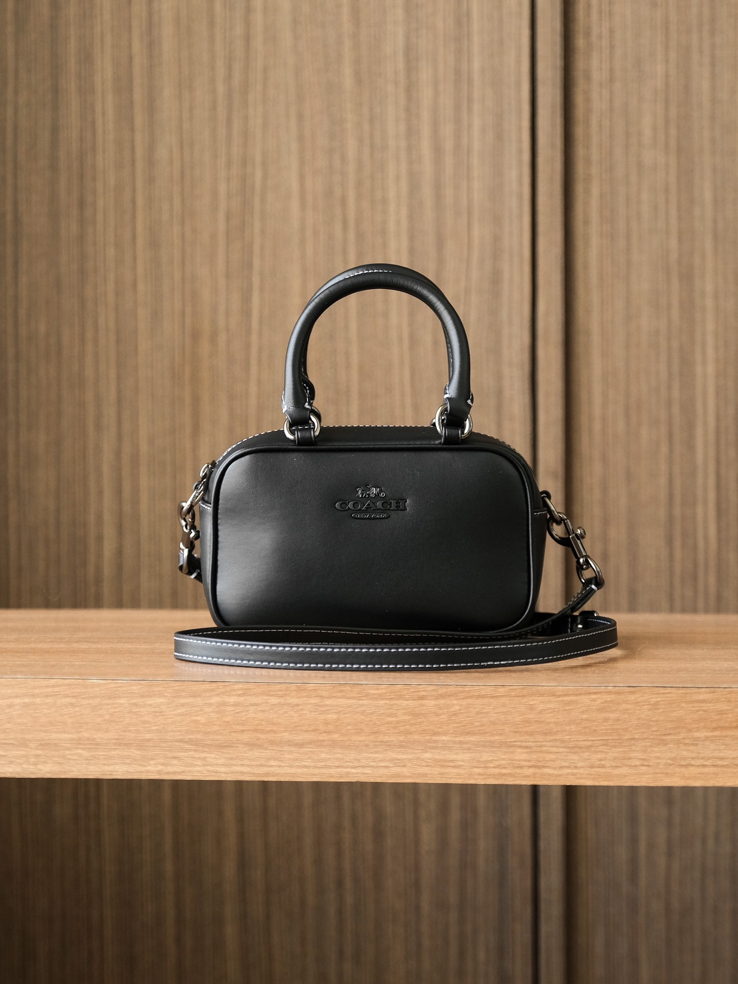 它配有可调节的斜挎肩带和皮革包裹的顶部手柄