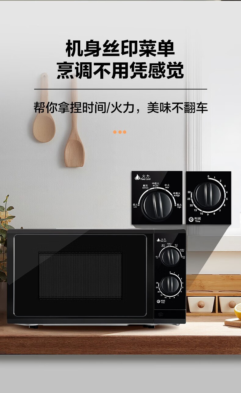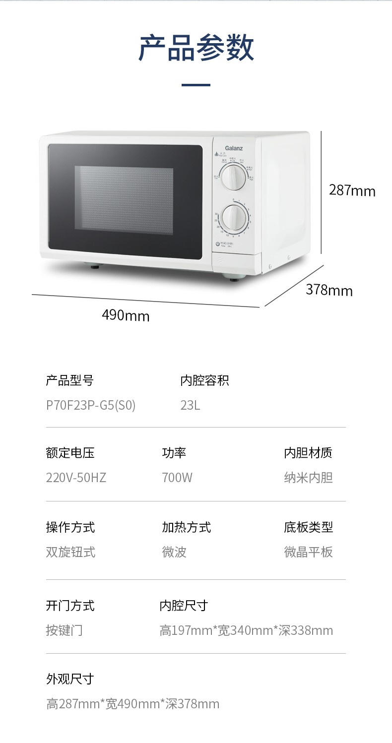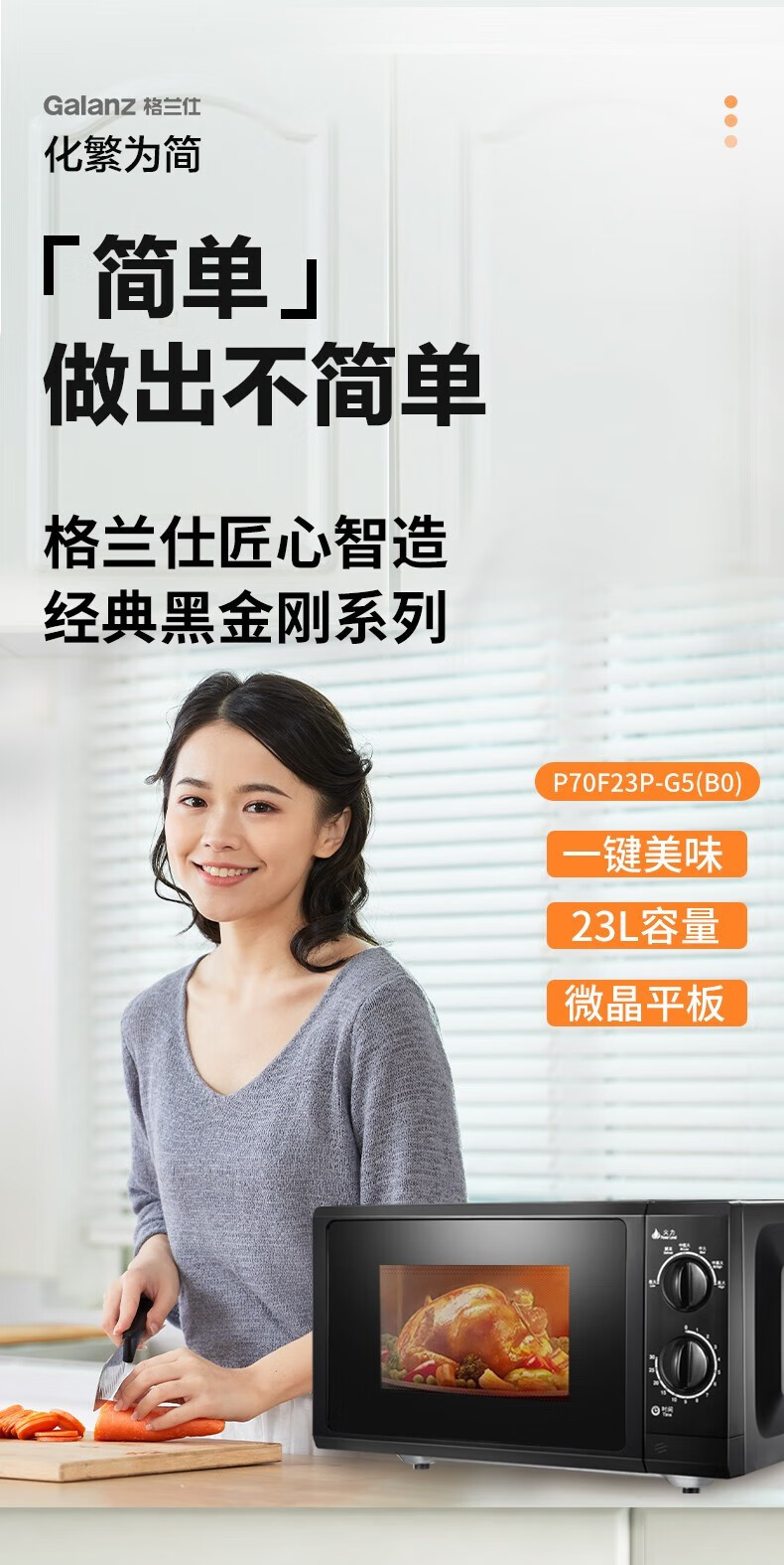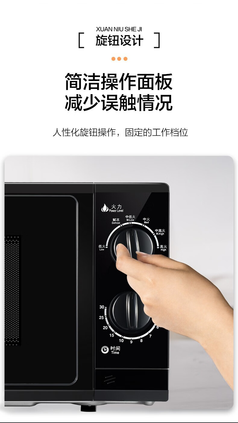 格兰仕(Galanz)微波炉 旋钮式家用 机械升级平板 快速加热式23升大容量 白色基础款 23升