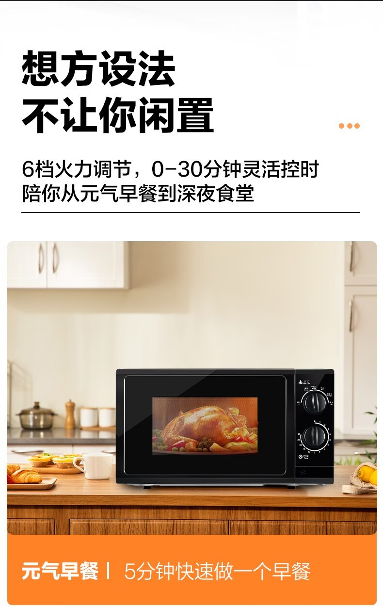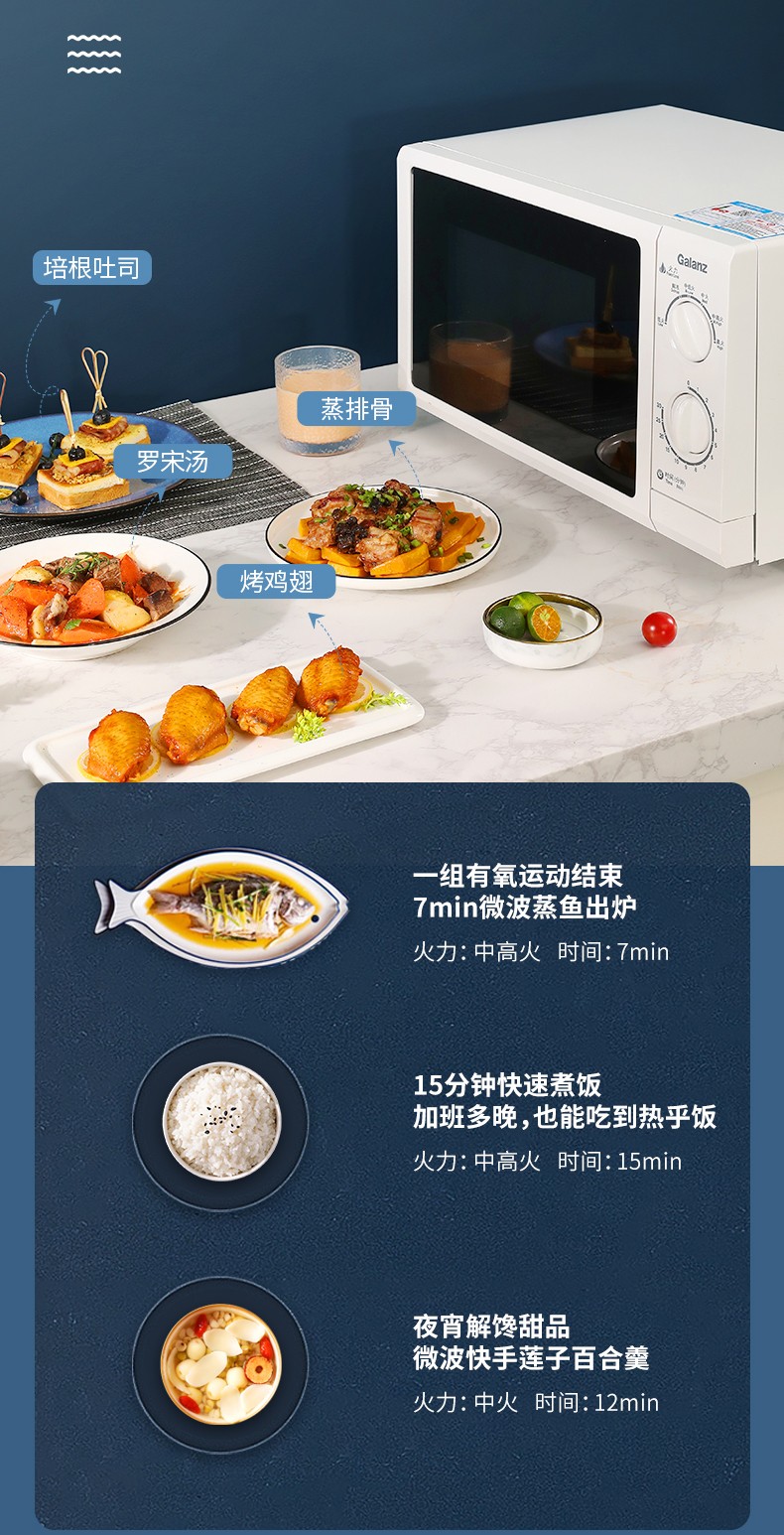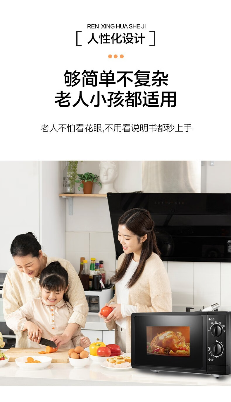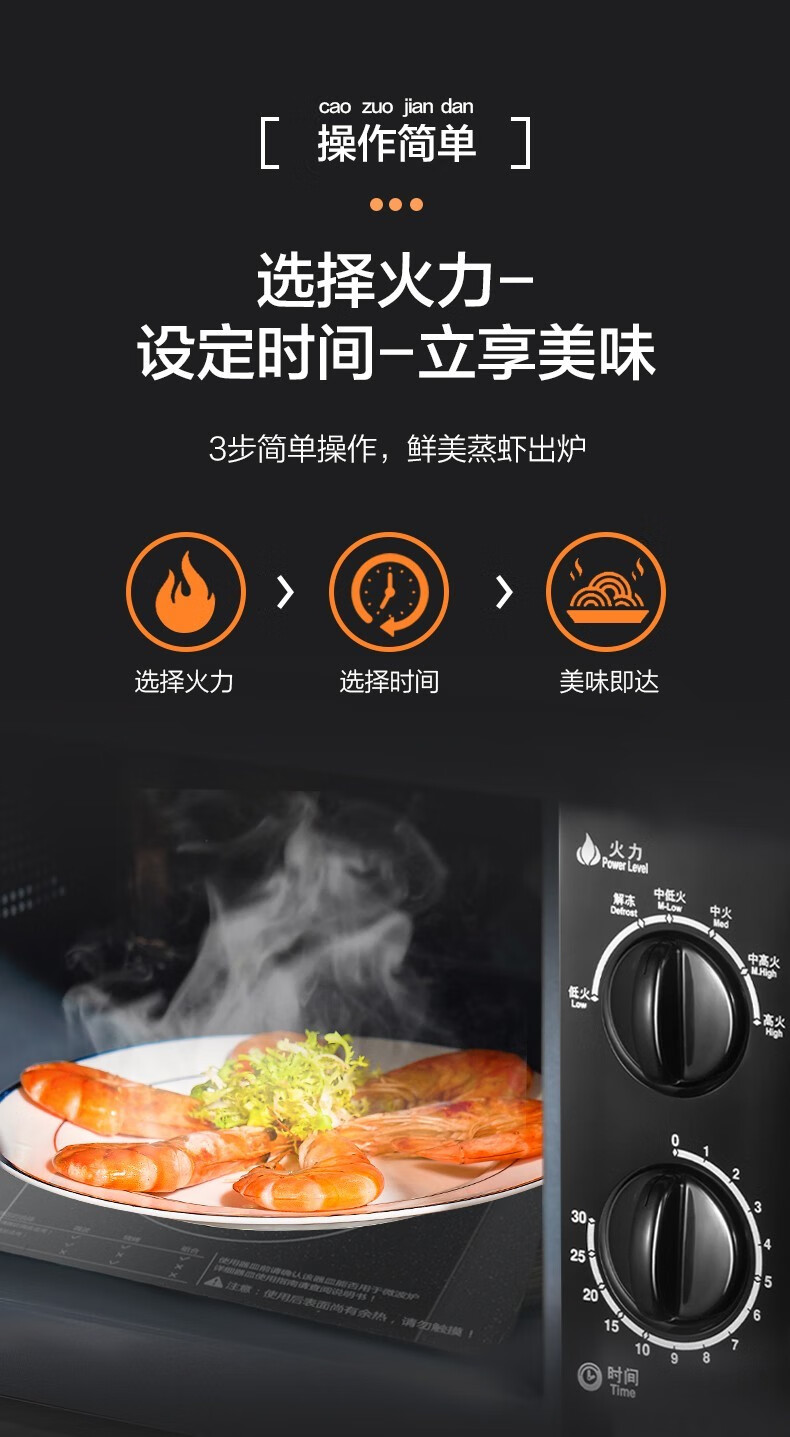 格兰仕(Galanz)微波炉 旋钮式家用 机械升级平板 快速加热式23升大容量 白色基础款 23升