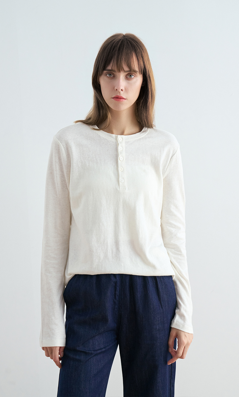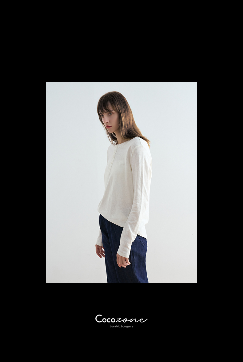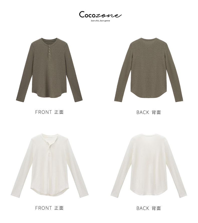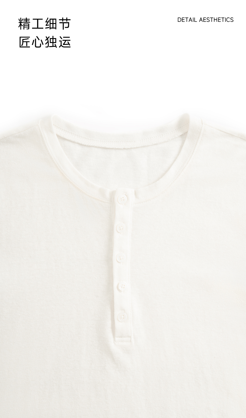 刘一一&COCO ZONE圆领半门襟五粒扣打底衫圆摆设计T恤24C10152