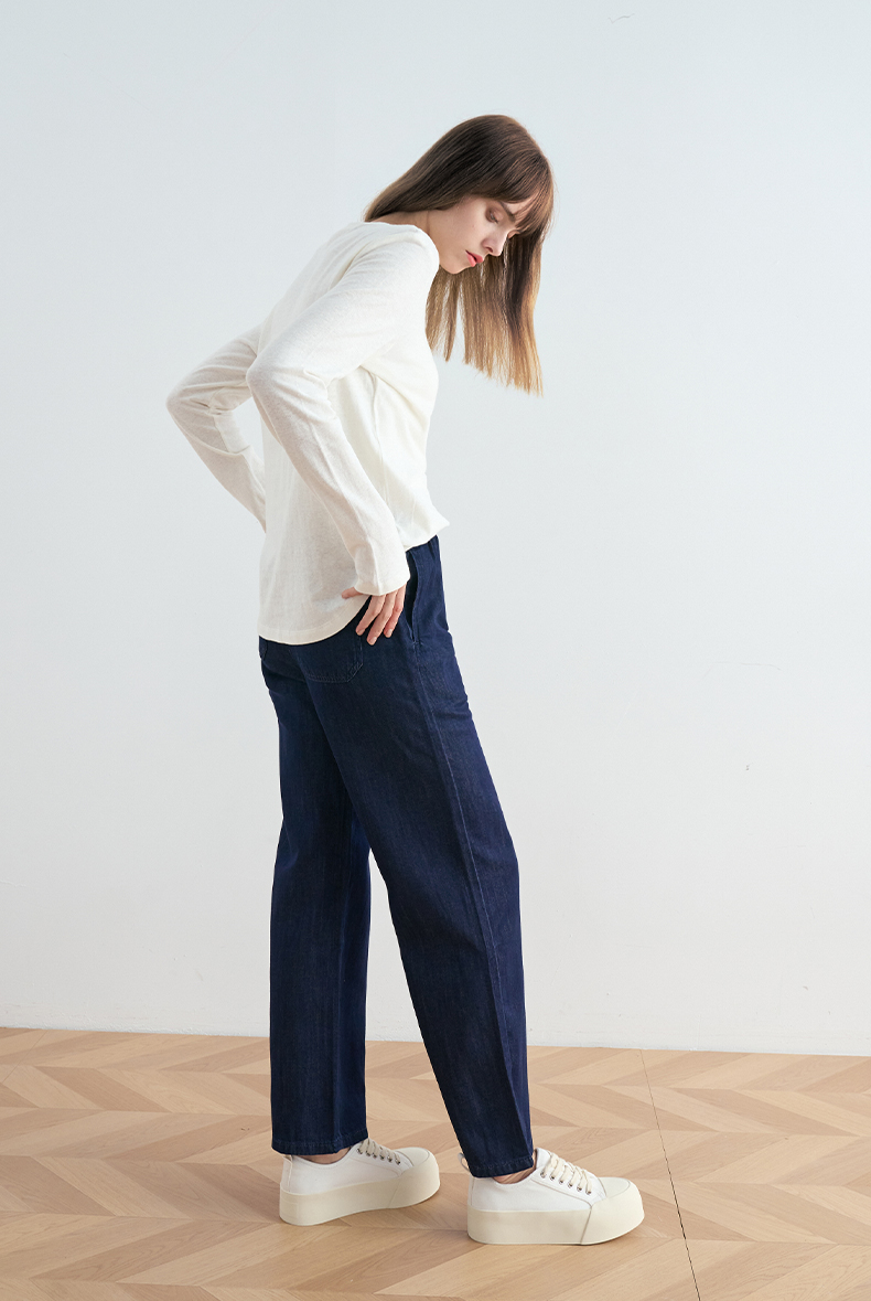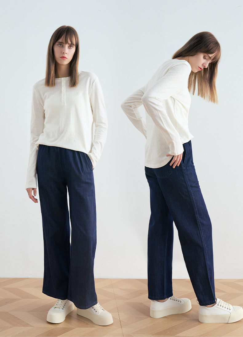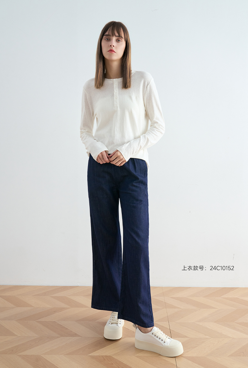 刘一一&COCO ZONE圆领半门襟五粒扣打底衫圆摆设计T恤24C10152