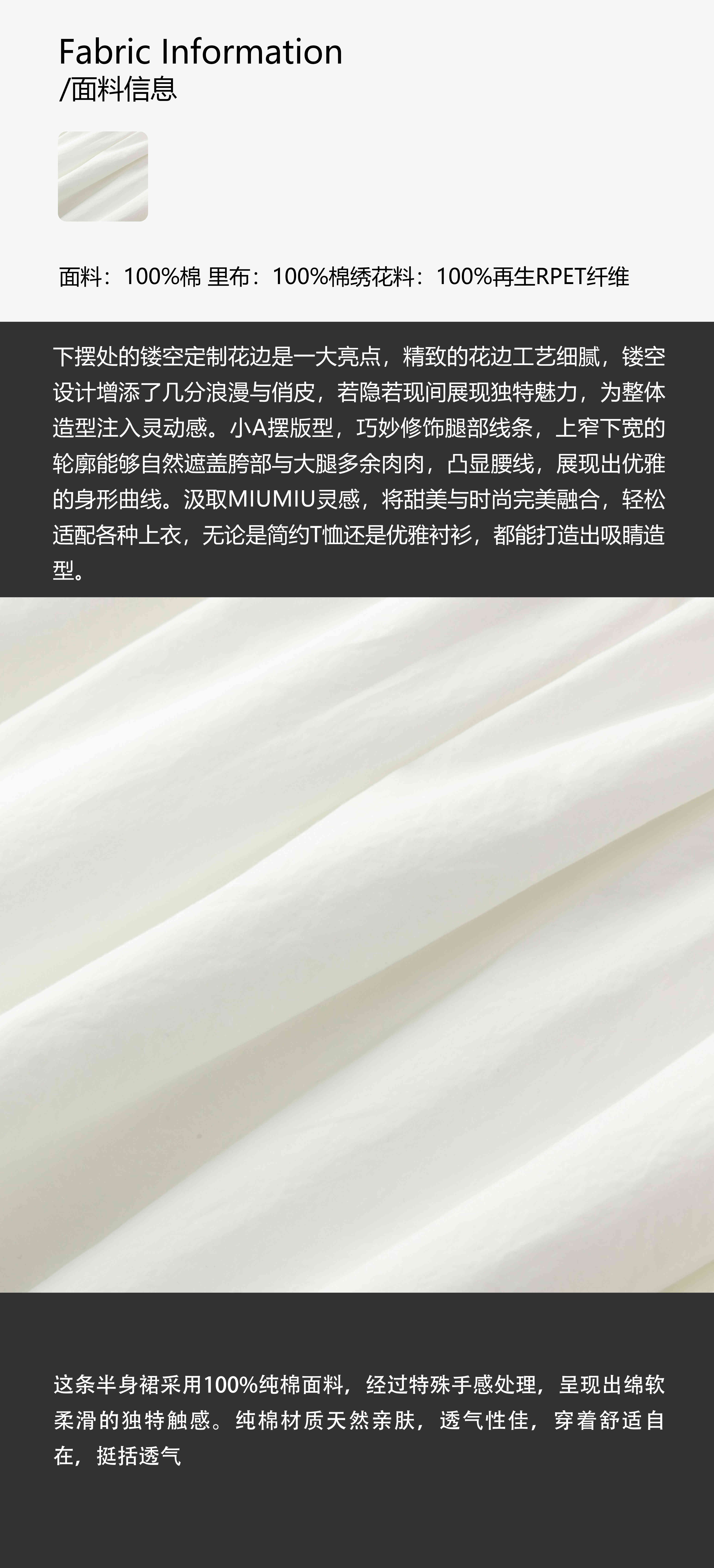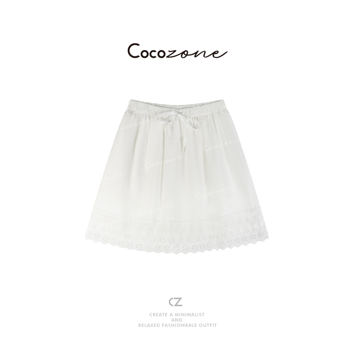 COCO ZONE 刘一一 100棉法式蕾丝镂空花边A字半身裙CD2A0112