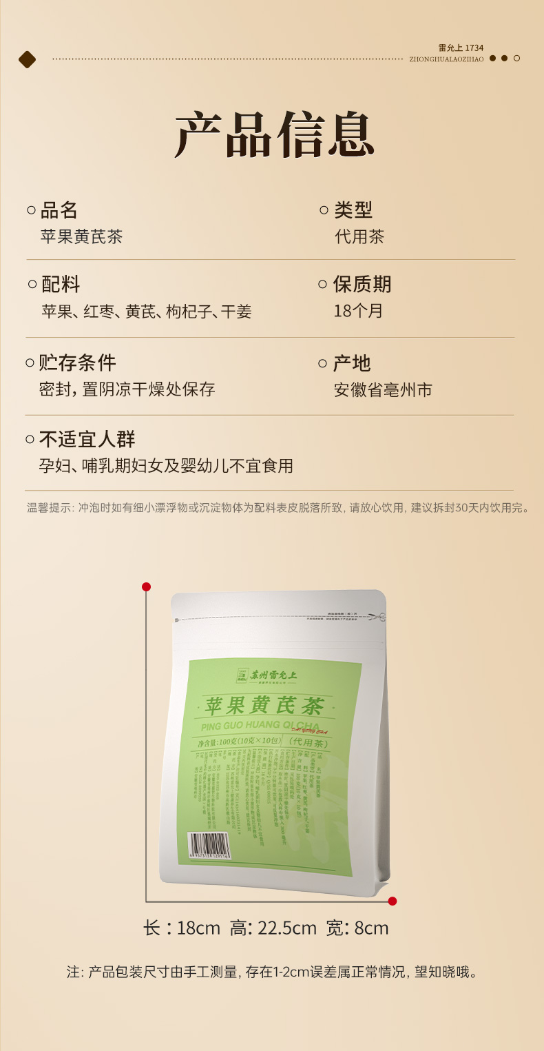 雷允上苹果黄芪茶100g(10g*10包)/袋