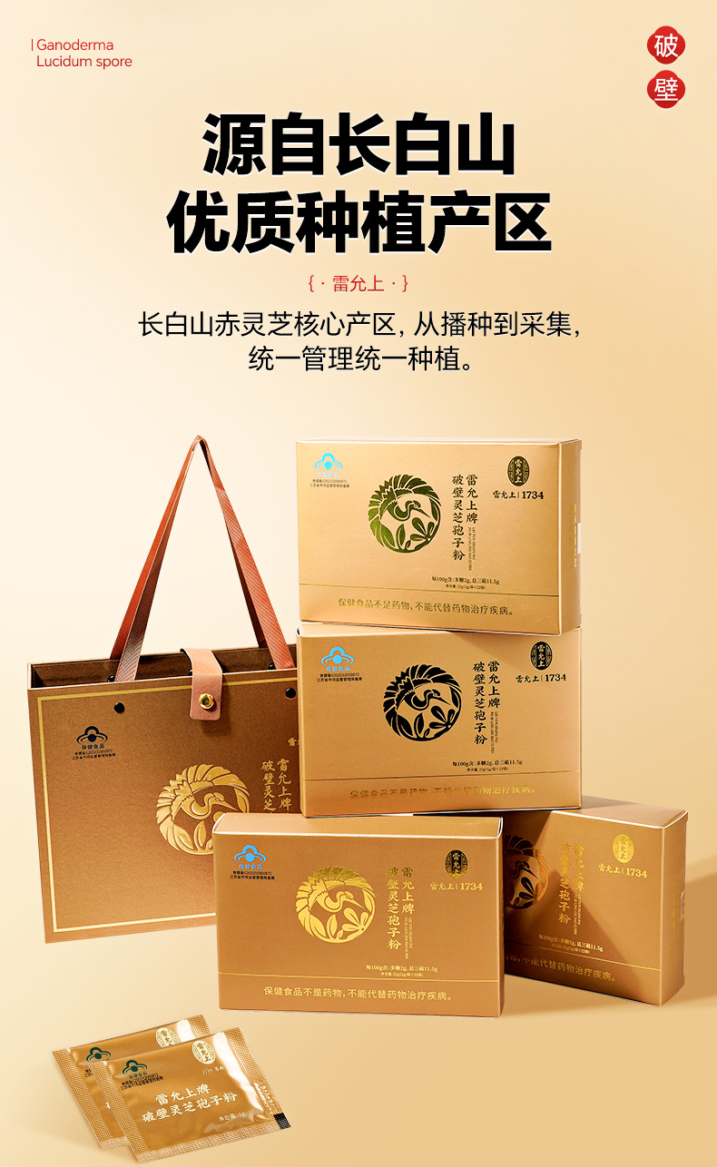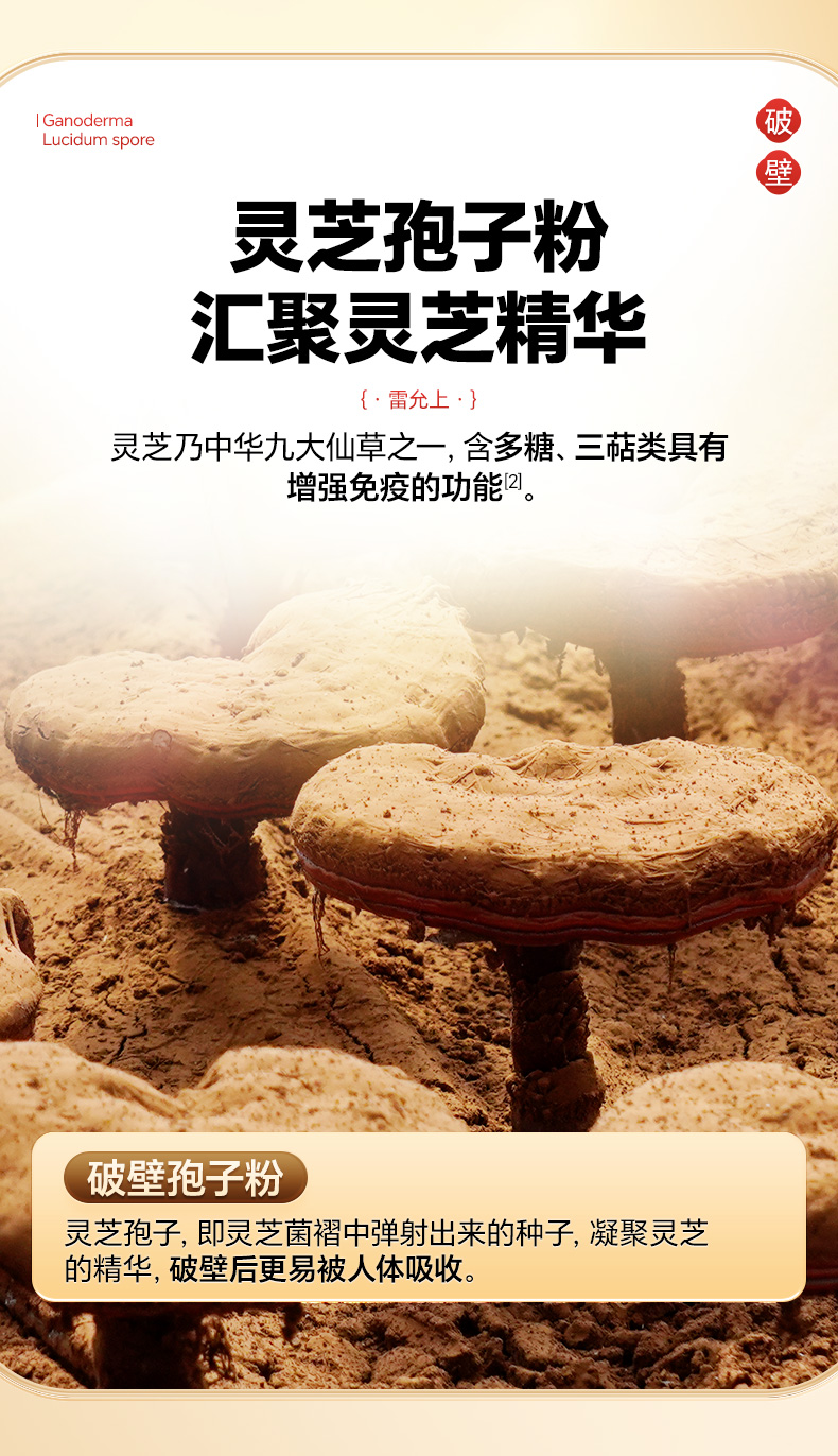 雷允上破壁灵芝孢子粉胶囊42g(350mg*30粒/瓶*4瓶)/盒