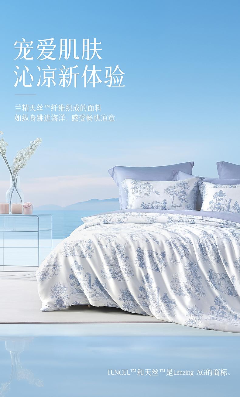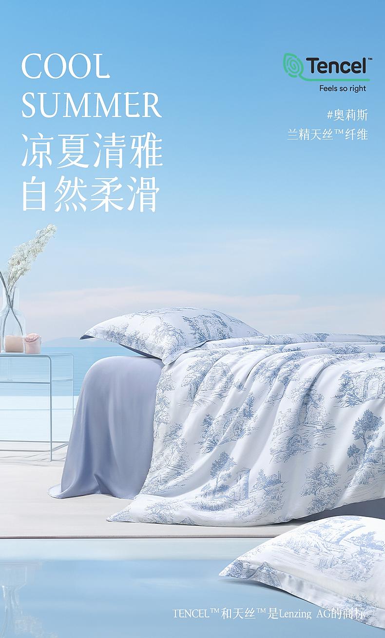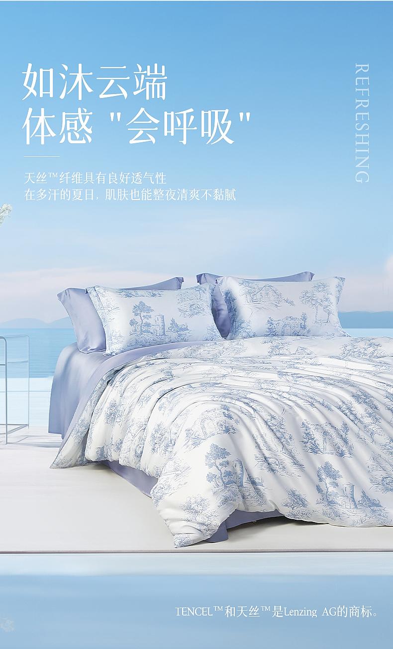 【60s兰精天丝™纤维套件】百丽丝家纺奥莉斯四件套顺滑透气印花薄款