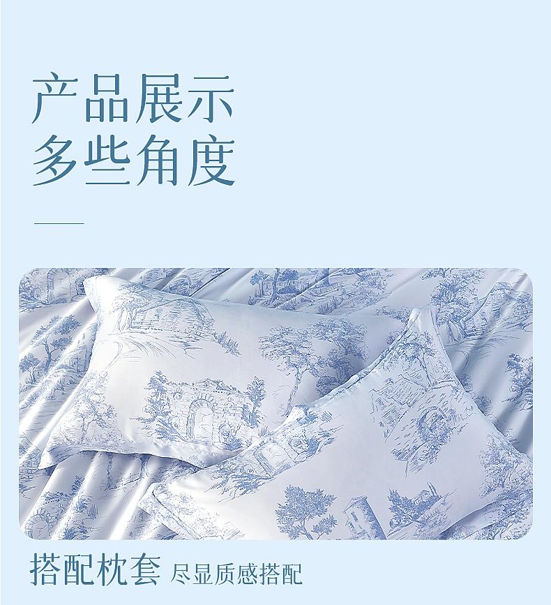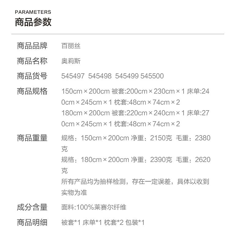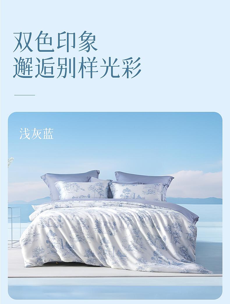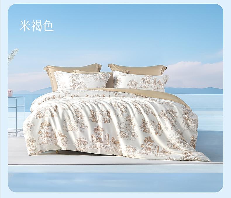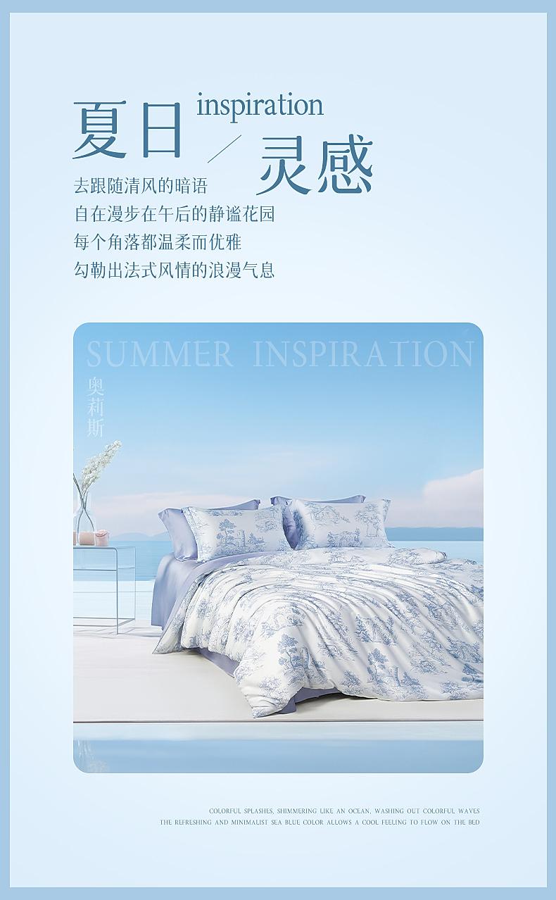 【60s兰精天丝™纤维套件】百丽丝家纺奥莉斯四件套顺滑透气印花薄款