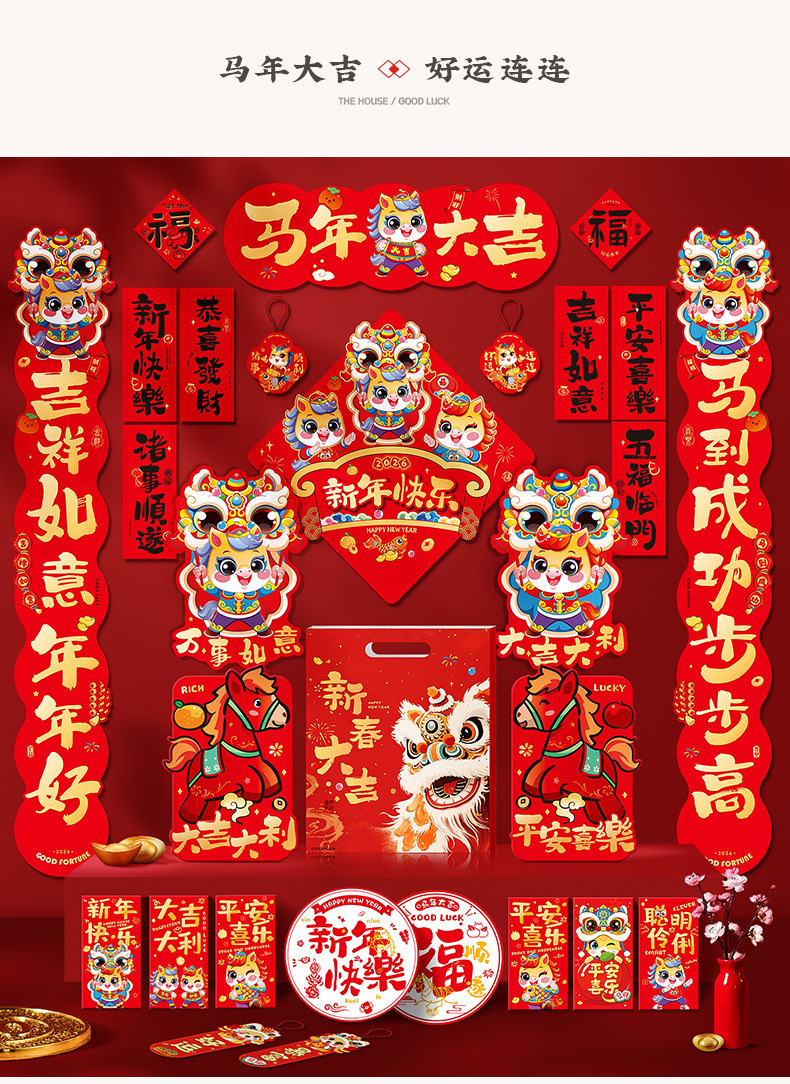 【19.9元22件套】对联春联2026马年对联大礼包 新年元旦福字贴过年装饰 大门布置新年对联套装
