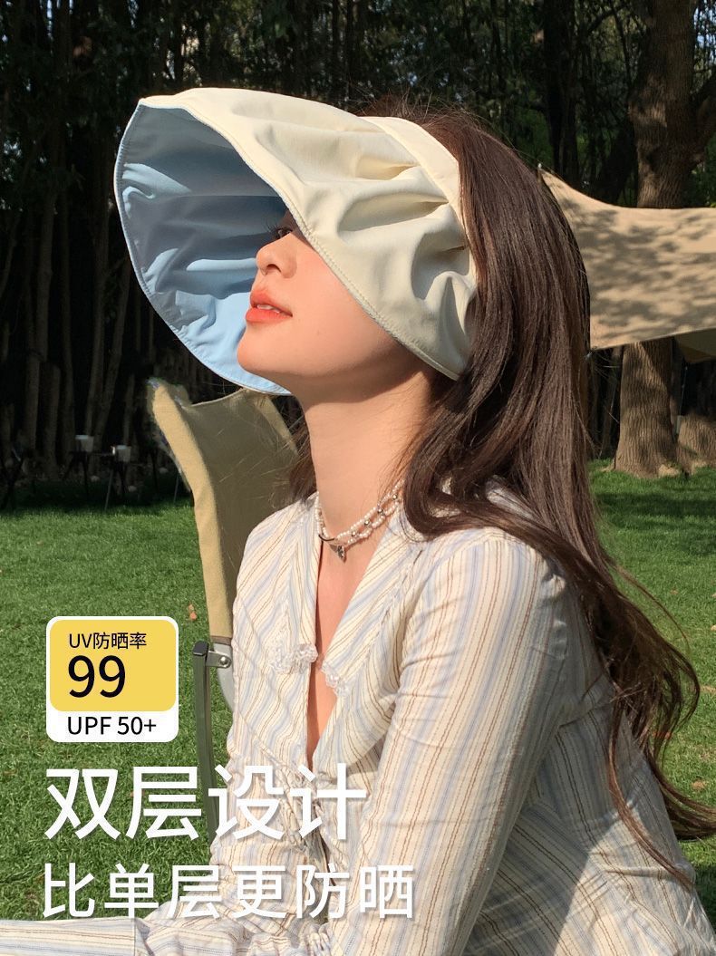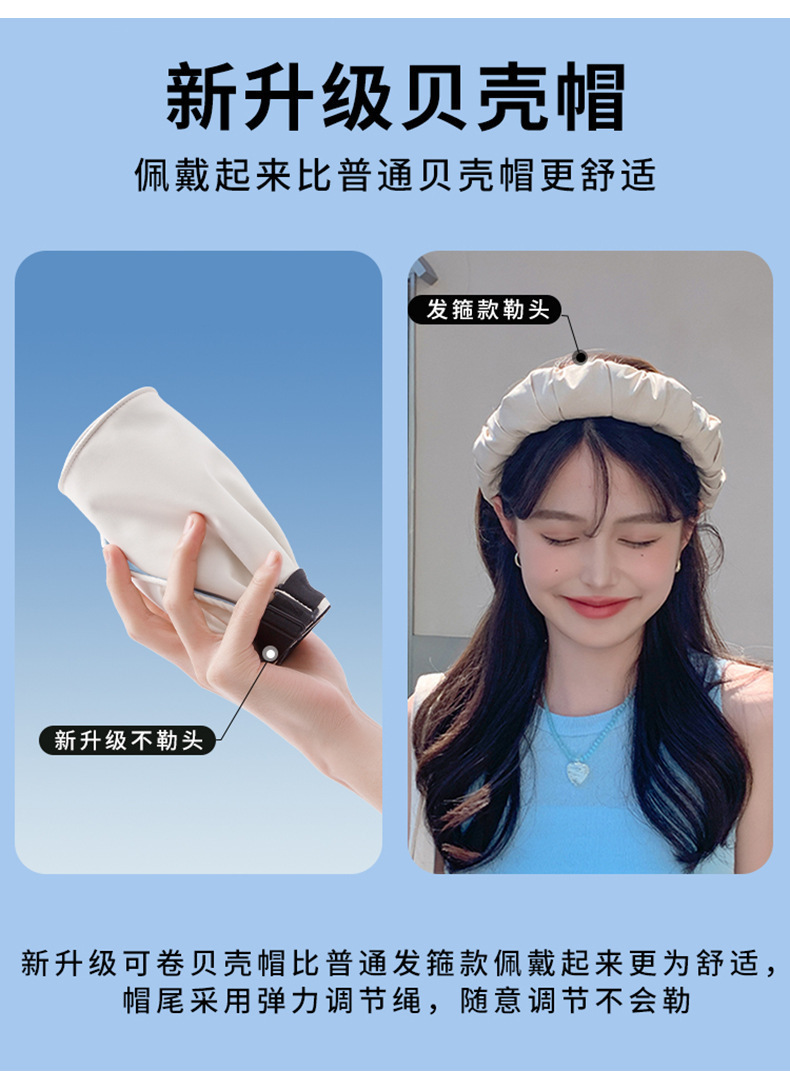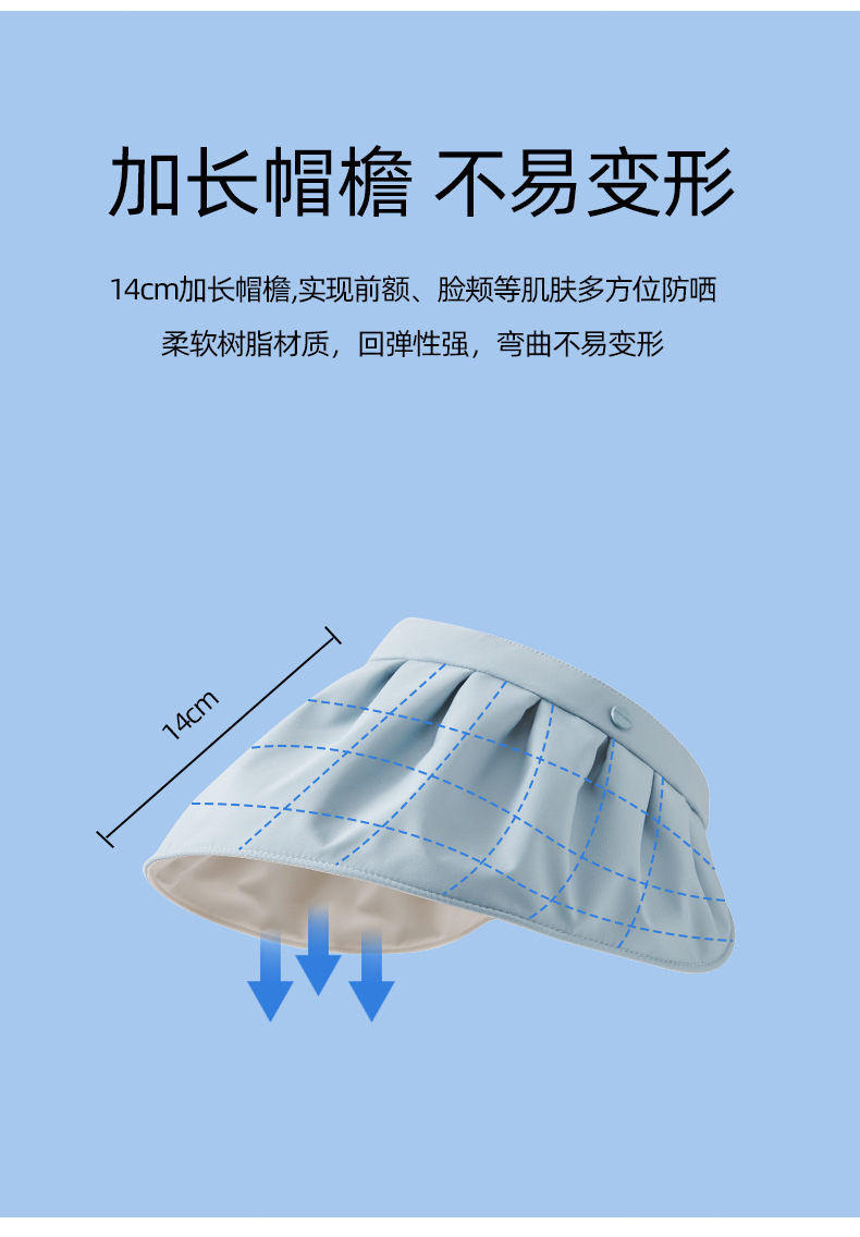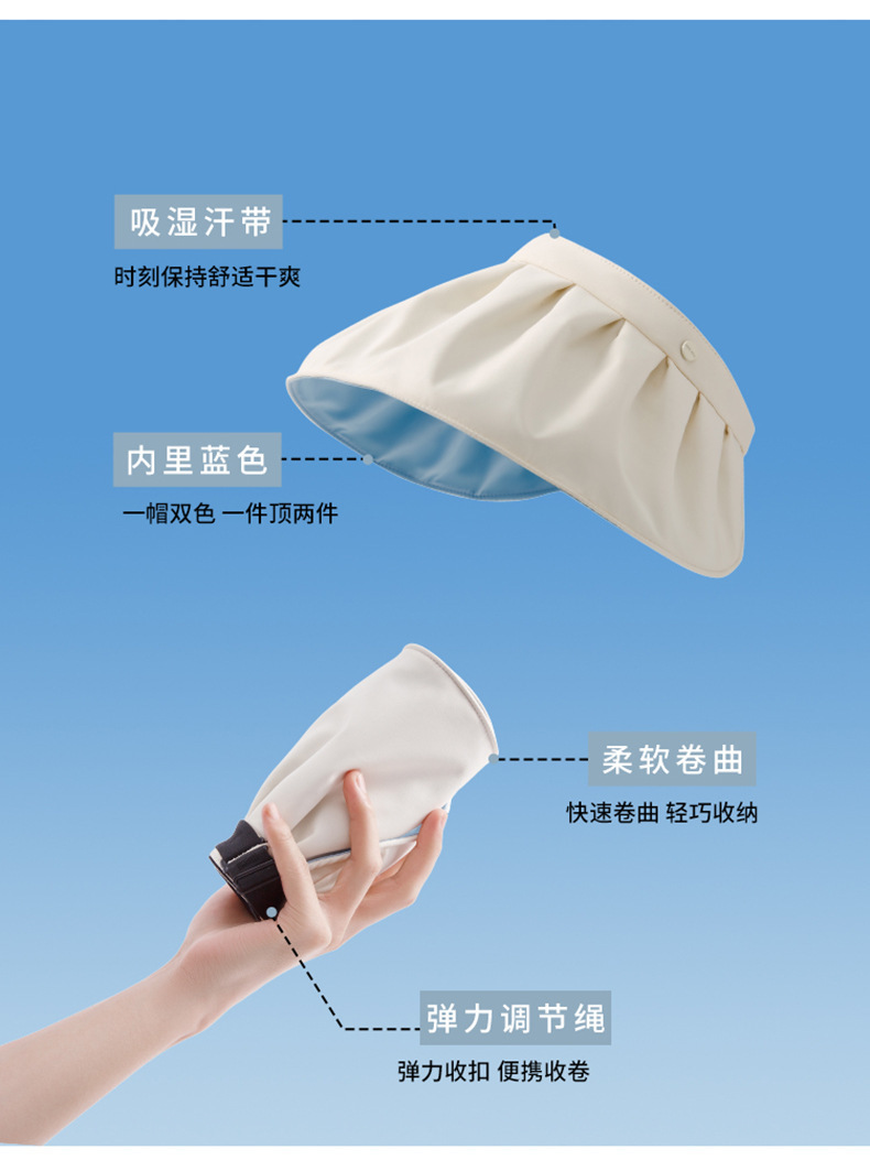 路悠悠防晒遮阳UV女款可卷边折叠贝壳帽C-042-蓝色