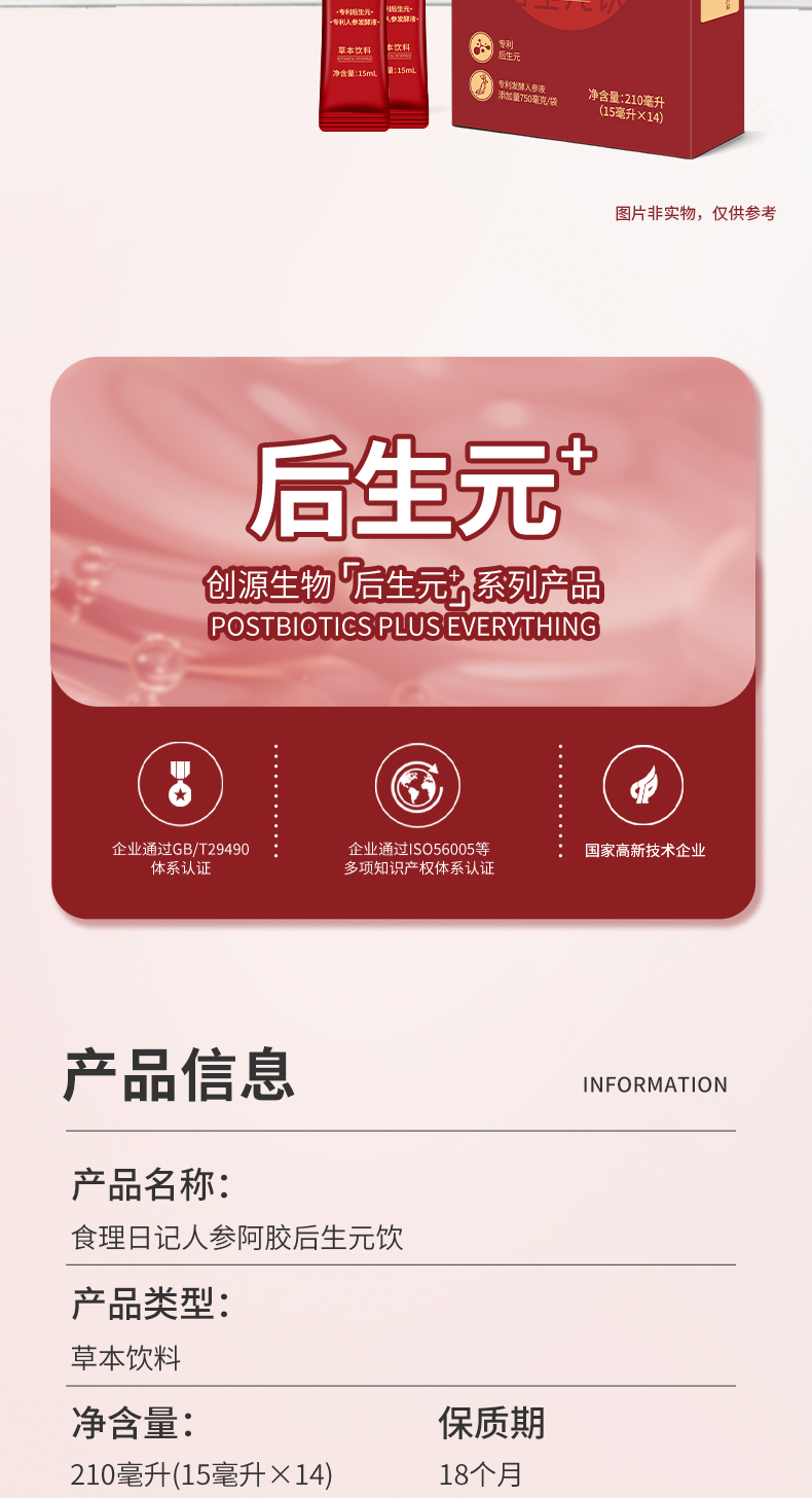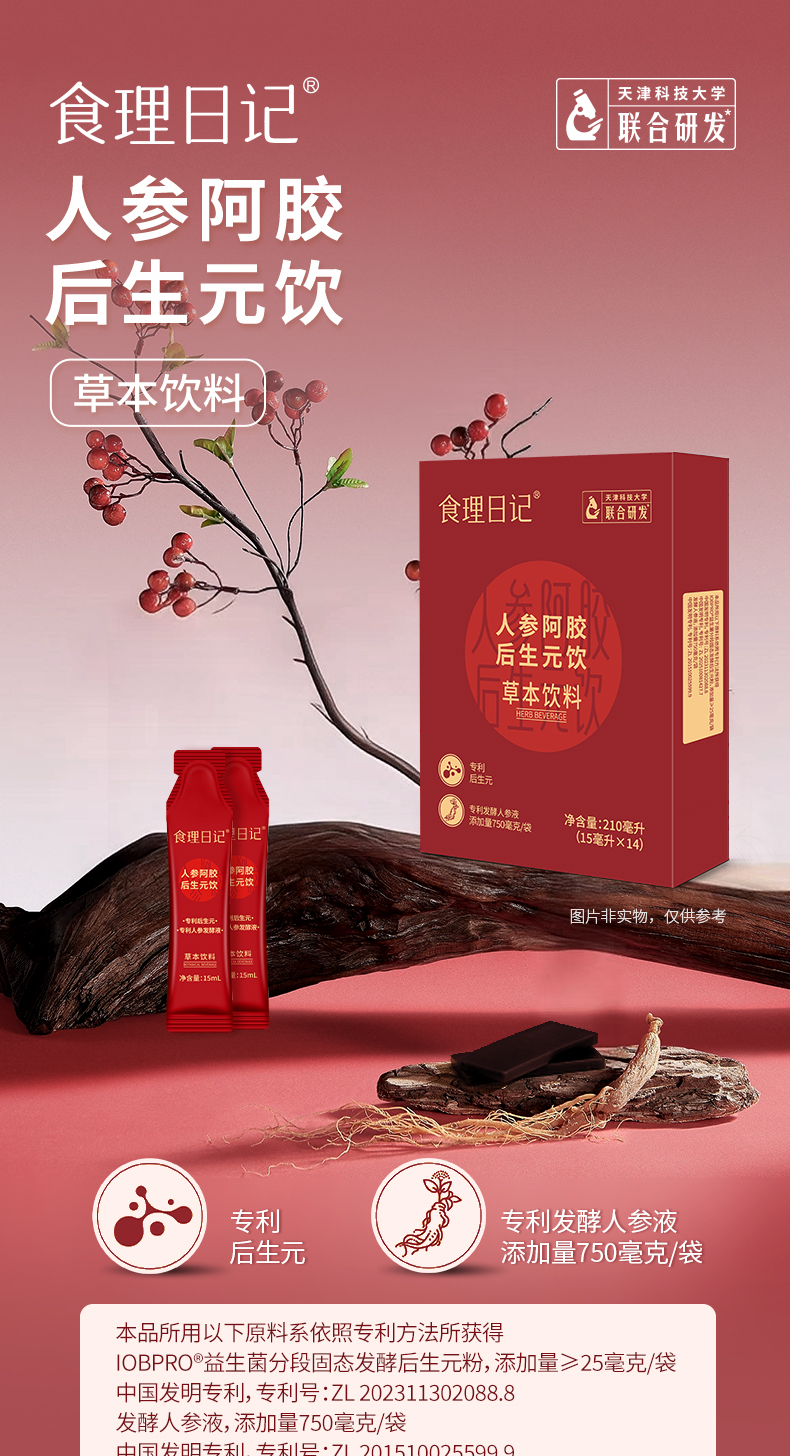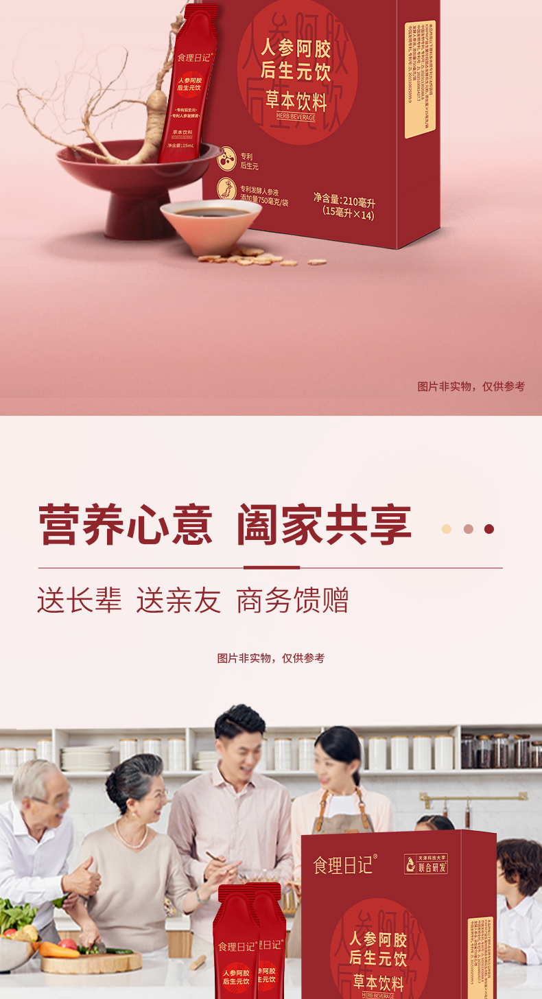 【微商城双12专属价】 食理日记人参阿胶后生元饮 210毫升(15毫升x14)