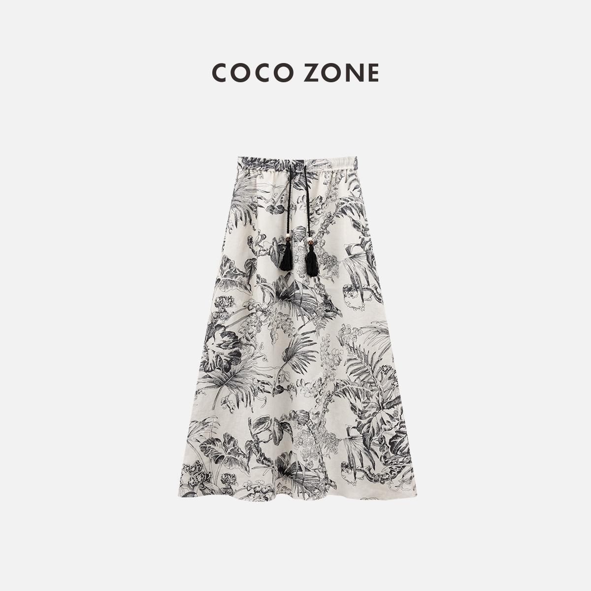 COCO ZONE"山水半裙“夏季新中式松紧腰抽绳半身裙宽松显瘦A字中长裙CC1B1105