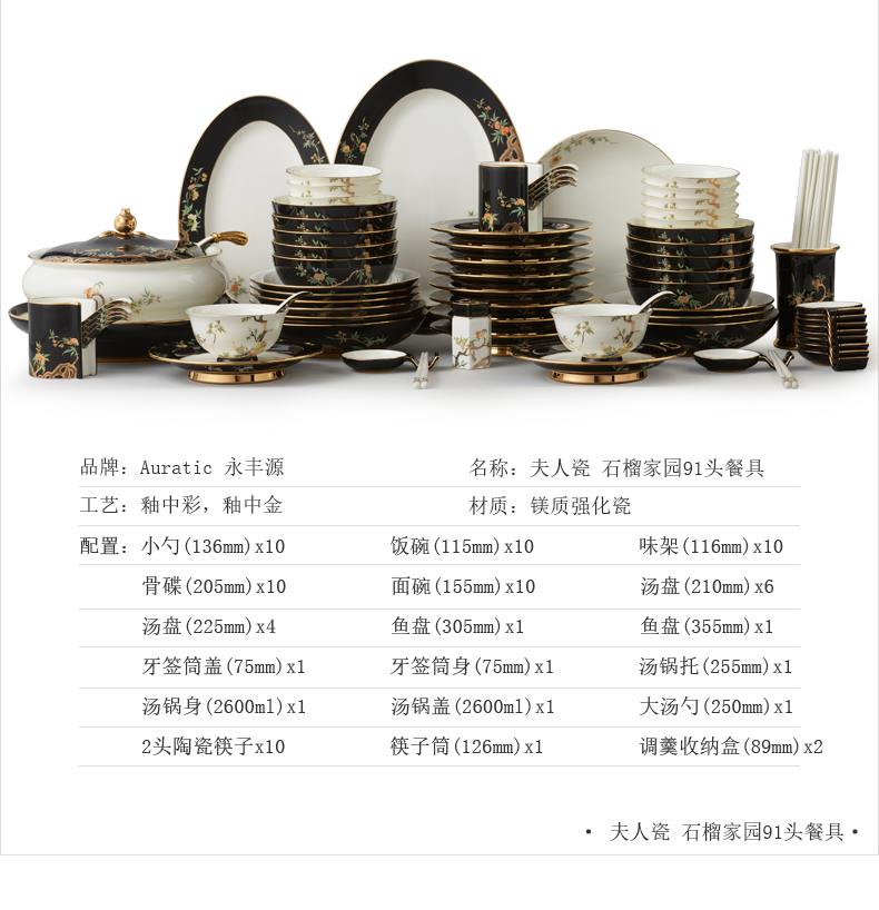 永丰源 石榴家园44头91头餐具套装 轻奢碗碟餐具家用 送礼佳品